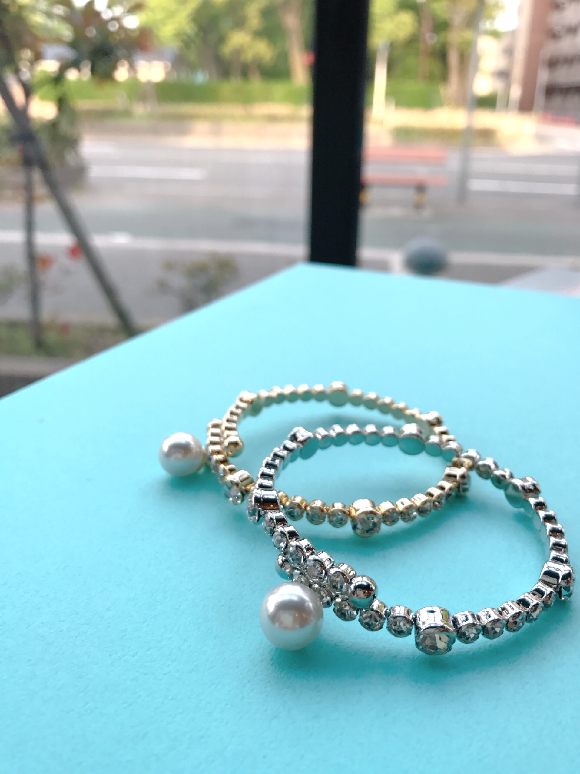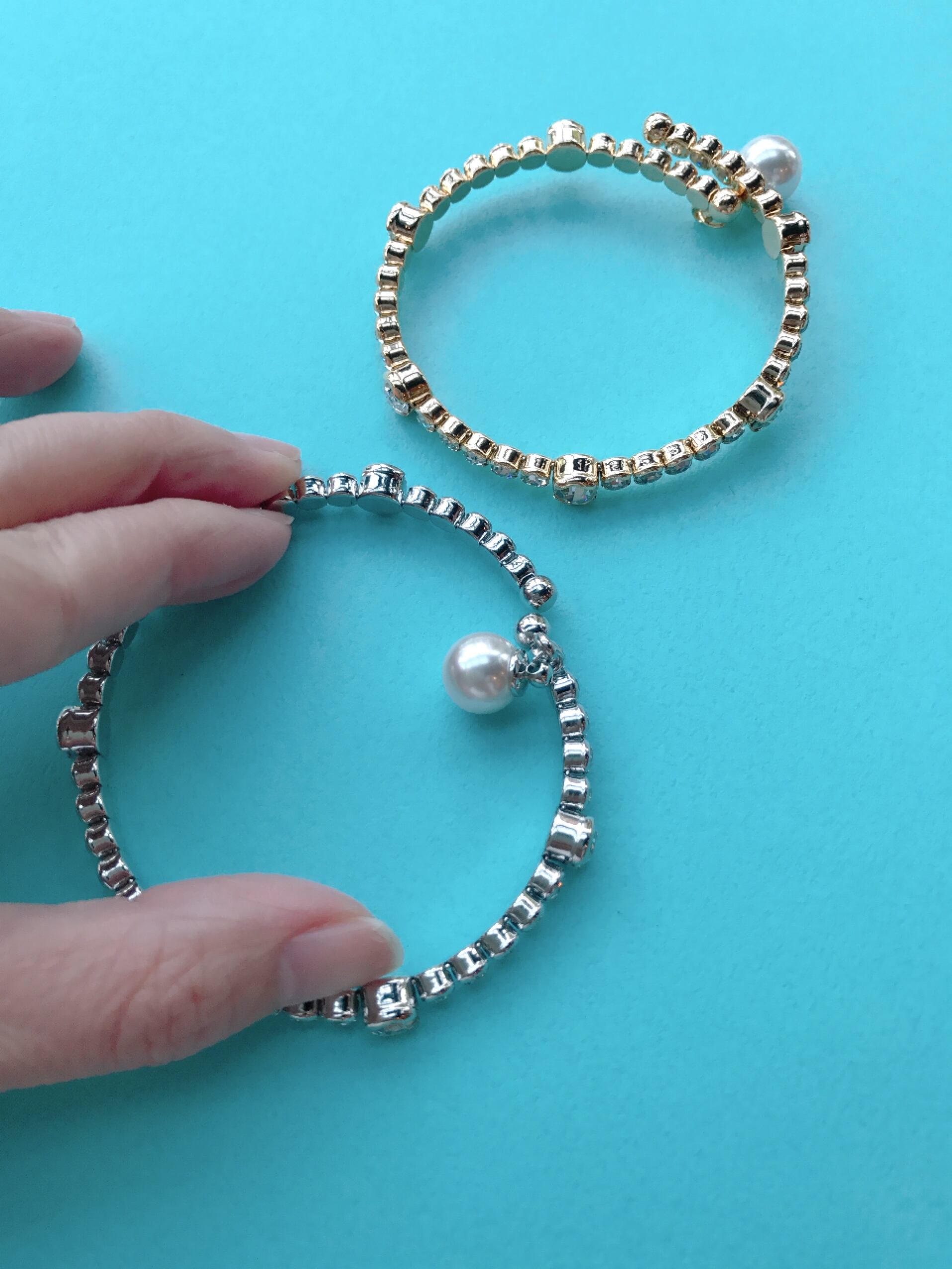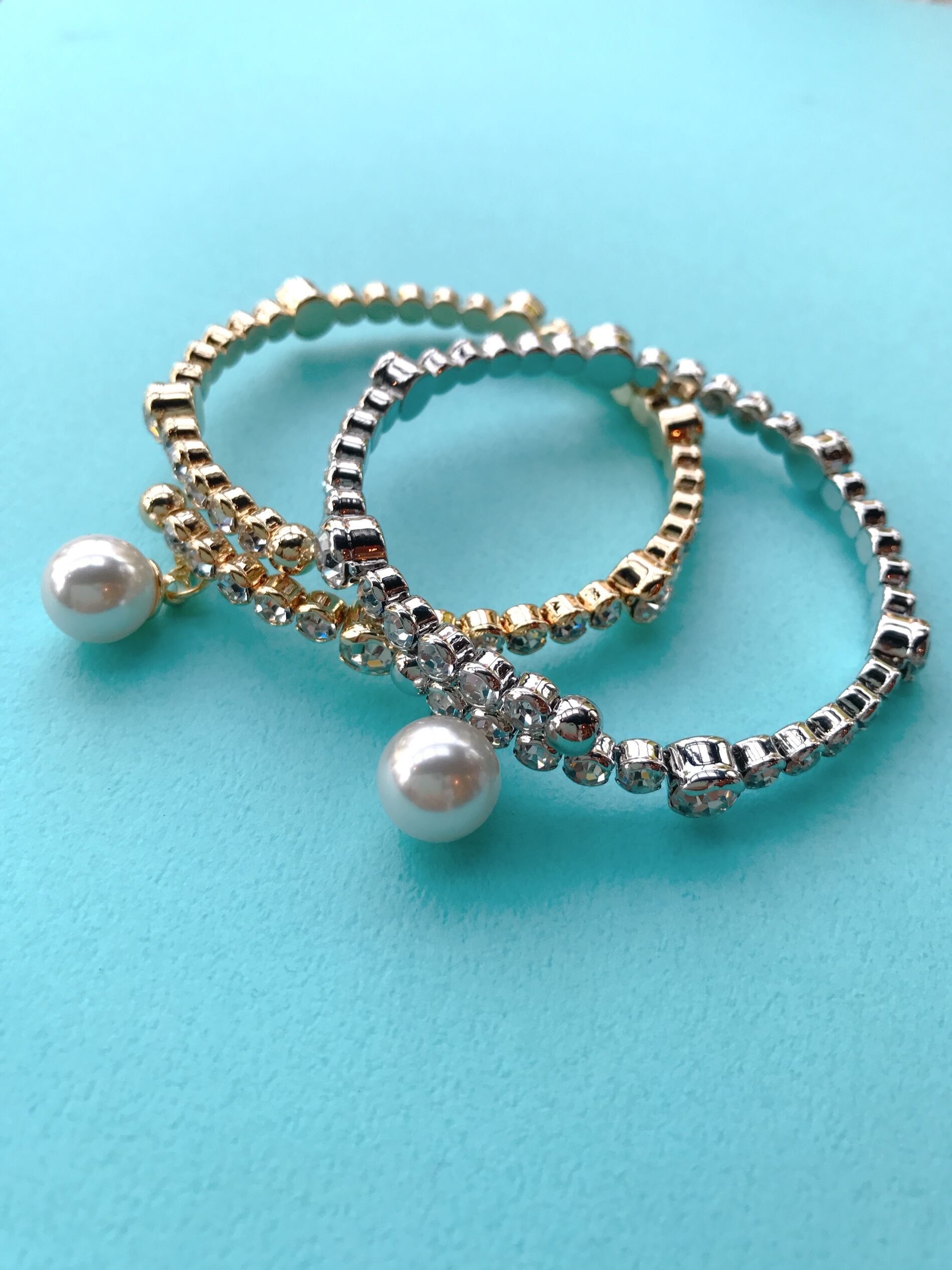揺れるパール付きラインストーンブレスレット