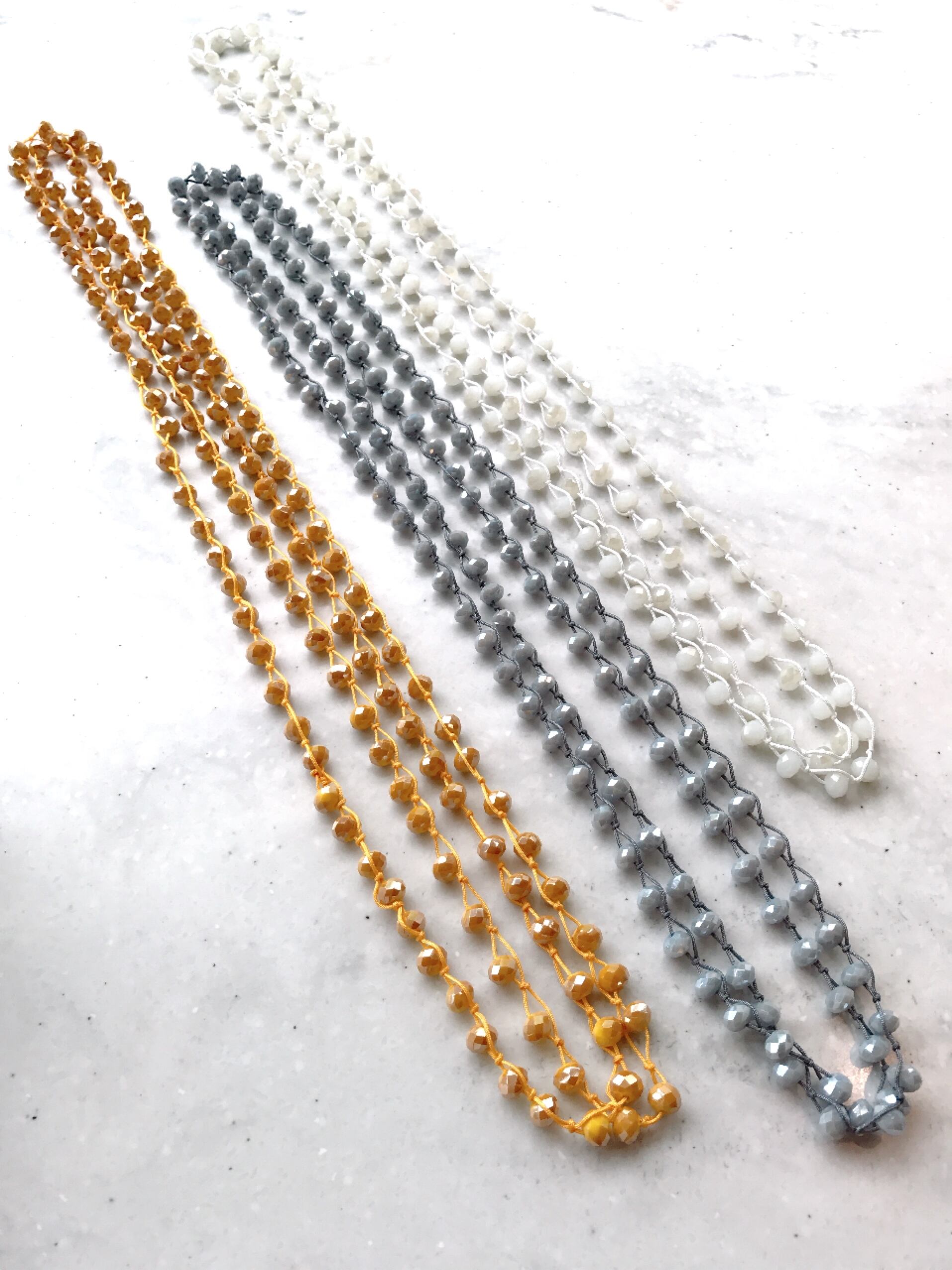 多角カットされたビーズが綺麗なロングネックレス