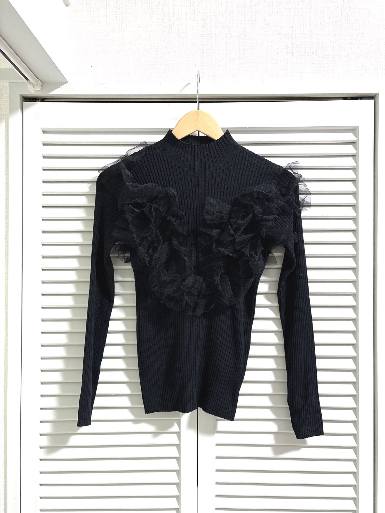 チュール付きリブトップス
