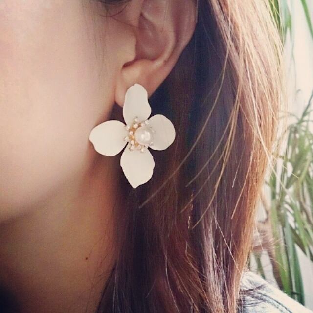 今年流行のお花ピアス。