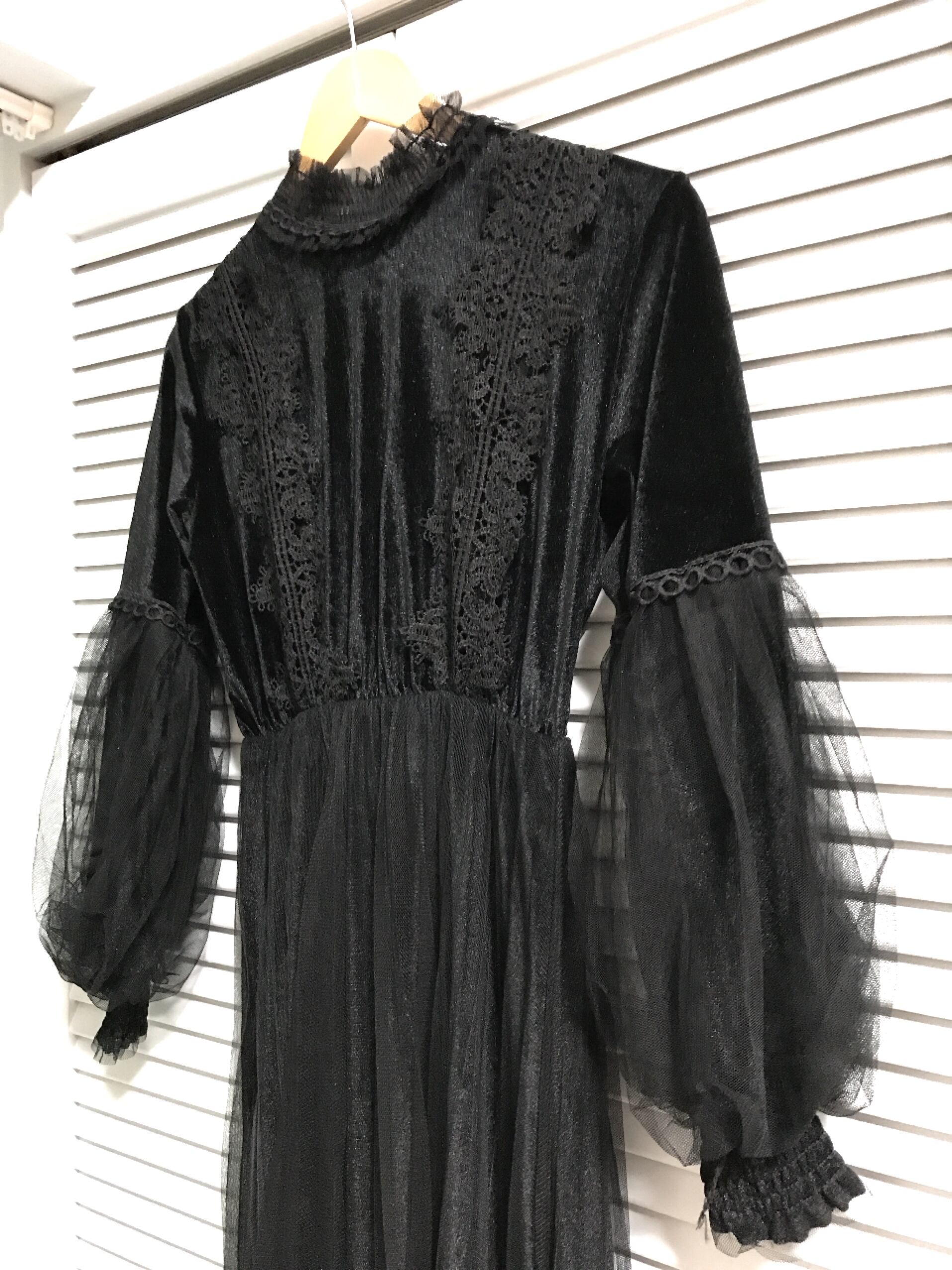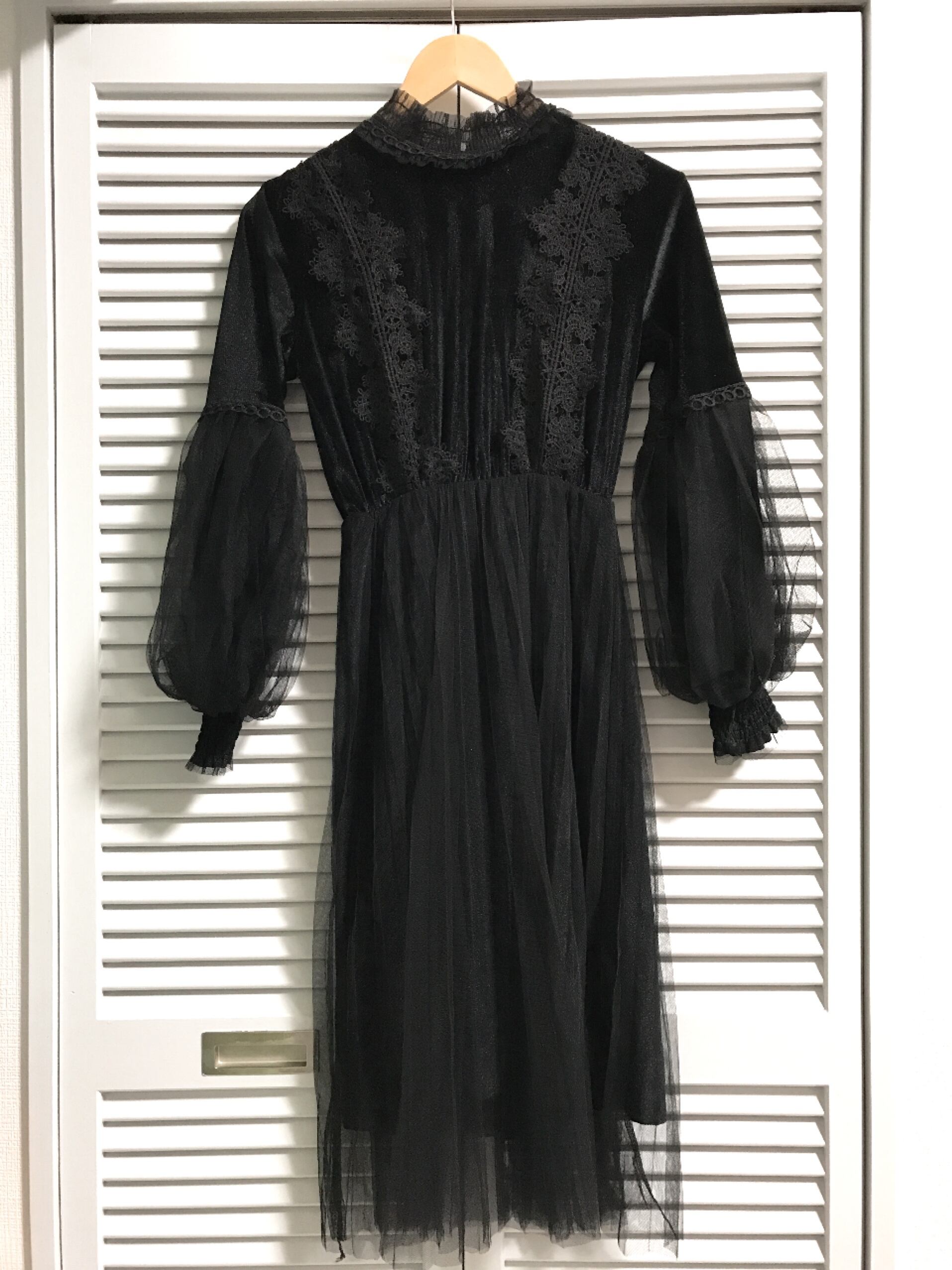 レースとチュールがオシャレなベロア素材のワンピース♡