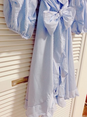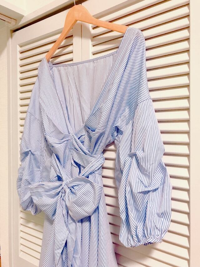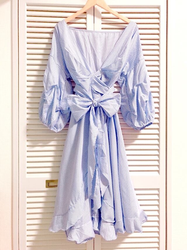 ストライプのリボンラップワンピース