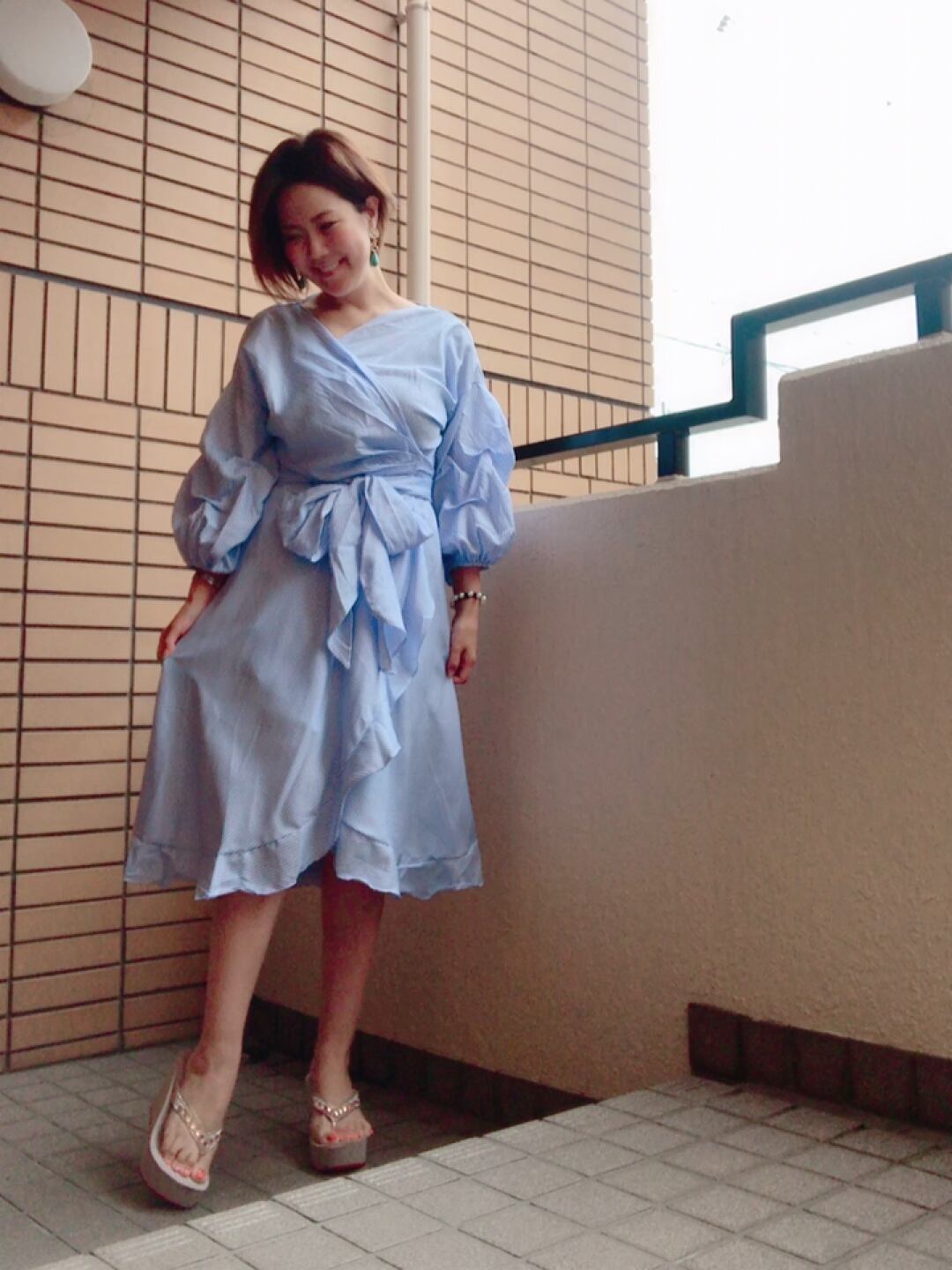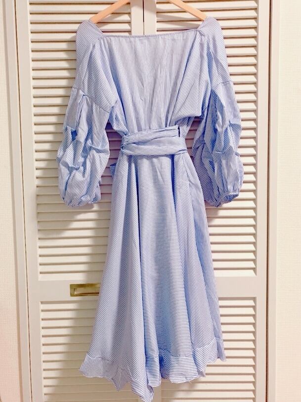 ギャザー袖が可愛いストライプのラップワンピース♡