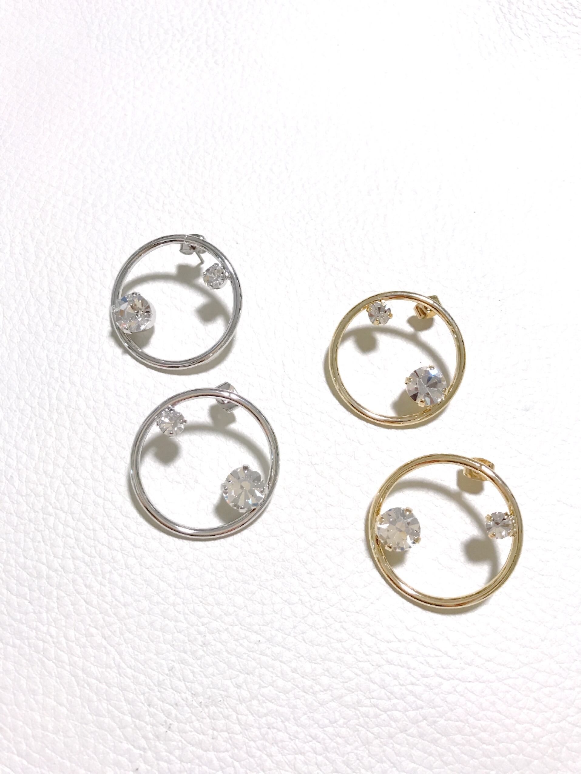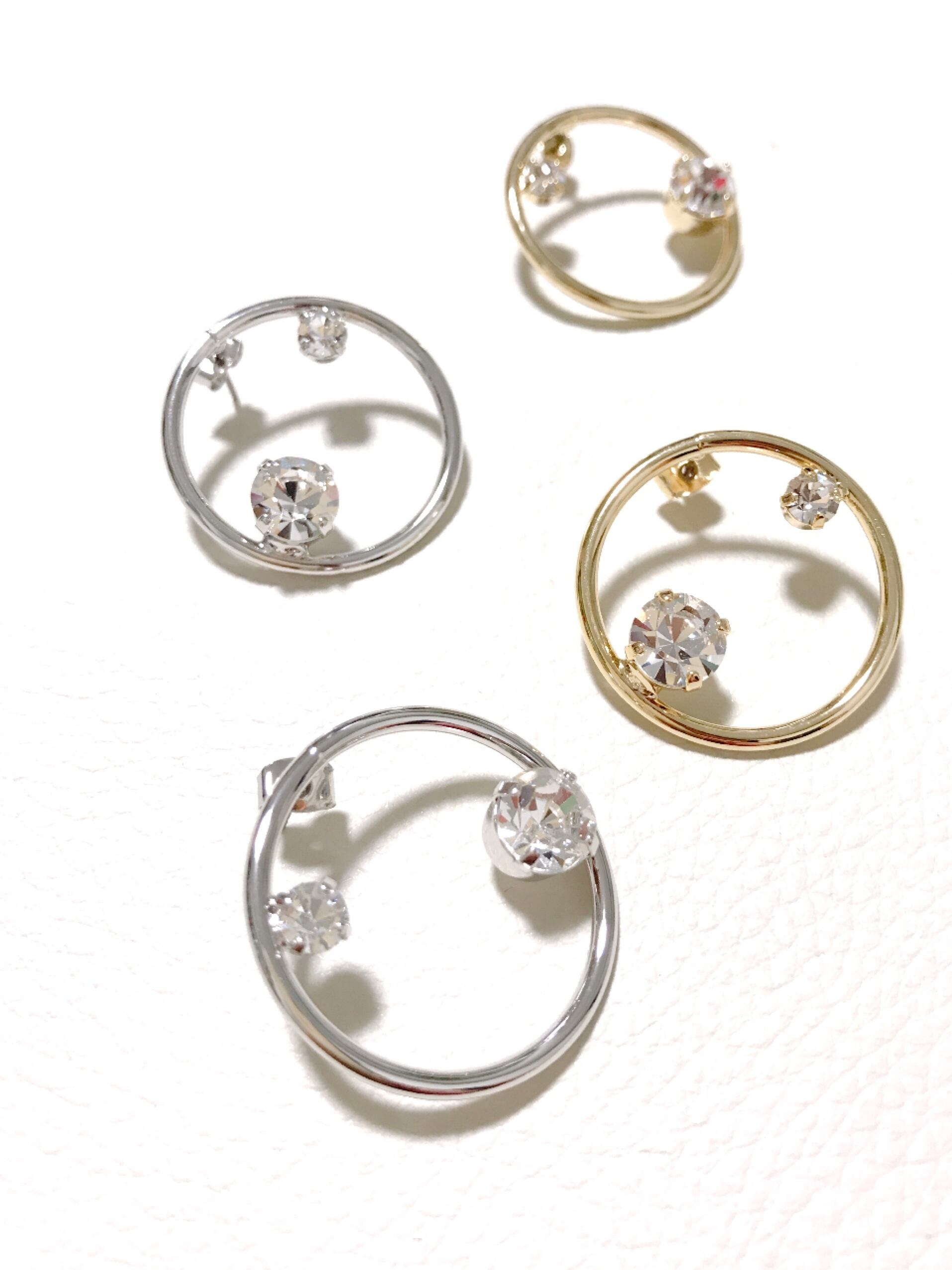 サークル型に大小のストーンが乗ったオシャレなピアス♡