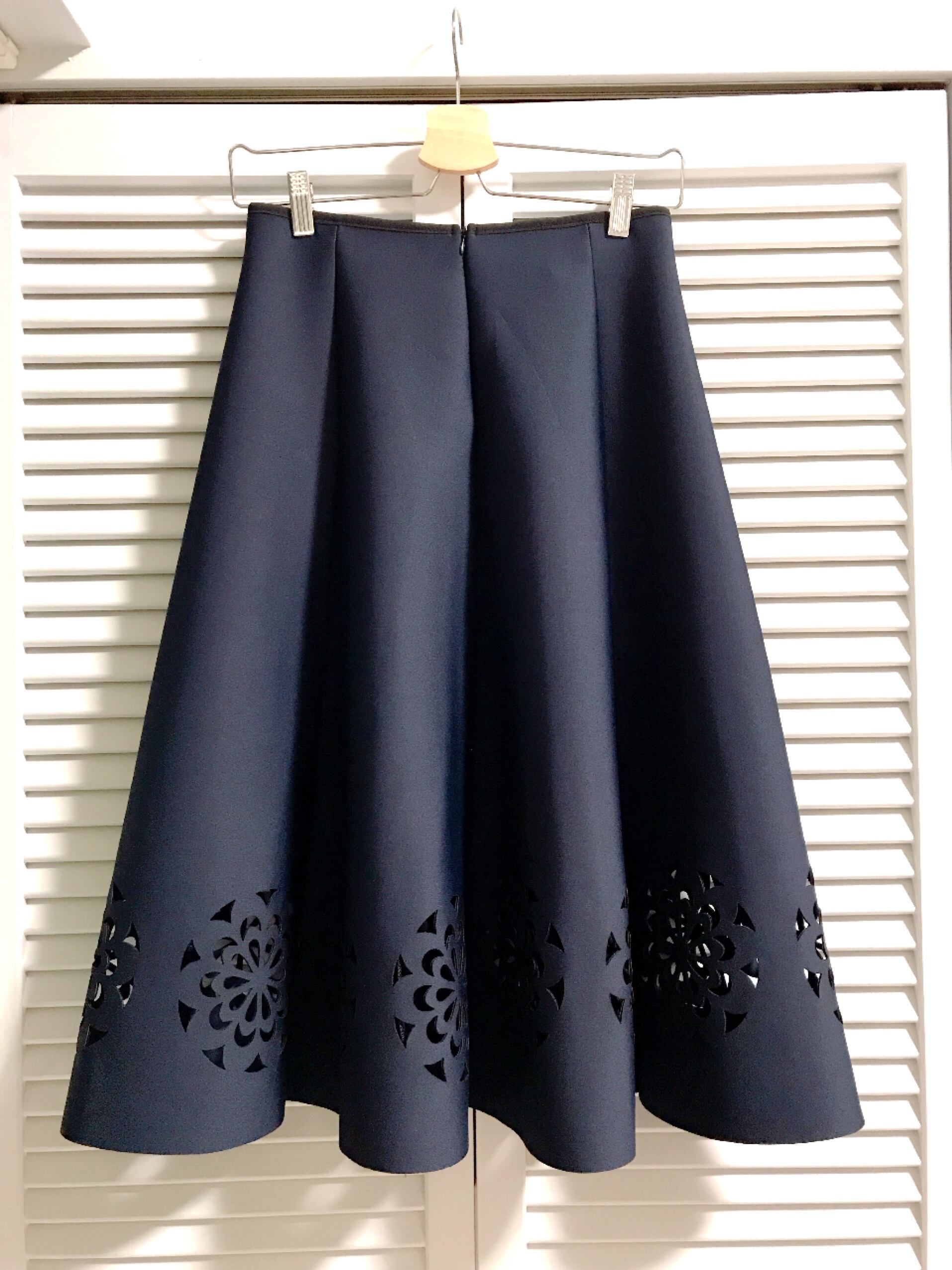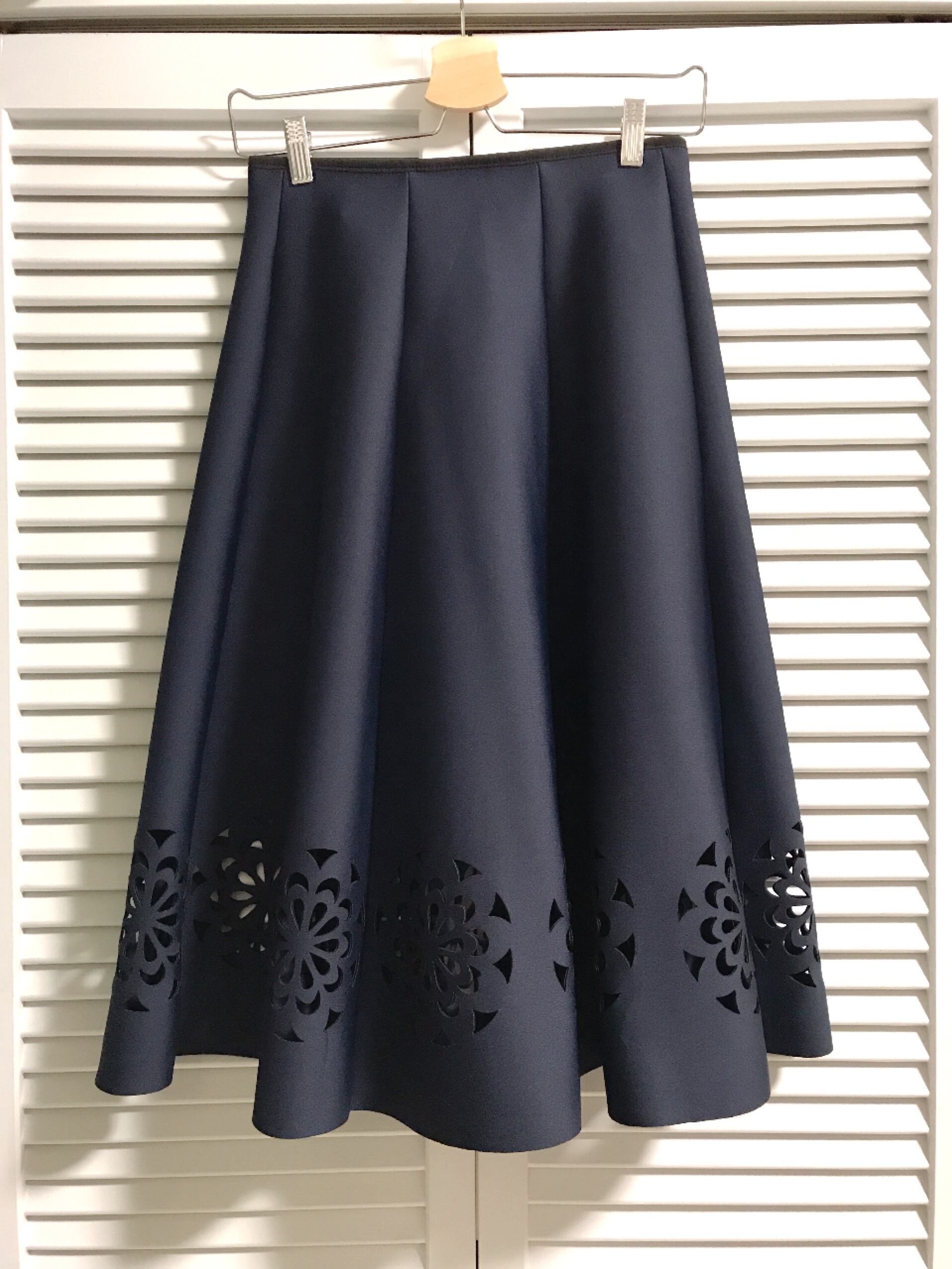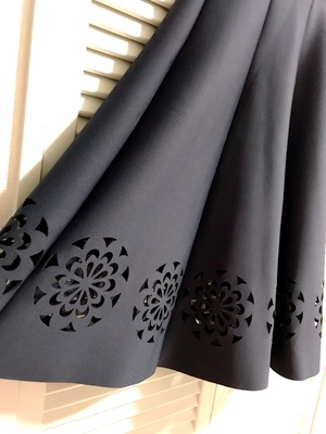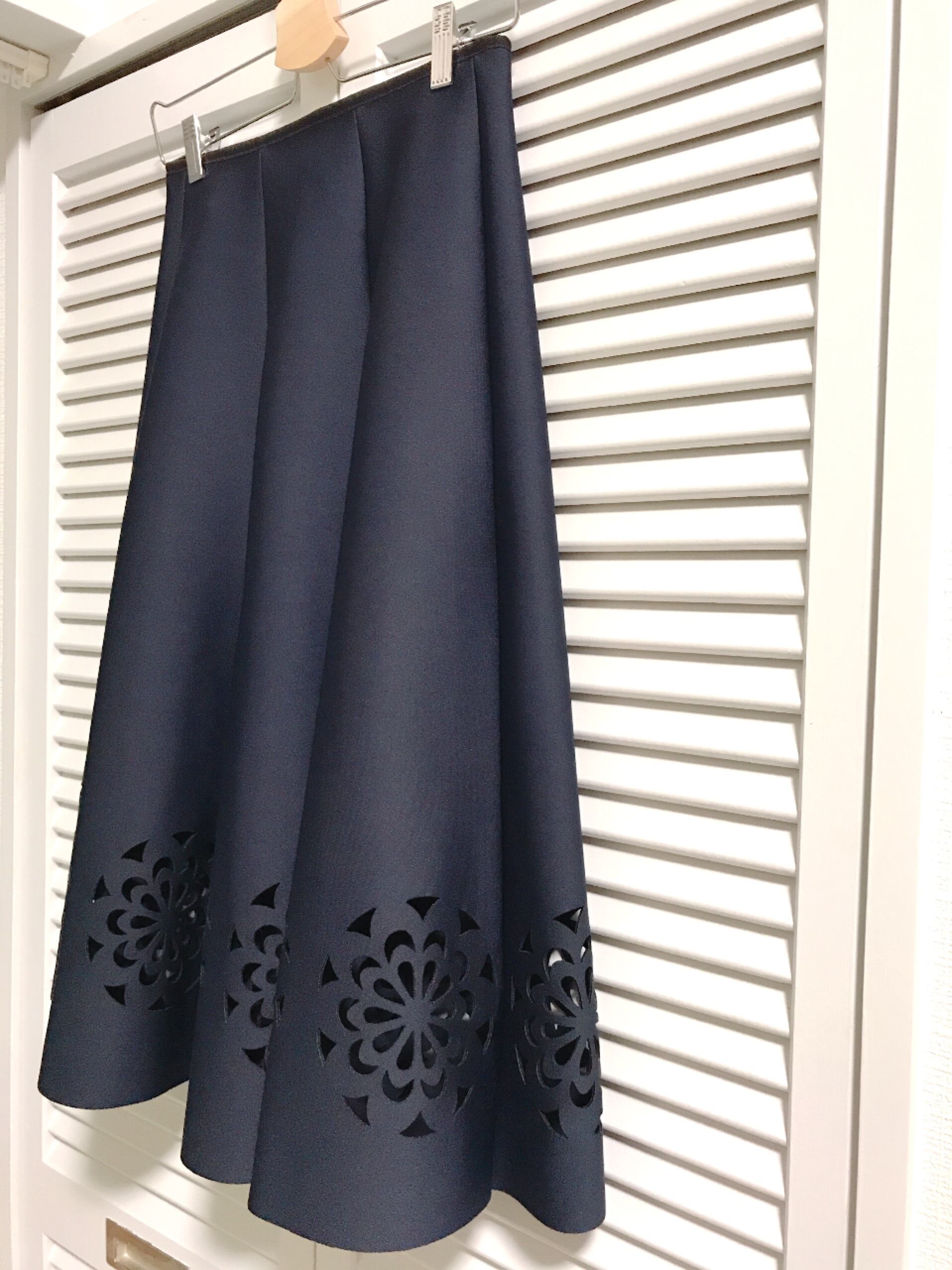再入荷★花柄透かしのボンディングスカート ネイビー