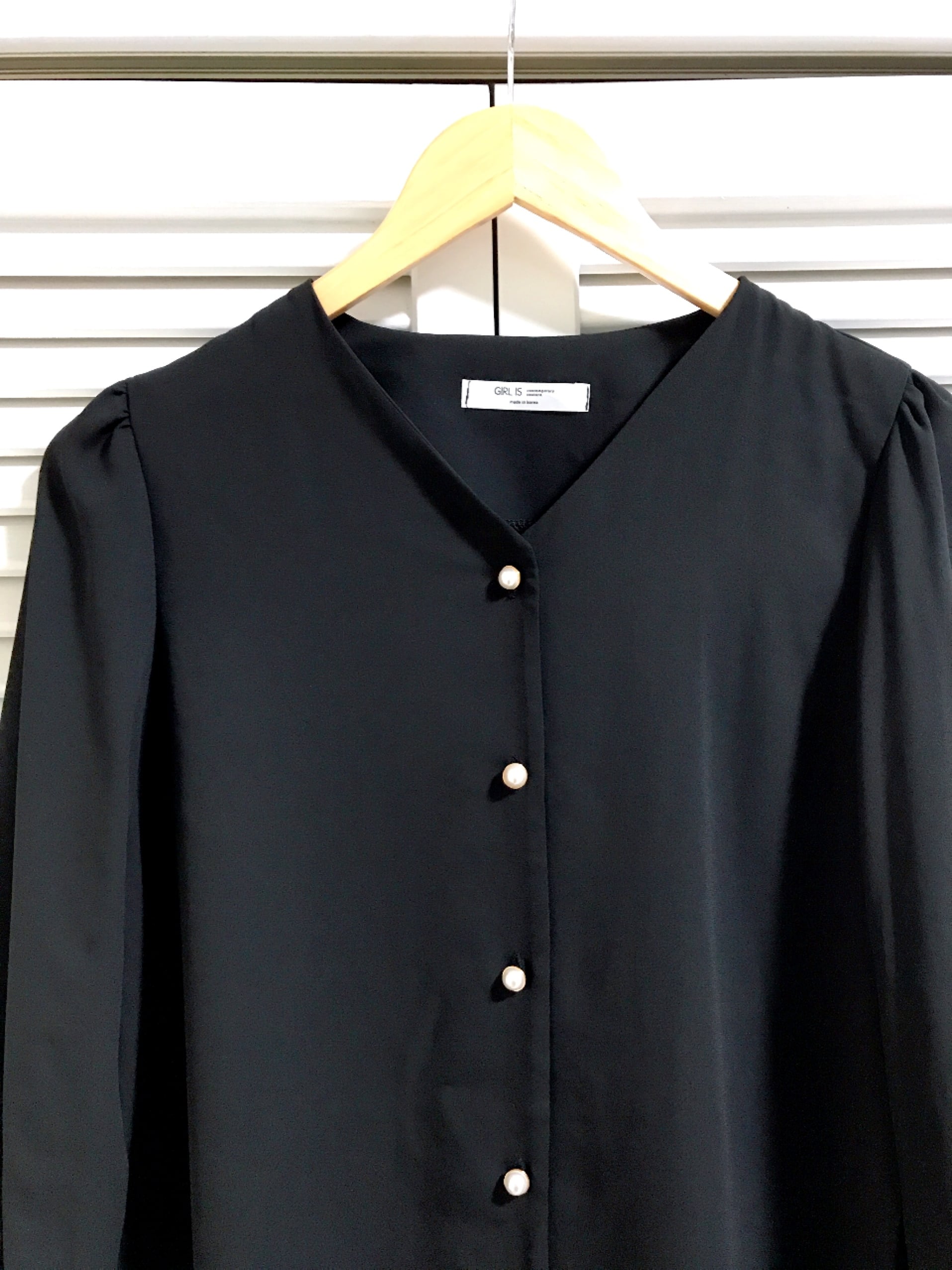 とろみ素材の優しい印象と、バールのボタンがお洒落なVネックトップス♡