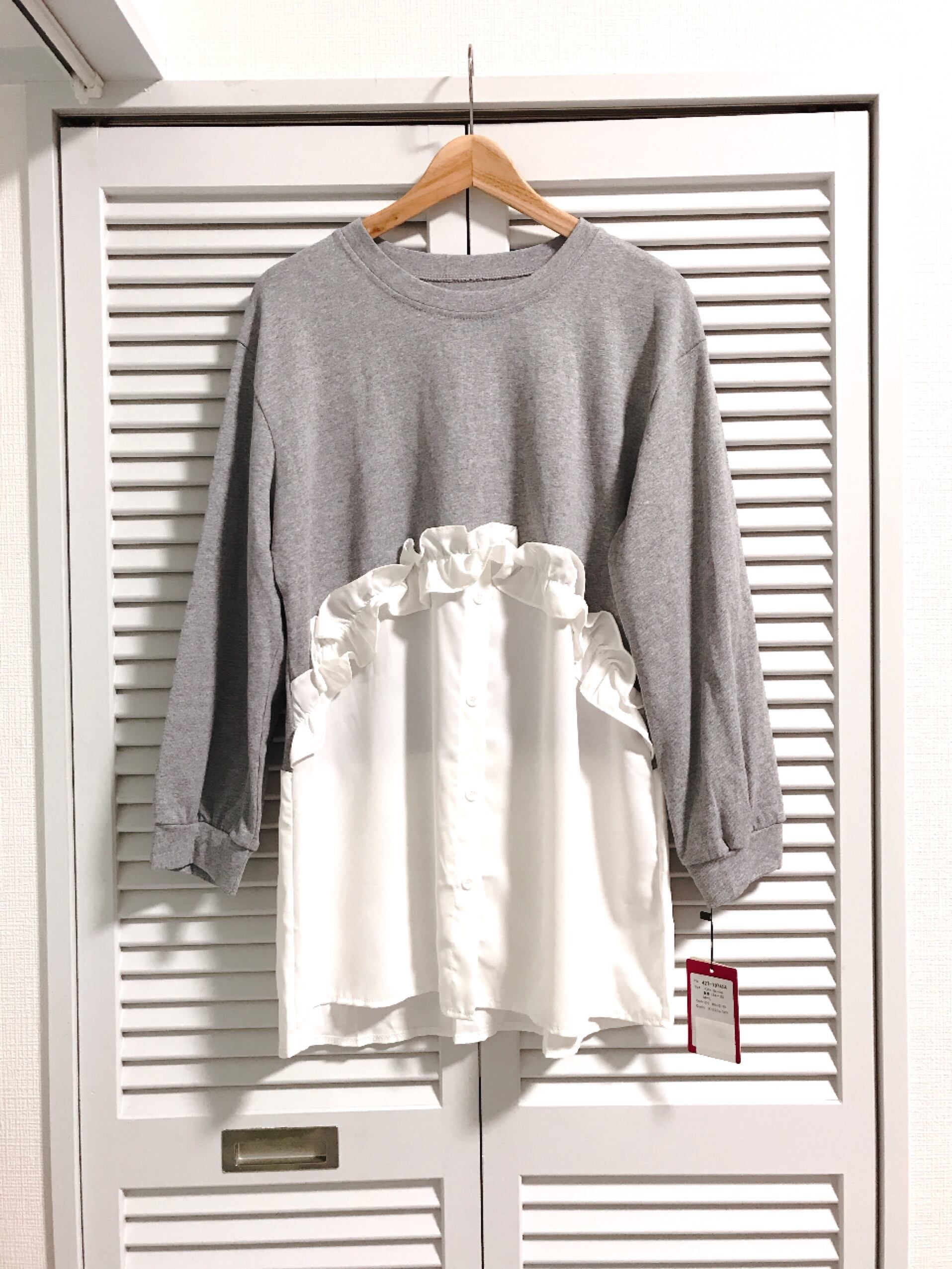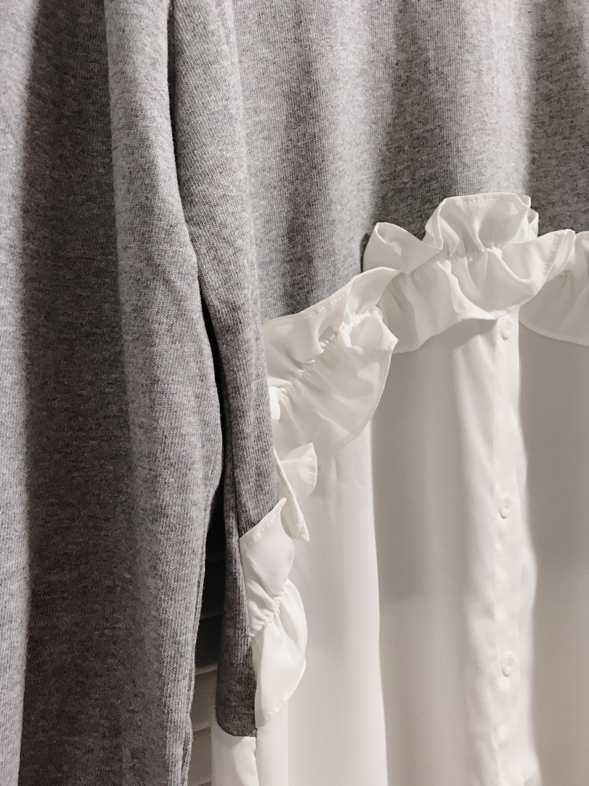 フリル切り替えのドッキングトップス グレー
