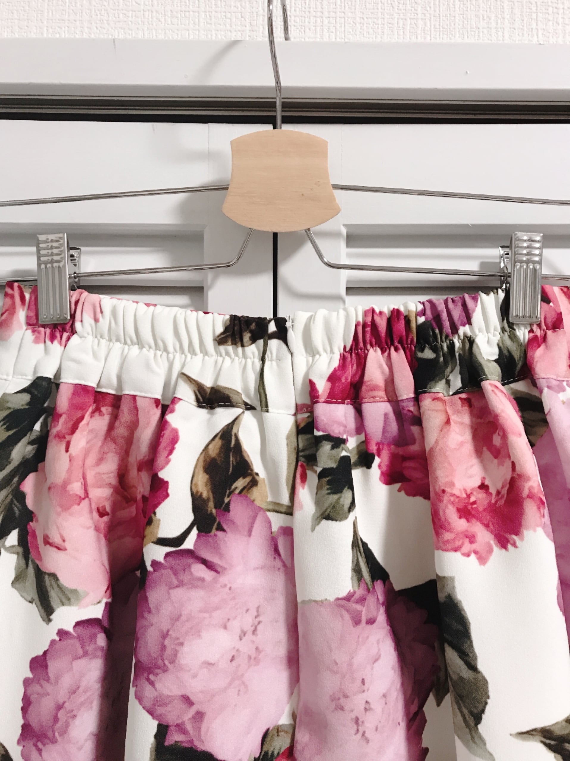 ホワイト地に大きなお花柄が上品なフレアスカート♡