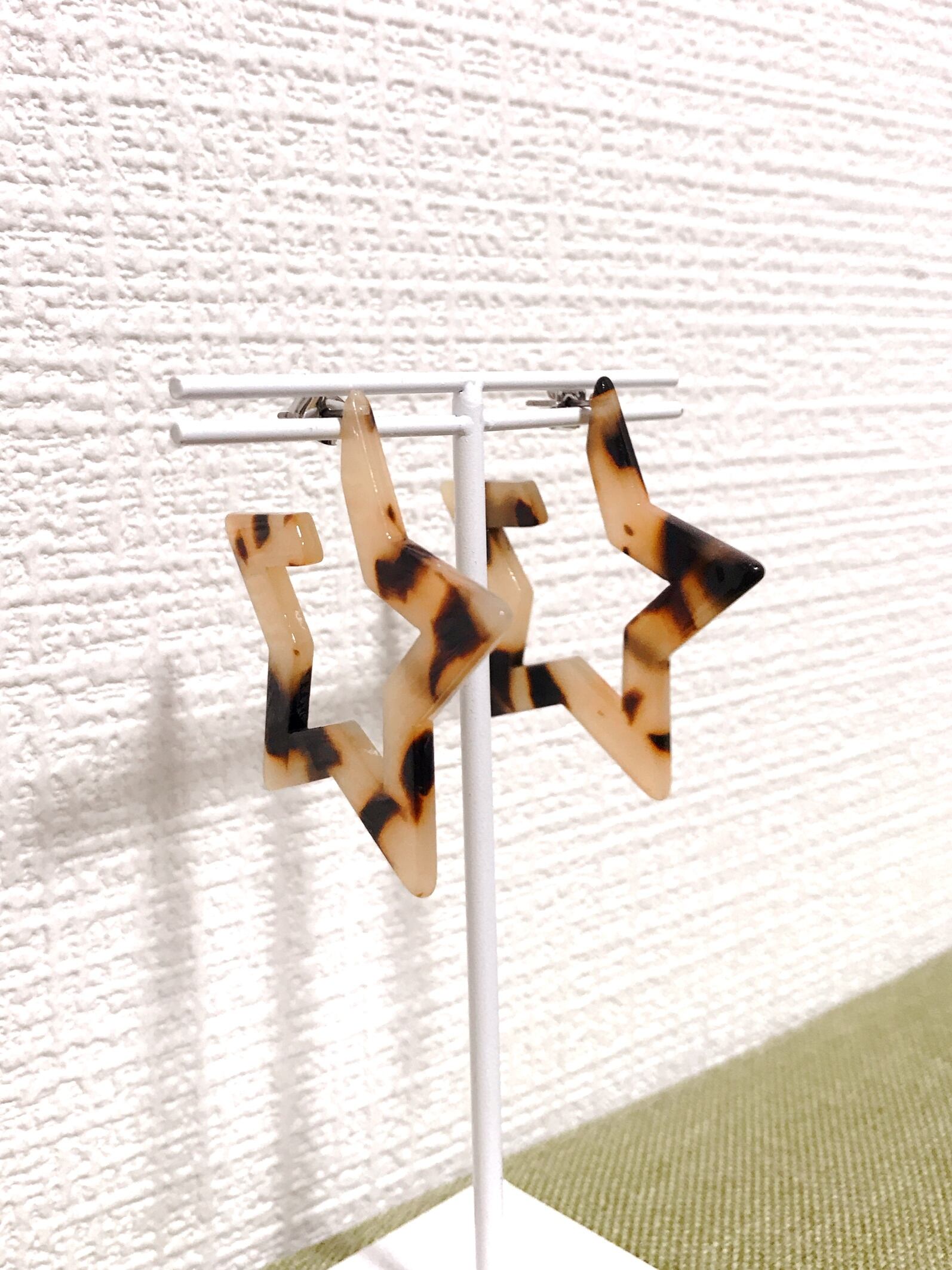 べっ甲風素材のスターモチーフピアス