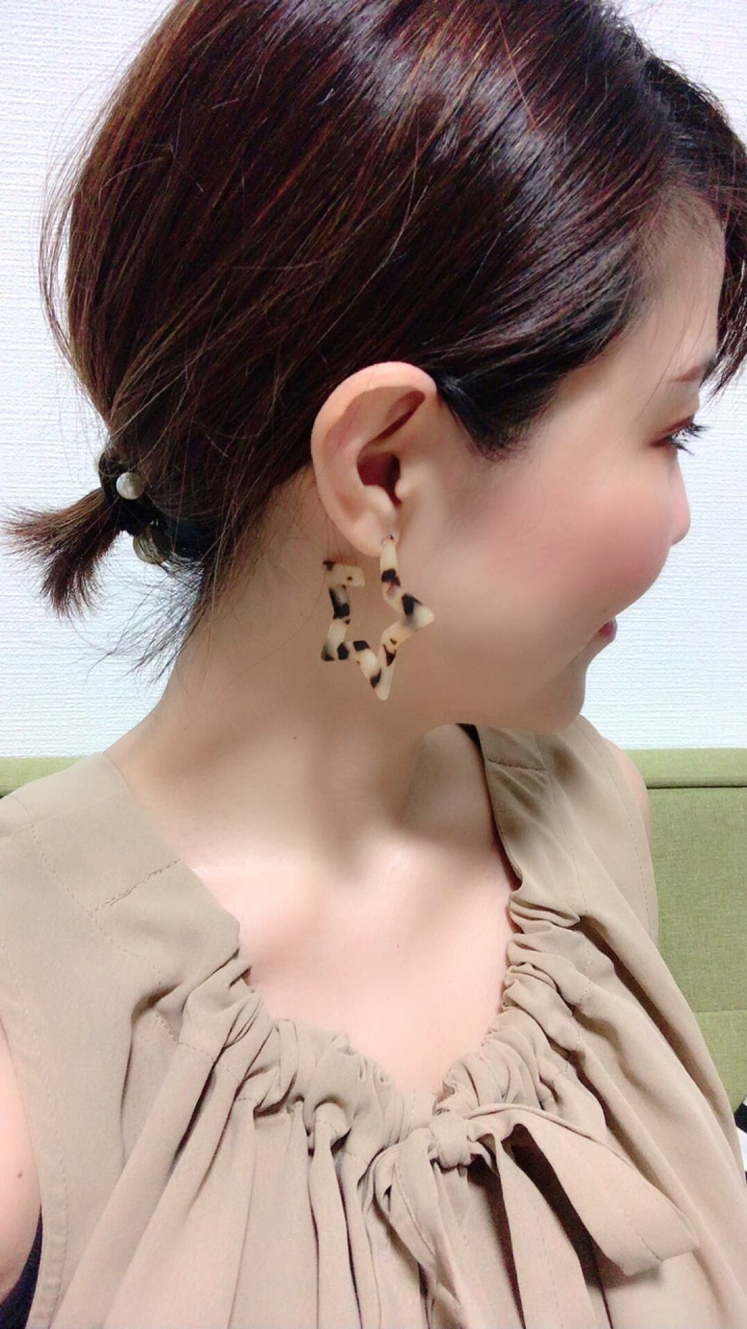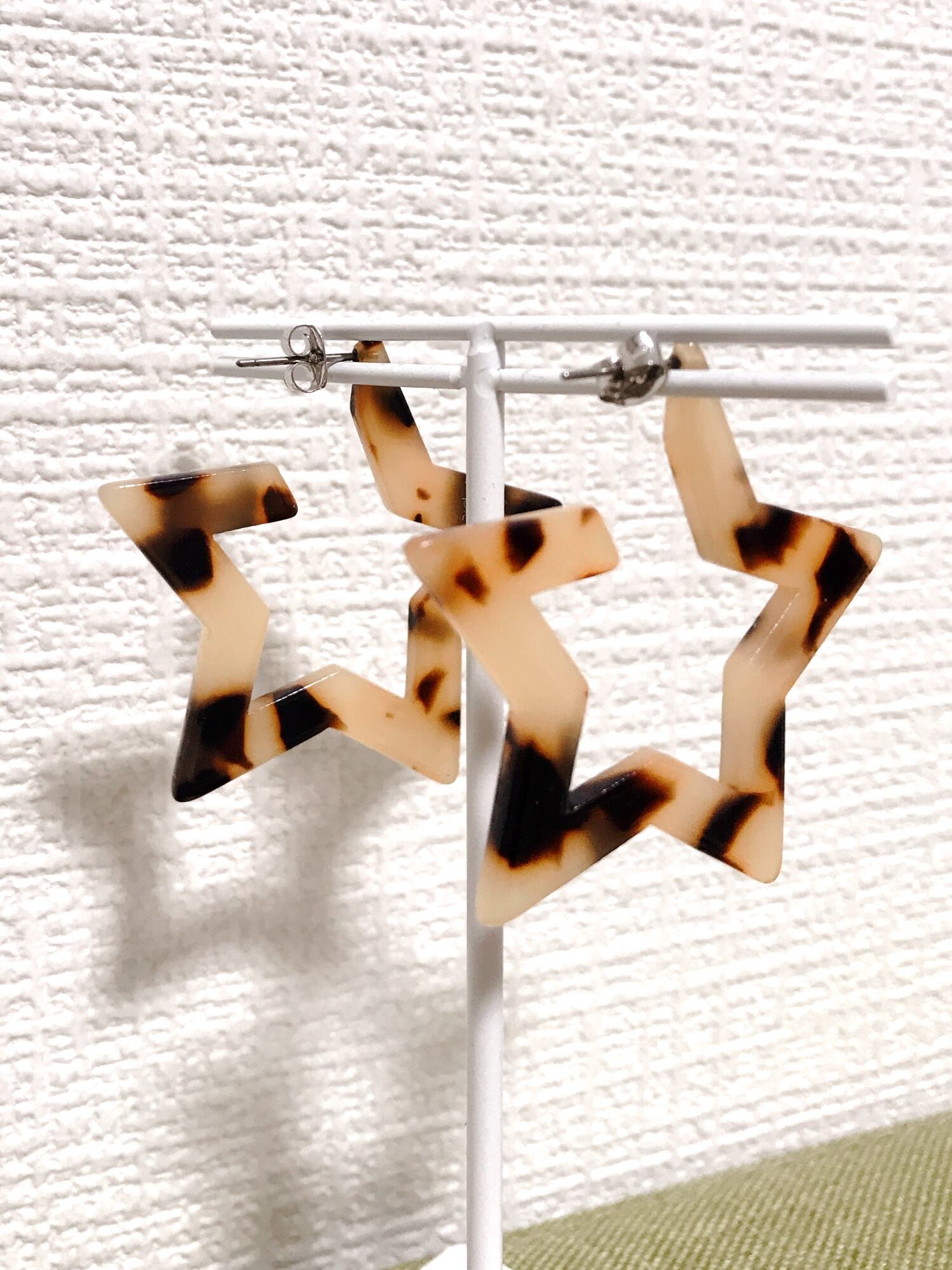べっ甲風素材の星型ピアス♡