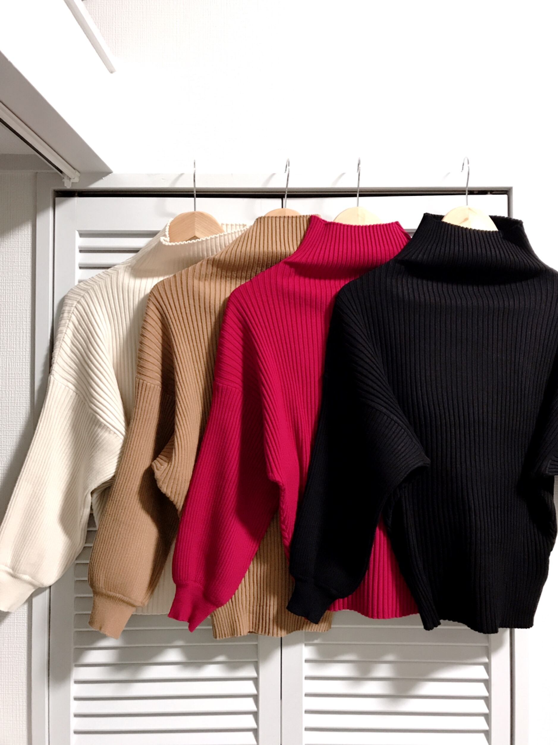 触り心地の良いマシュマロタッチのリブハイネックニット♡