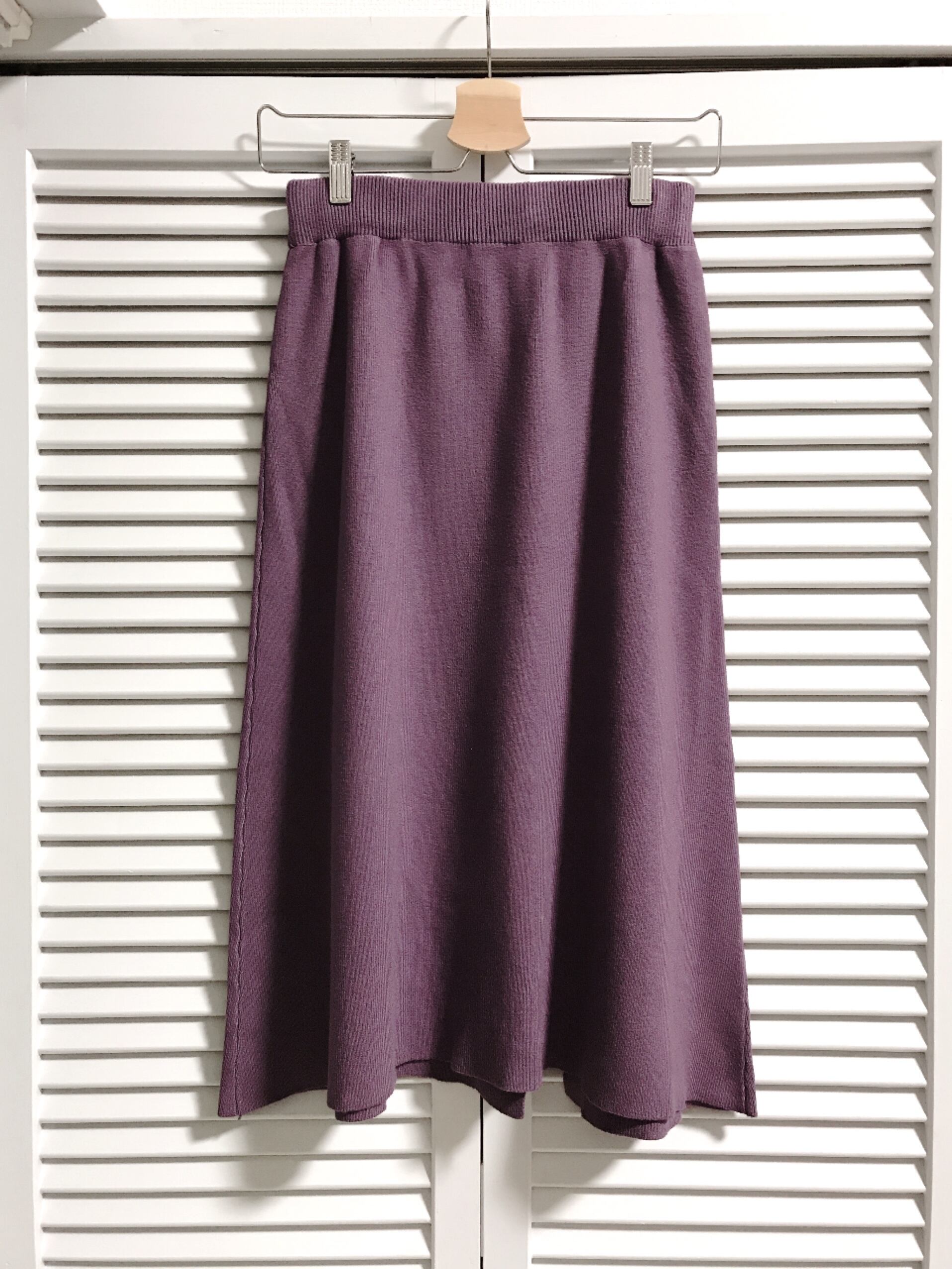 アシンメトリーフリルのAラインニットスカート