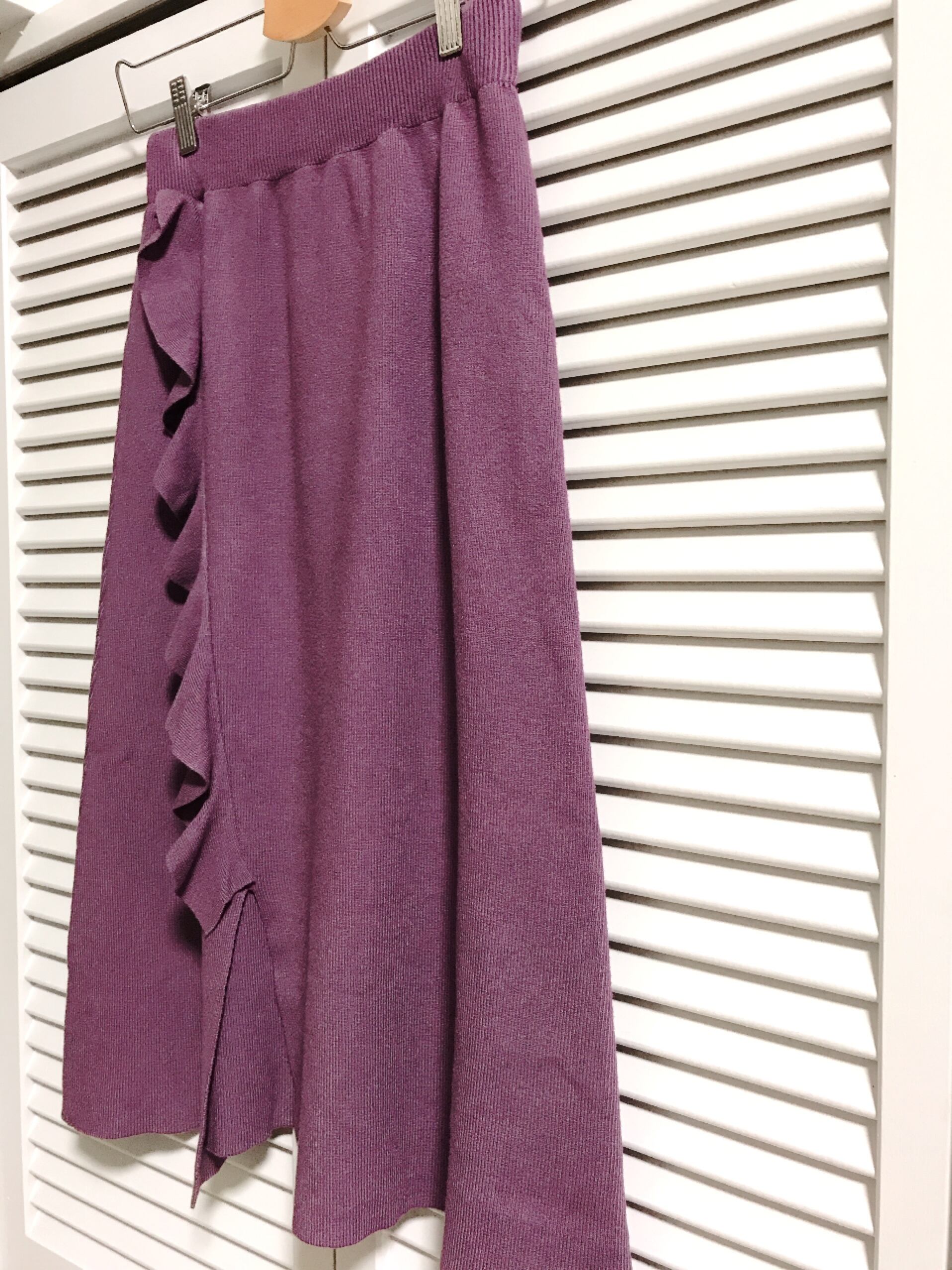 片側にフリルのついたAラインニットスカート