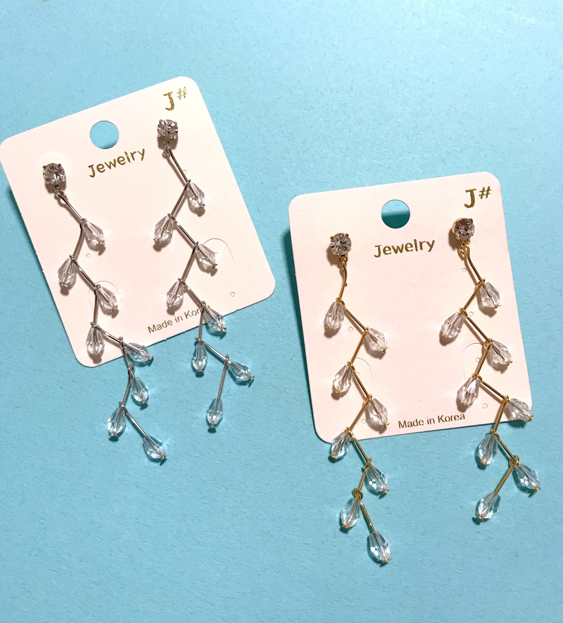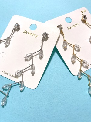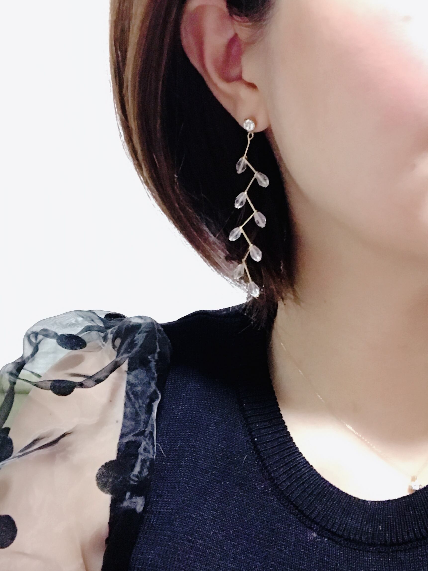 ワイヤーとビーズがバランスよく並んだピアス♡