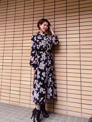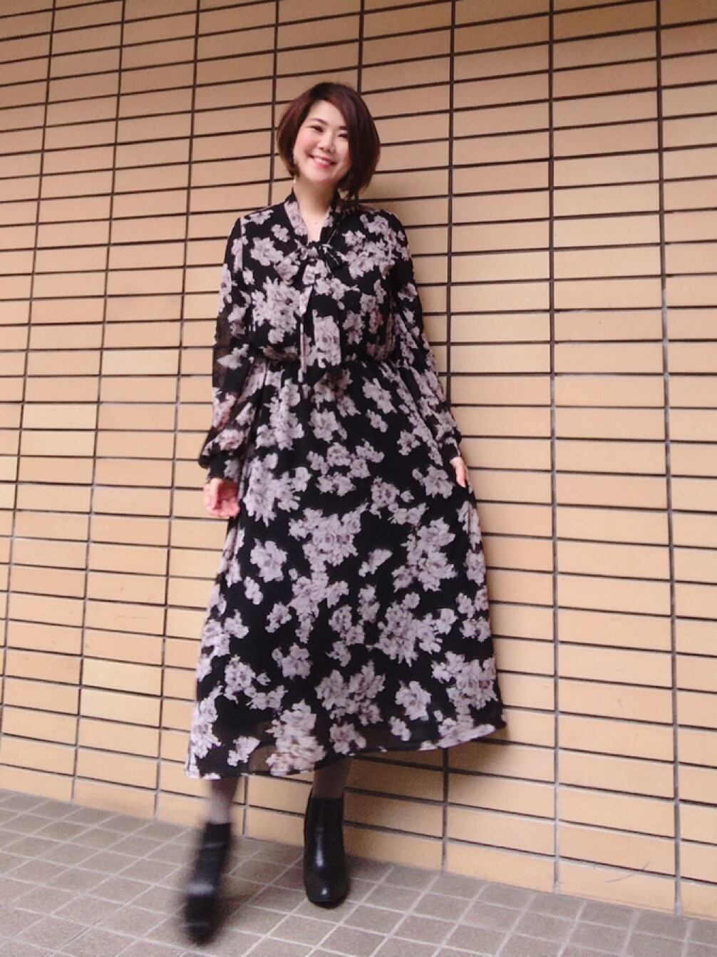 落ち着いた花柄が上品な長め丈のワンピース♡
