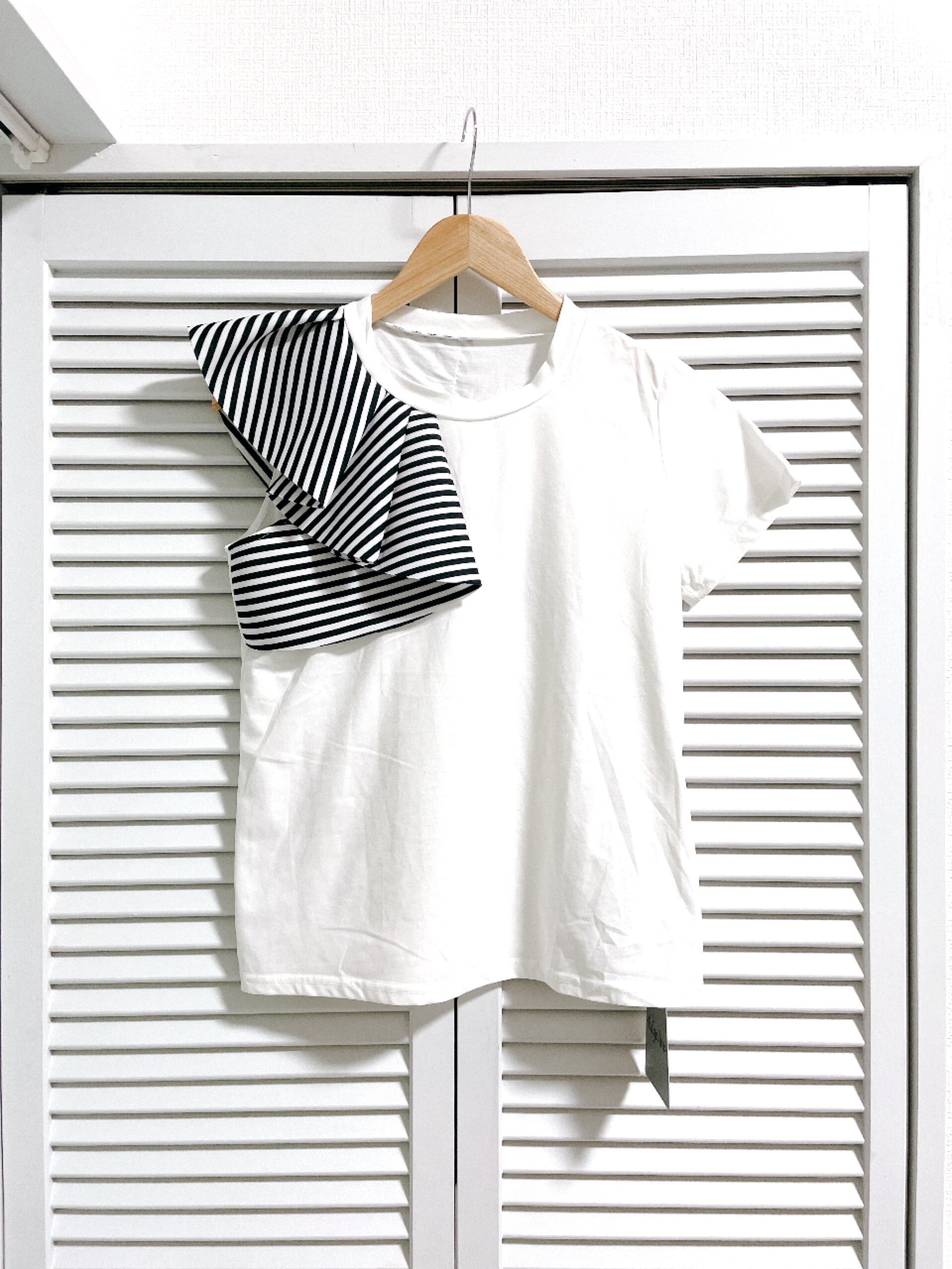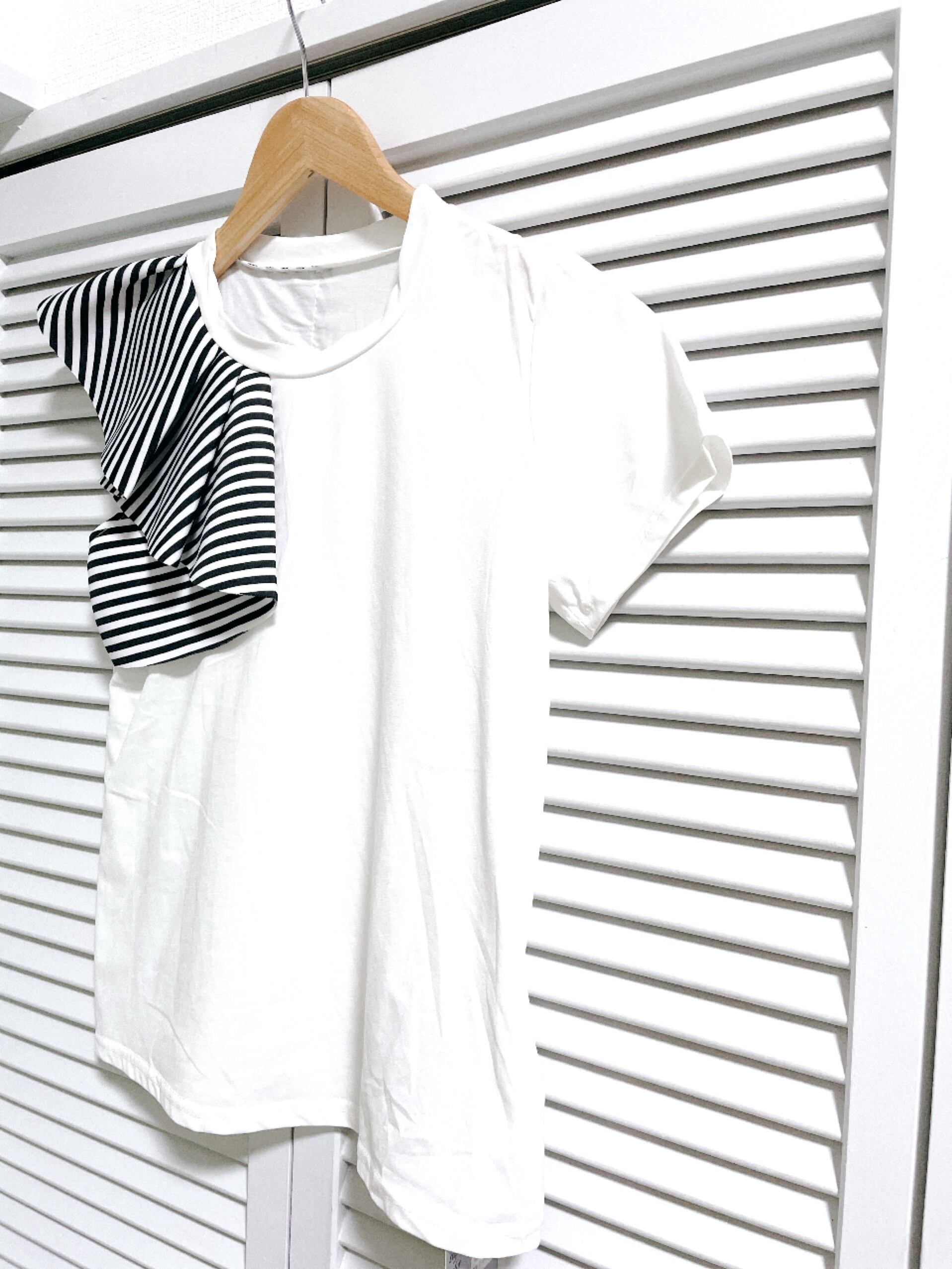 ボーダーフリルのアシンメトリートップス