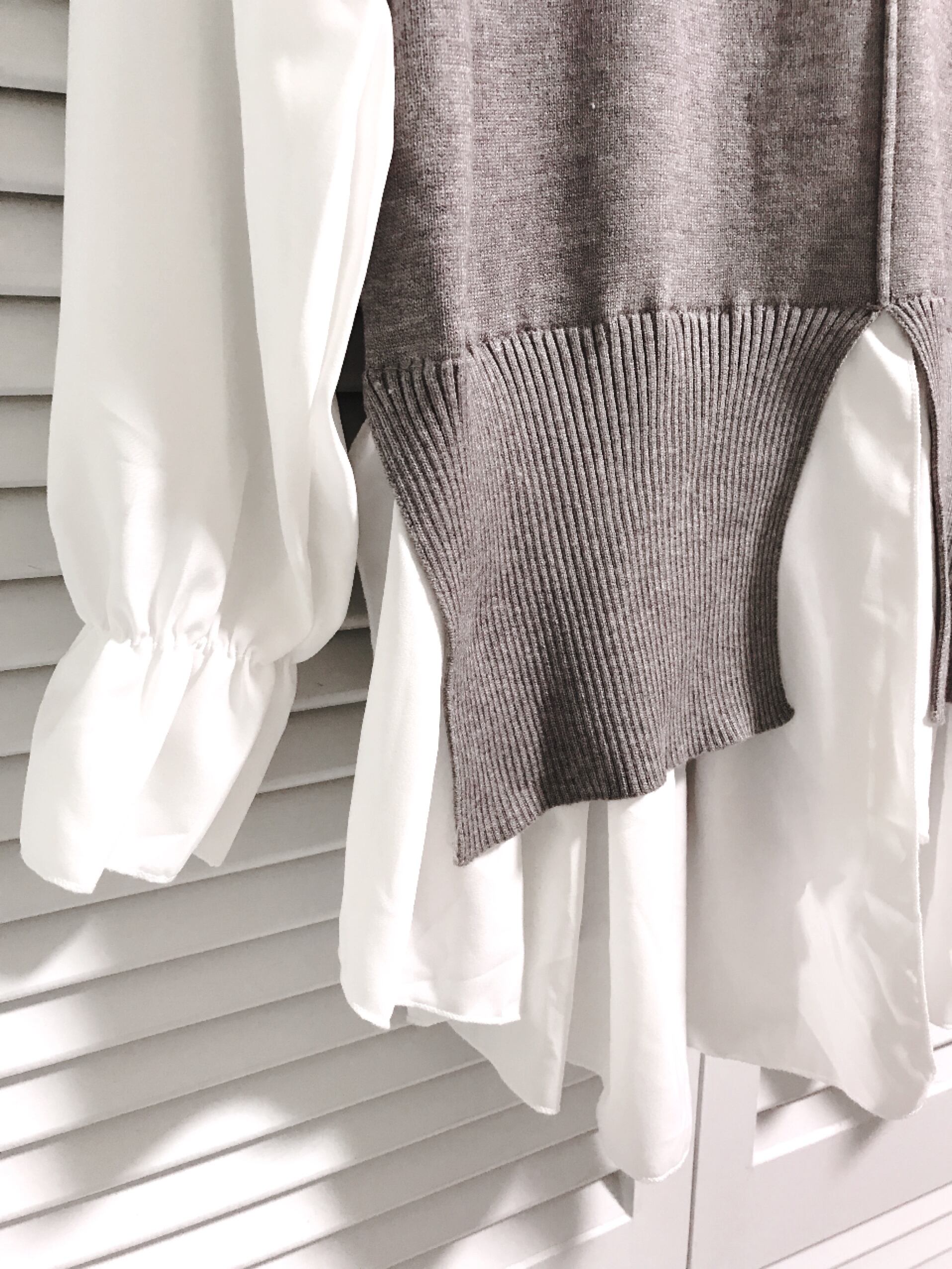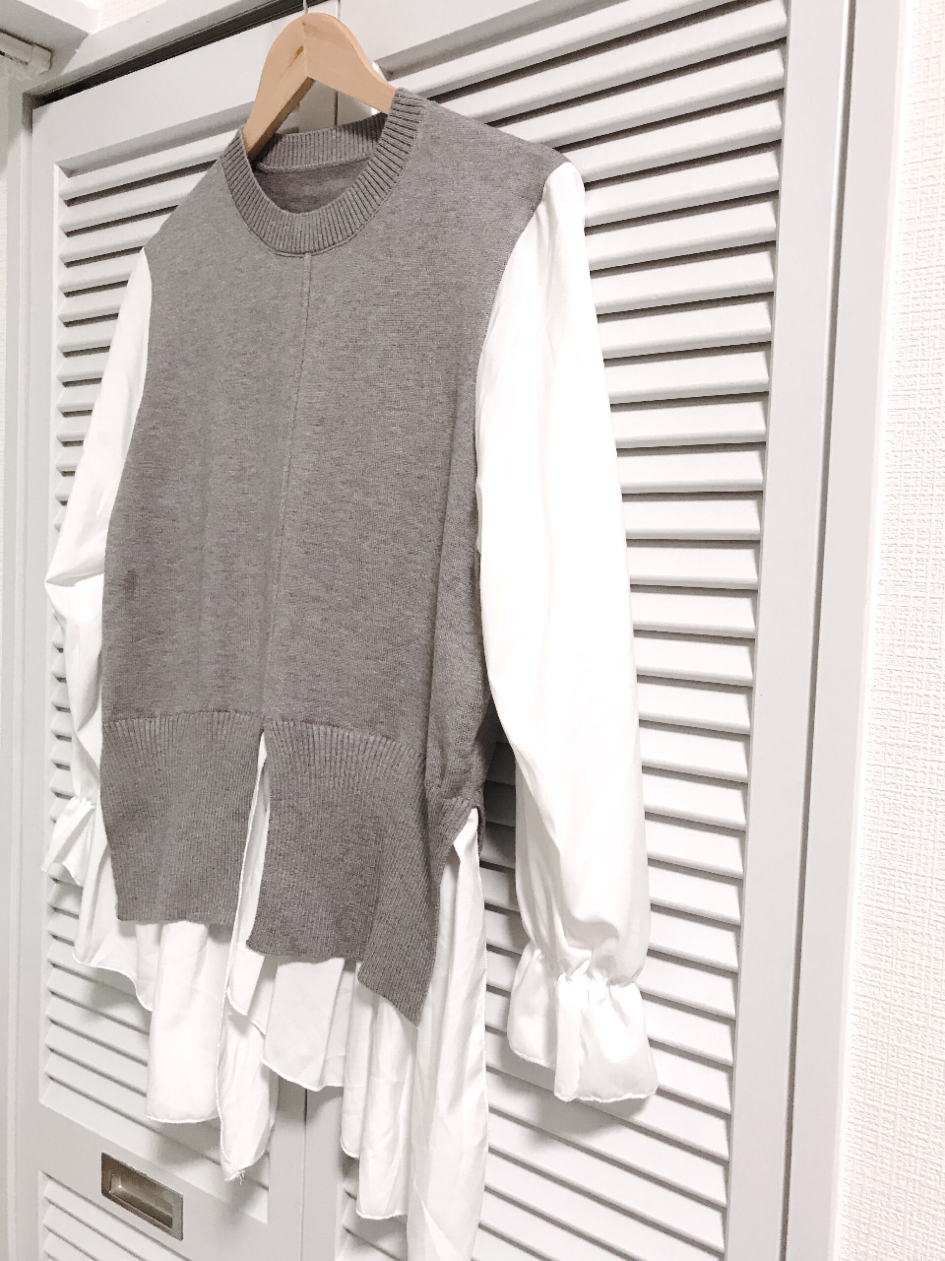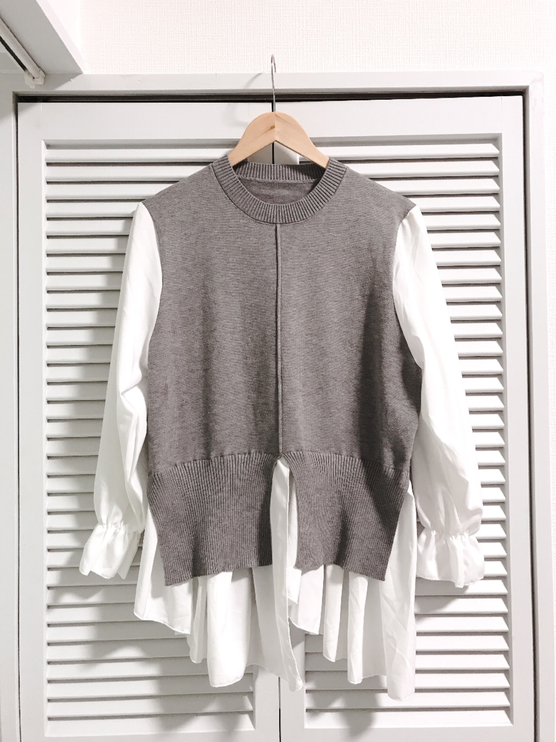 シャツとニットのドッキングトップス グレー