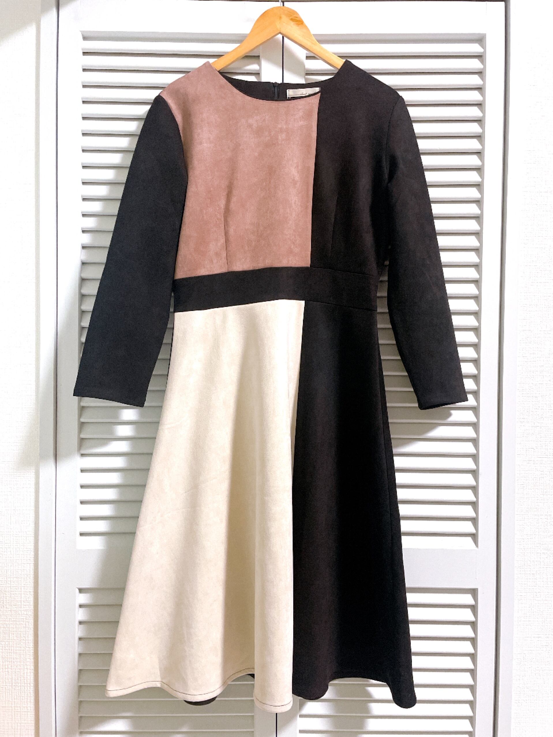 ピーチスキンで高級感のあるAラインの配色ワンピース♡
