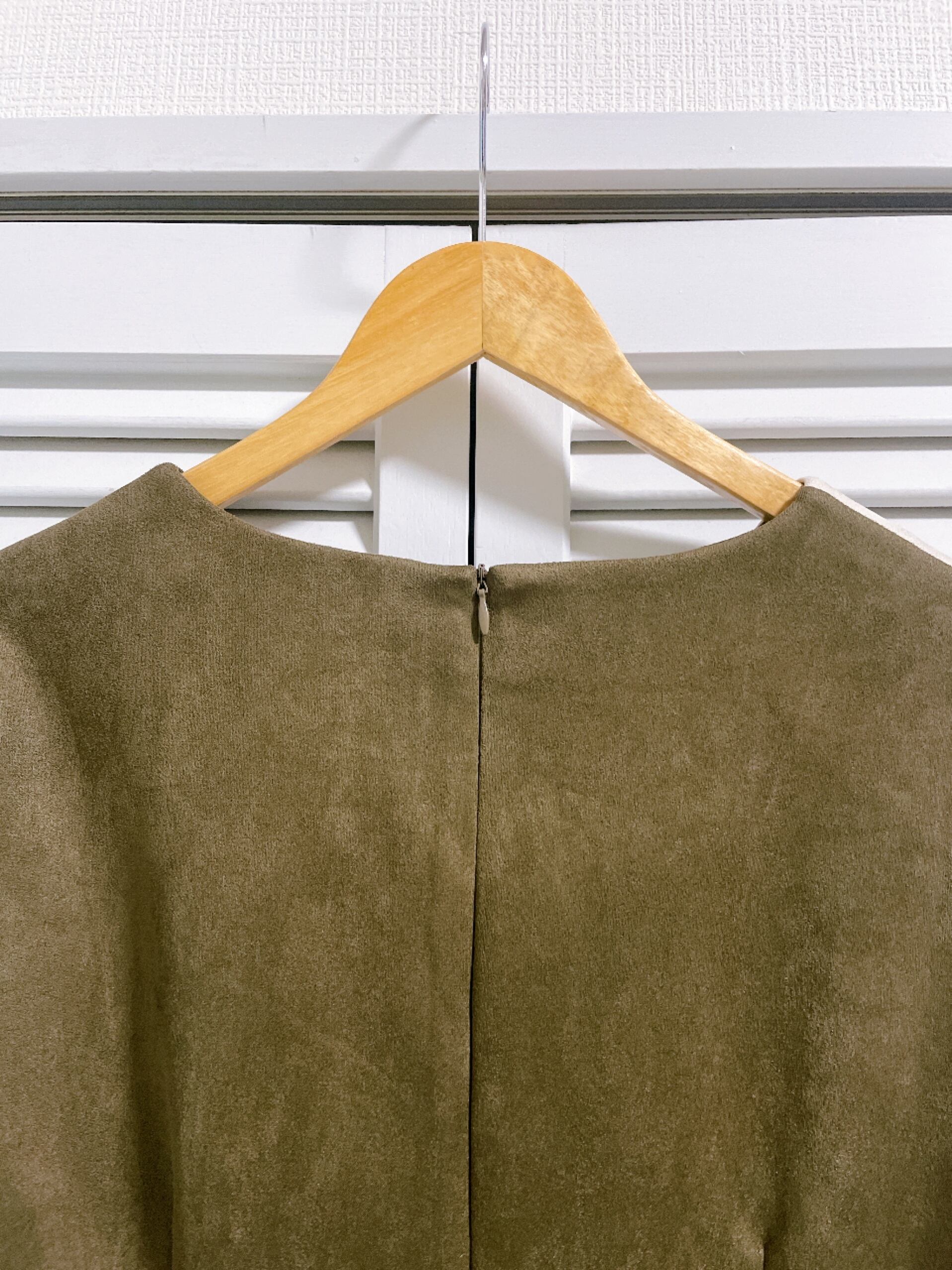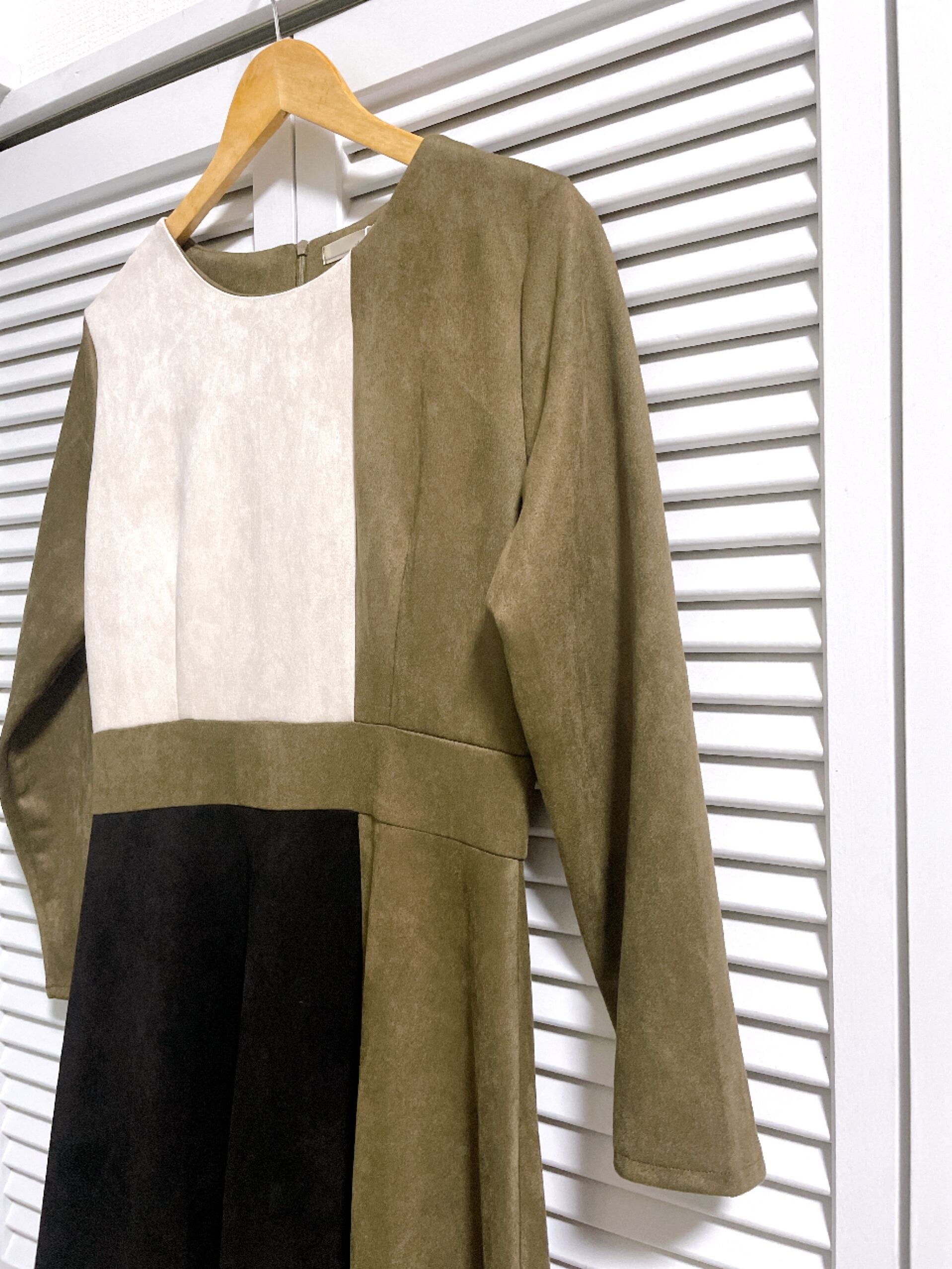 ピーチスキンで高級感のあるAラインの配色ワンピース♡
