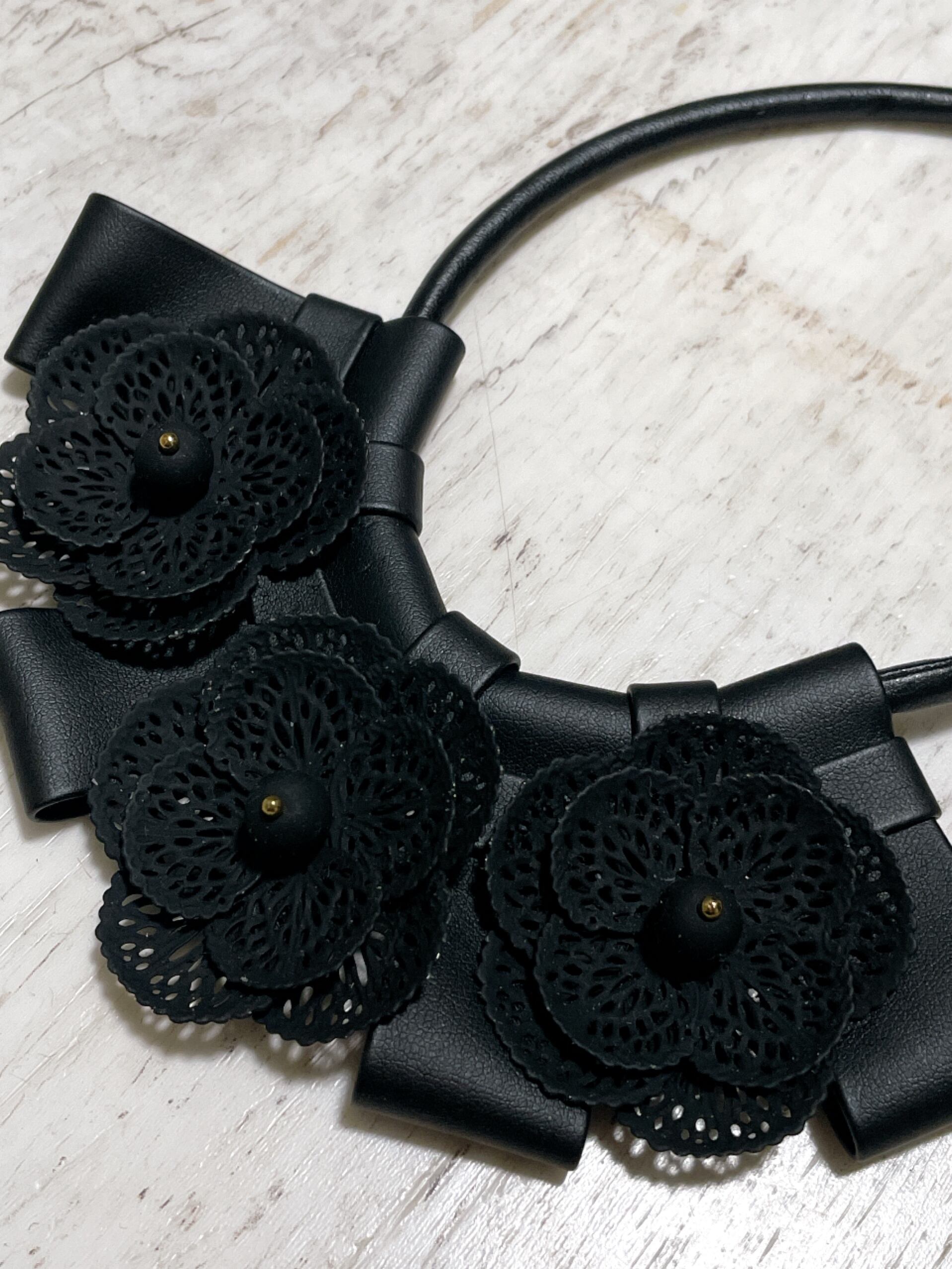 レザータッチのフラワーモチーフがお洒落なネックレス