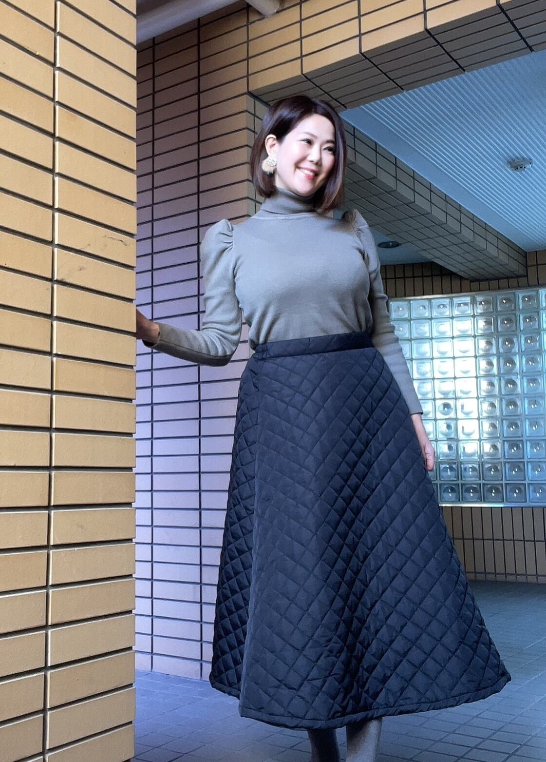 ブーツやヒールのパンプスや、スニーカーにも合わせやすいスカートです。