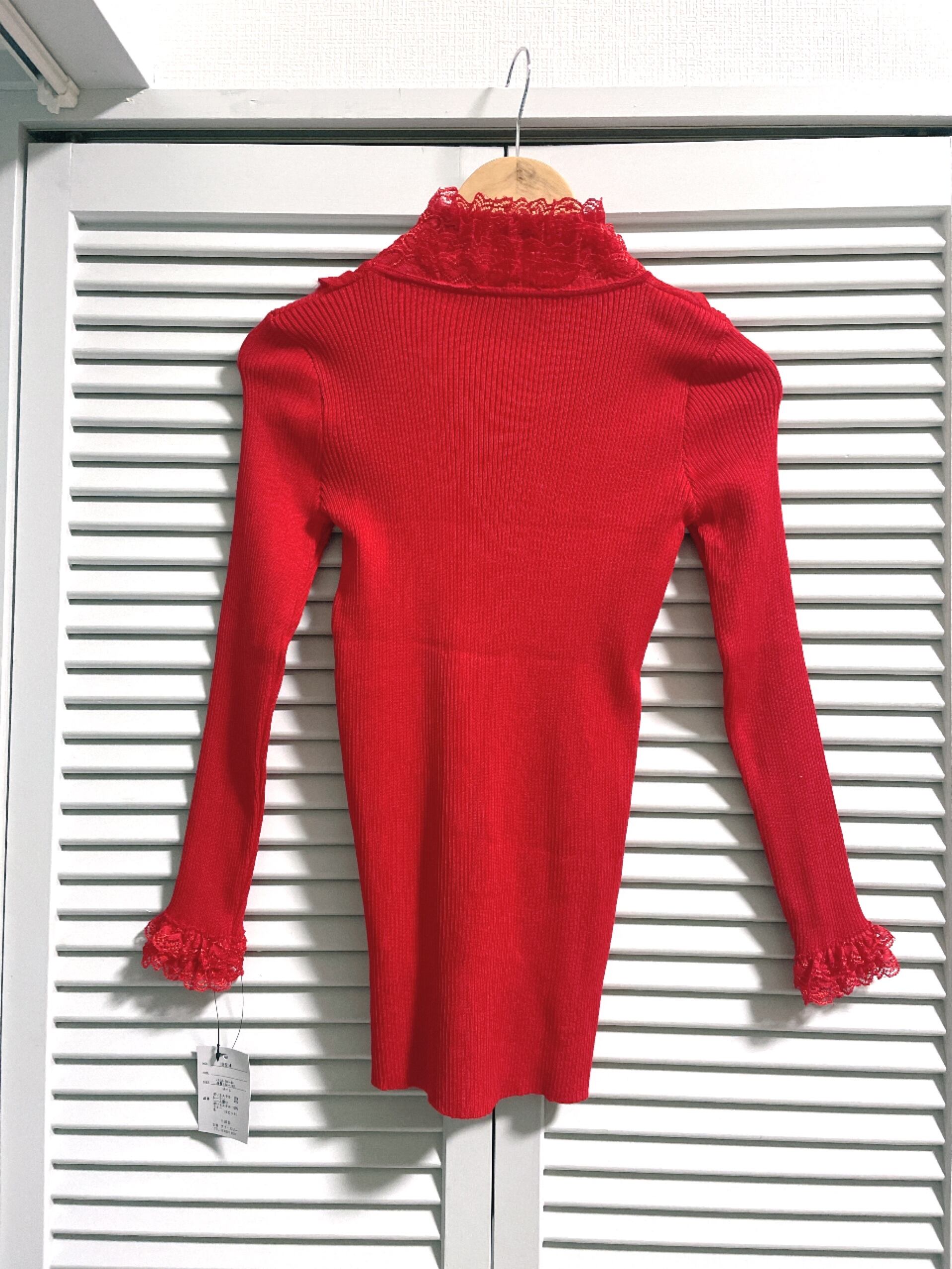 • 袖レースのタートルネックリブカットソー ブラック 袖レースのタートルネックリブカットソー ブラック ¥3,980