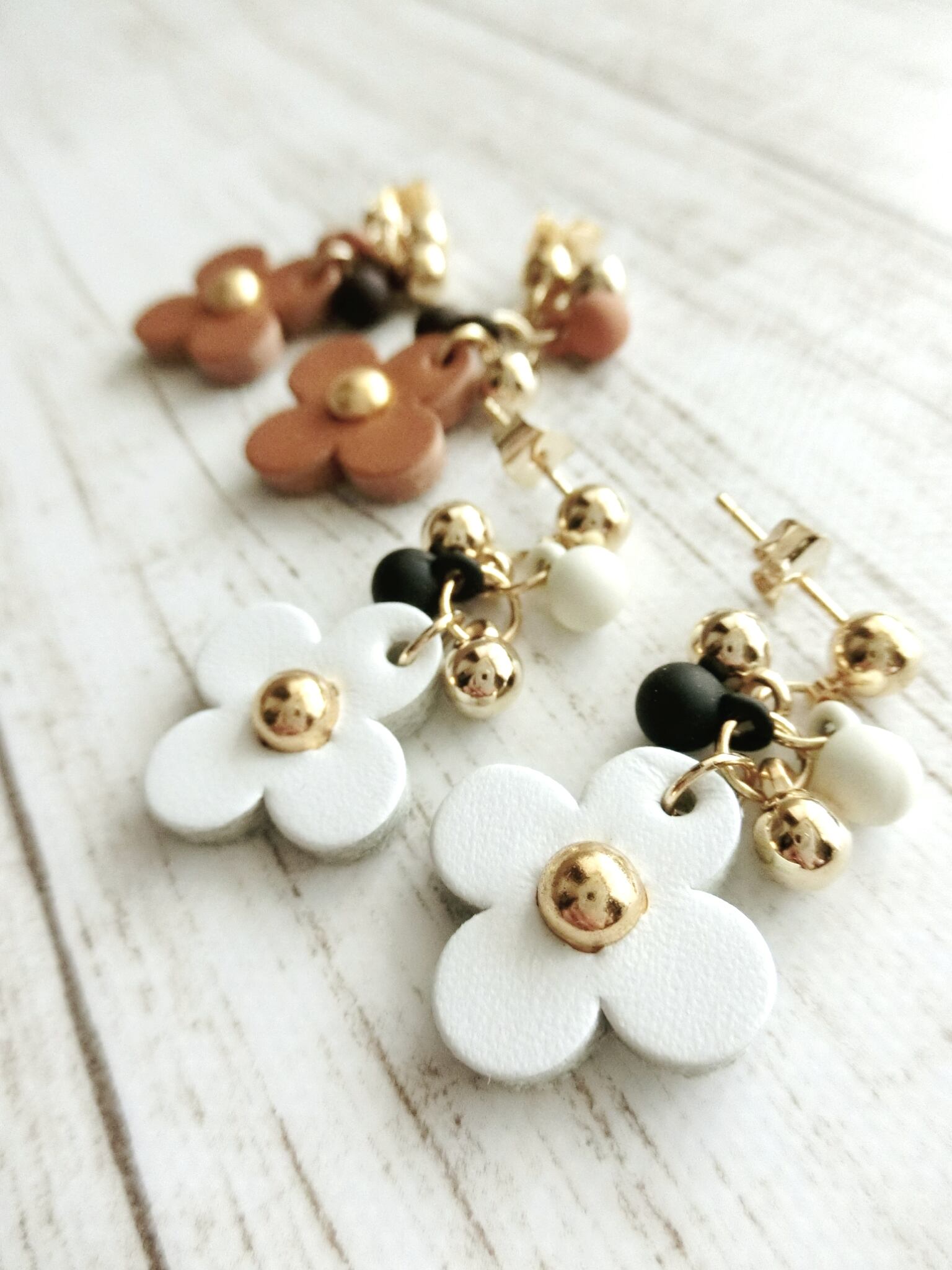 レザーのお花モチーフのピアス
