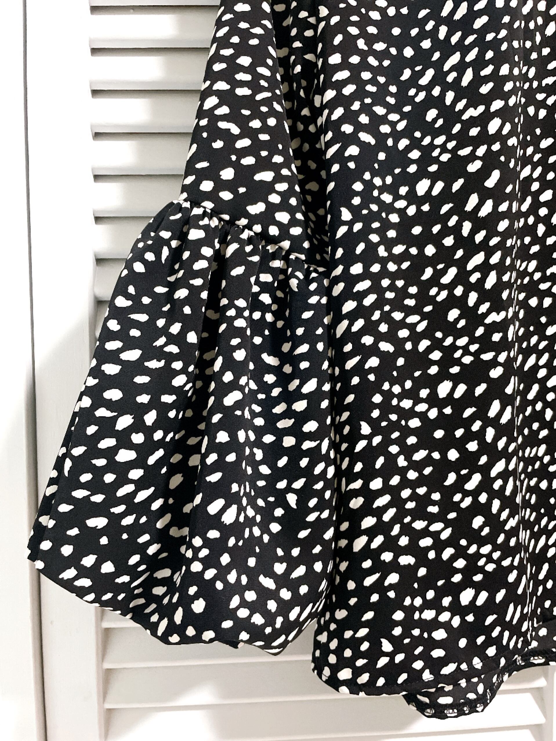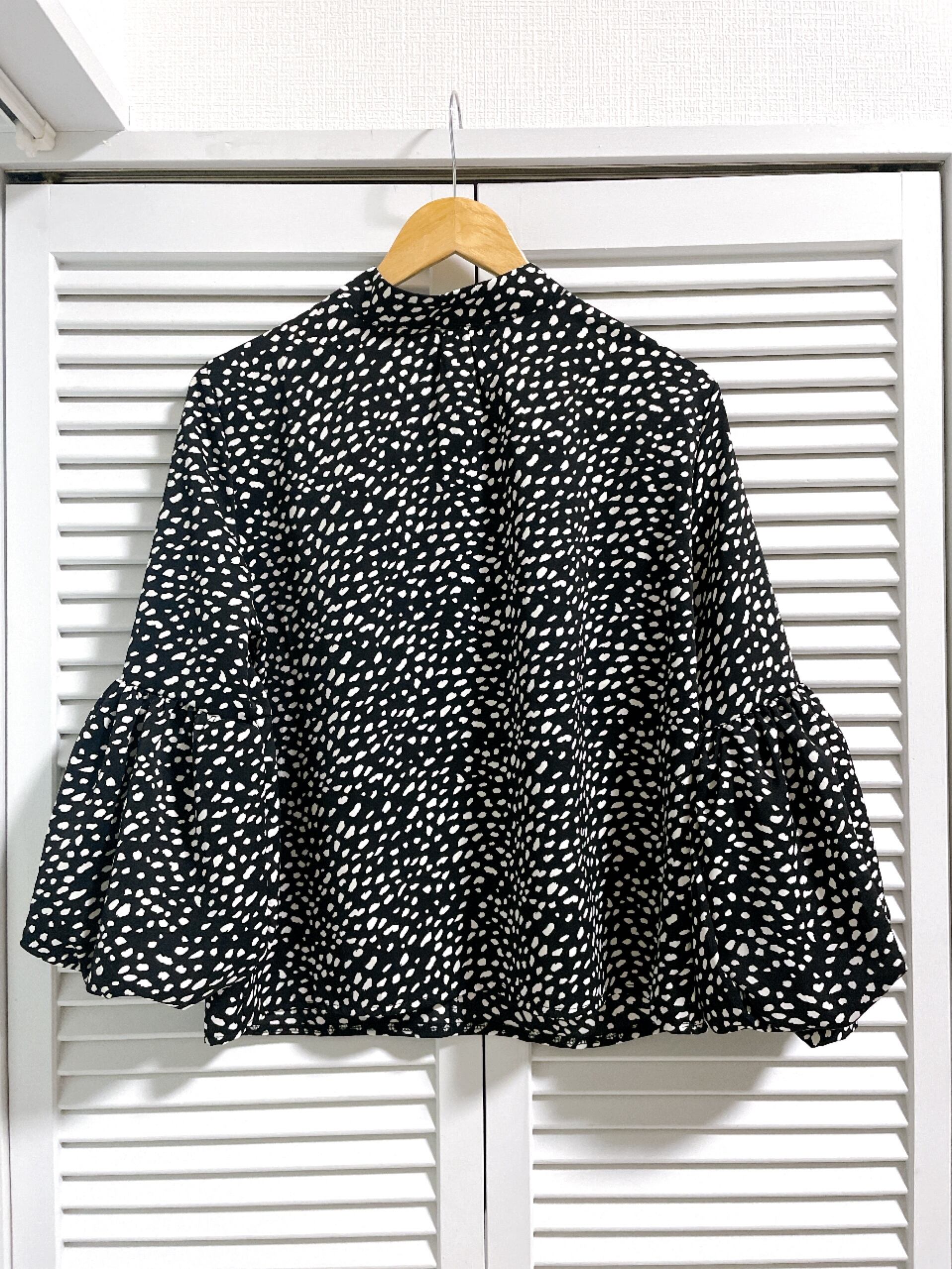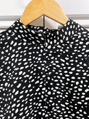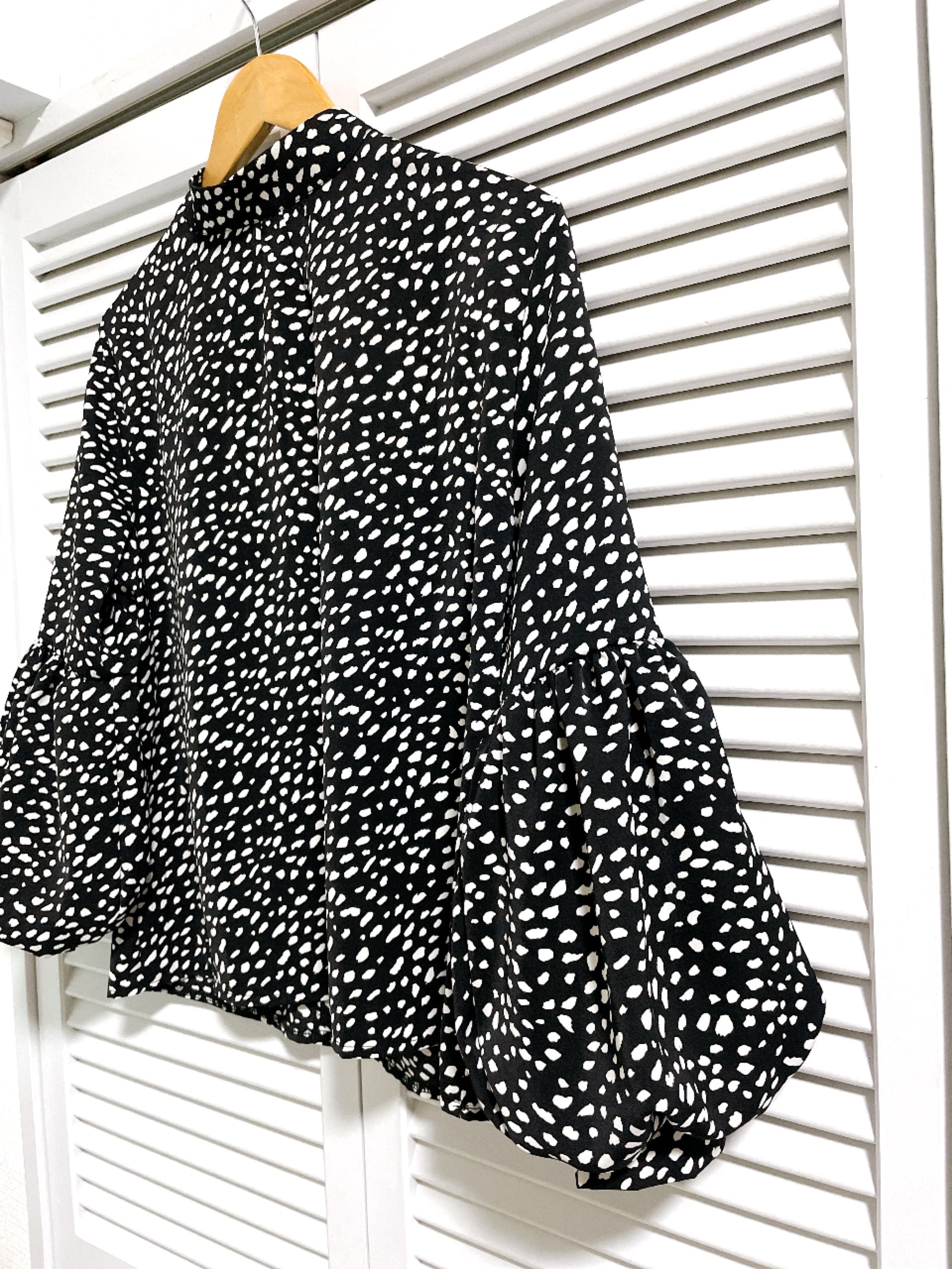 ダルメシアン柄バルーンスリーブトップス ブラック