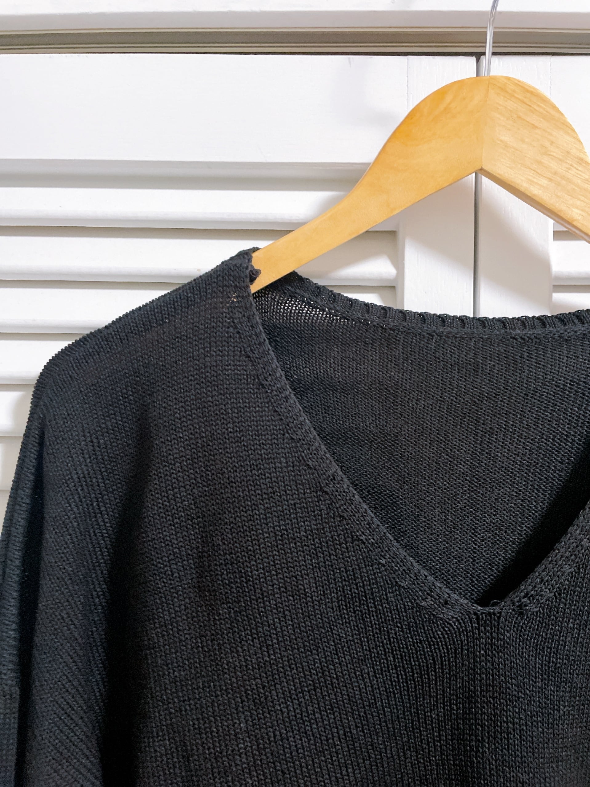 Vネックのスリット入りサマーニット ブラック