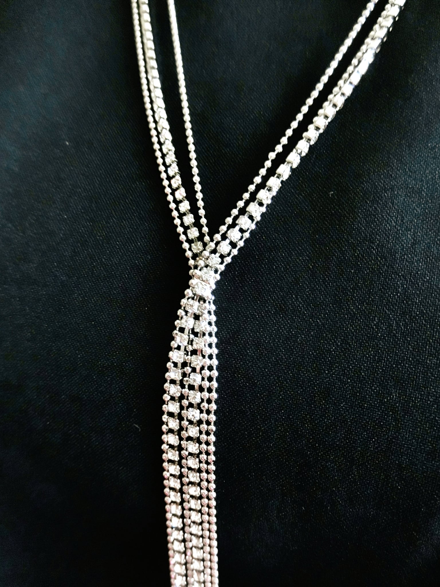 再入荷★三連Y字ラインストーンロングネックレス シルバーカラー
