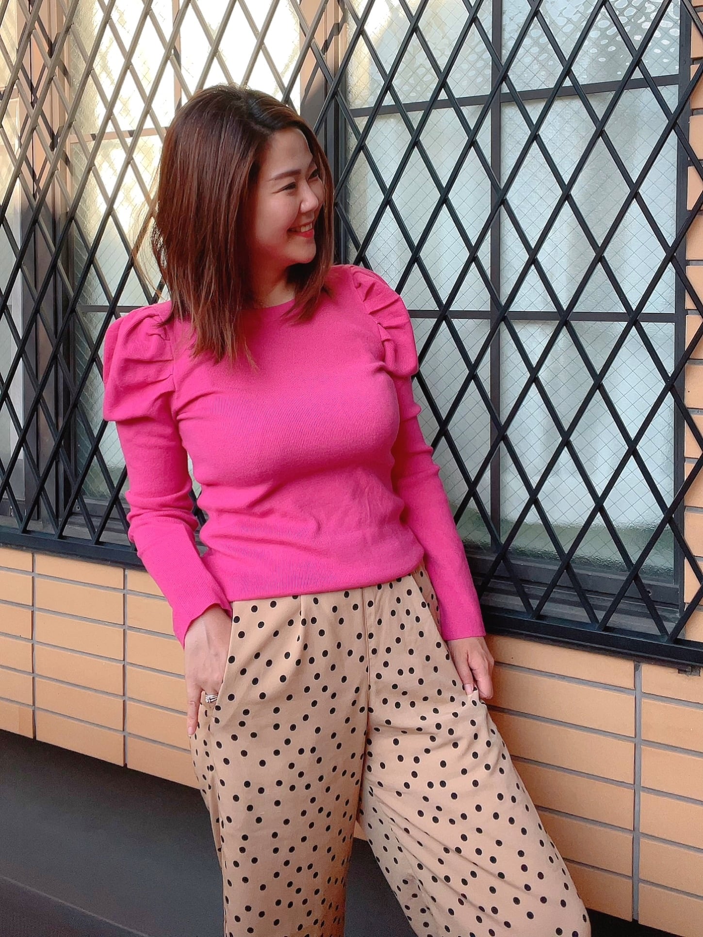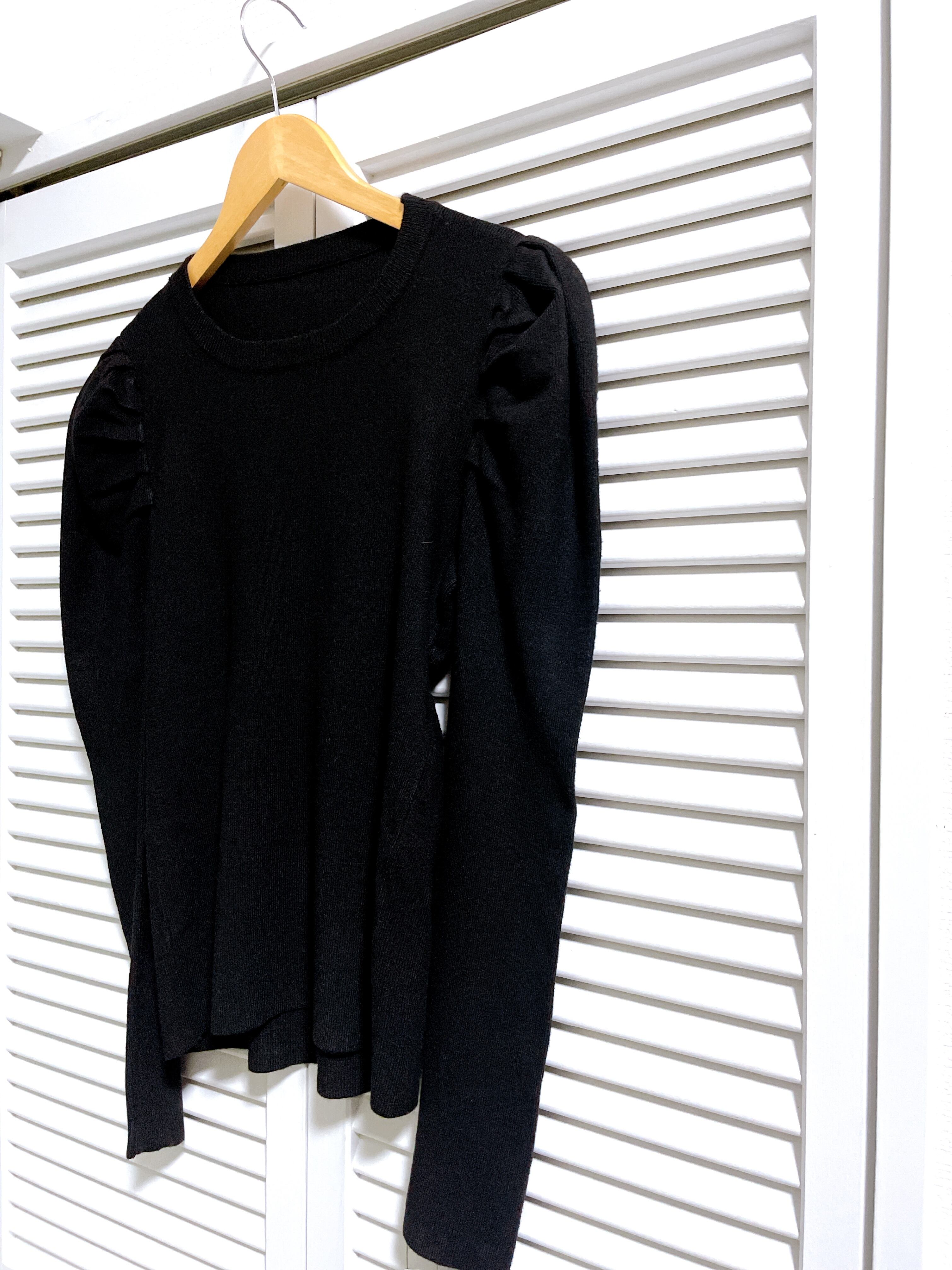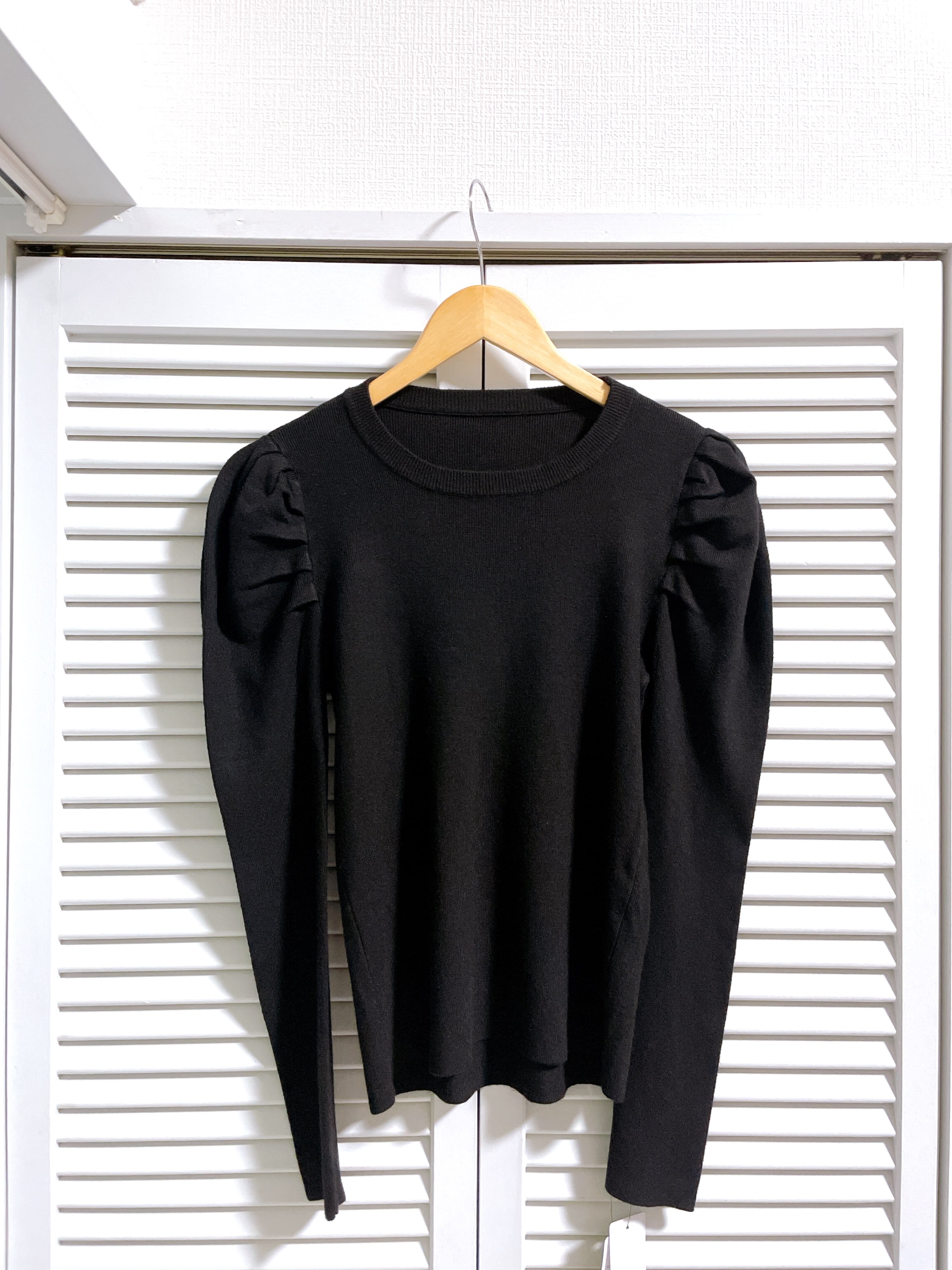 肩部分のパフは大きすぎず、シンプルに着ることができます。
