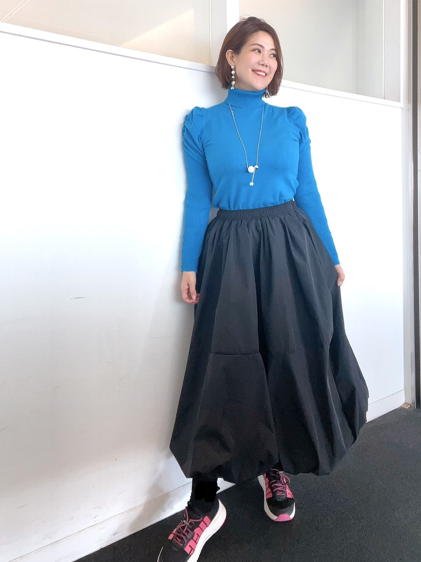 • 袖ボタンのパフショルダー柔らかタートルネックニット ブルー 袖ボタンのパフショルダー柔らかタートルネックニット ブルー ¥1,990