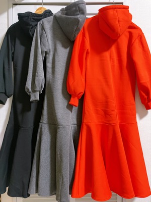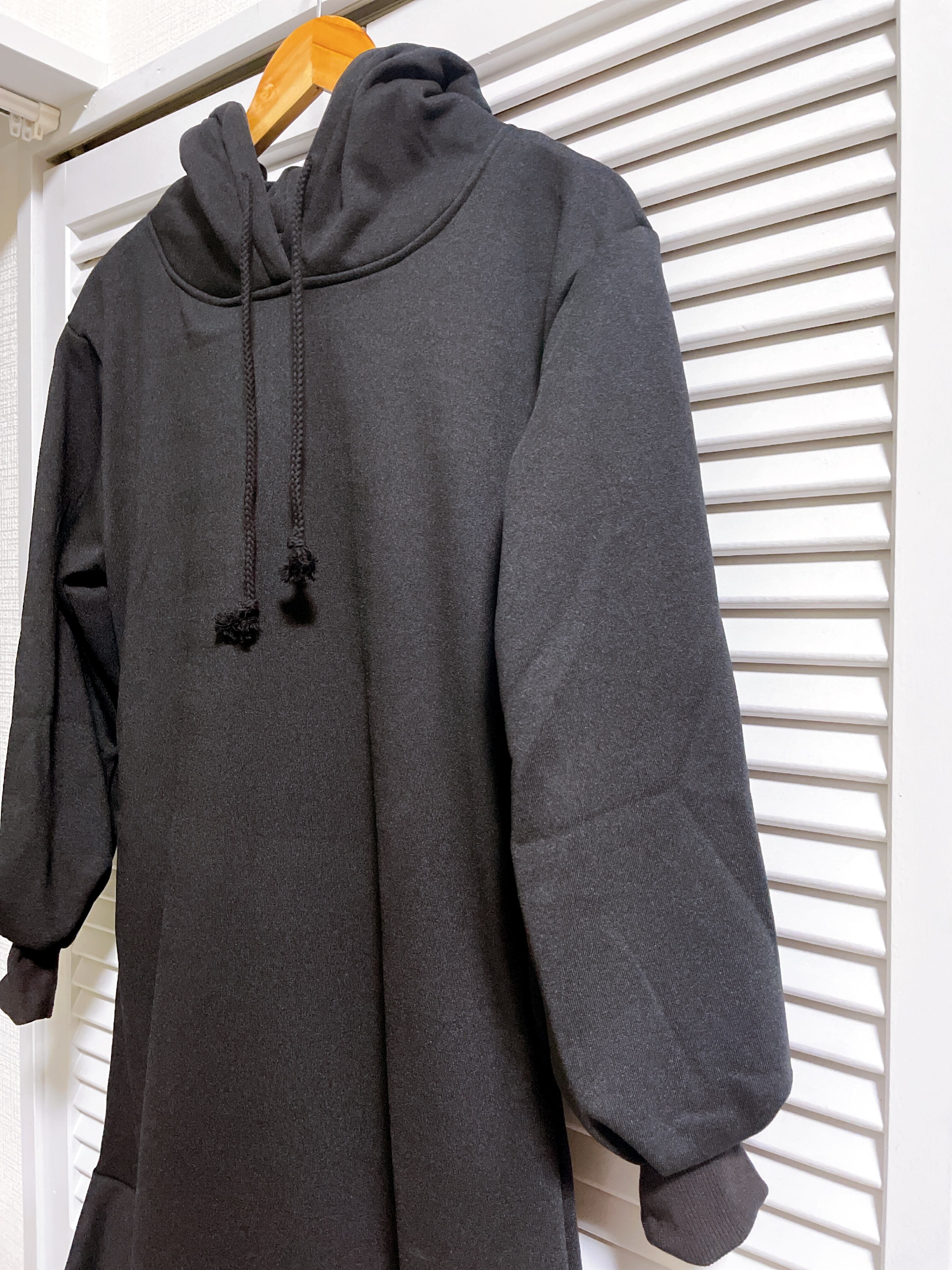 裏起毛フード付きマーメイド型ロングワンピース ブラック