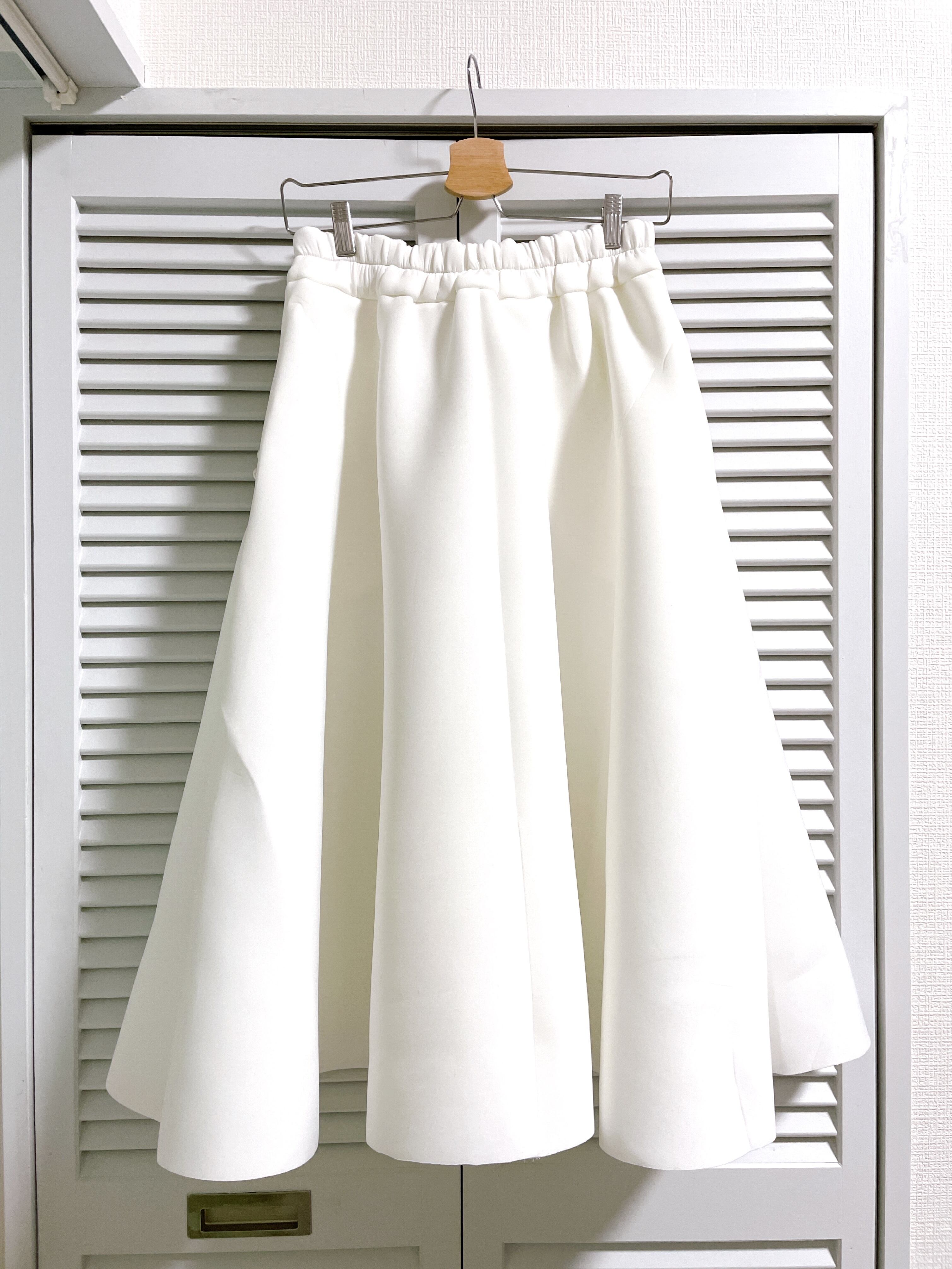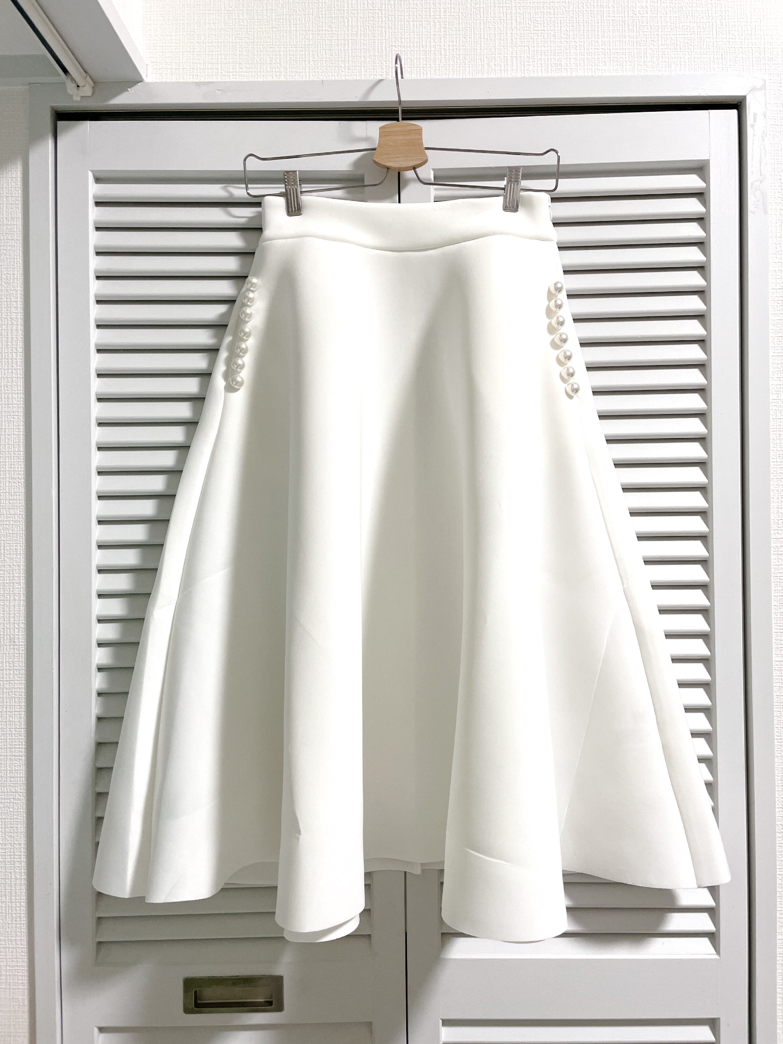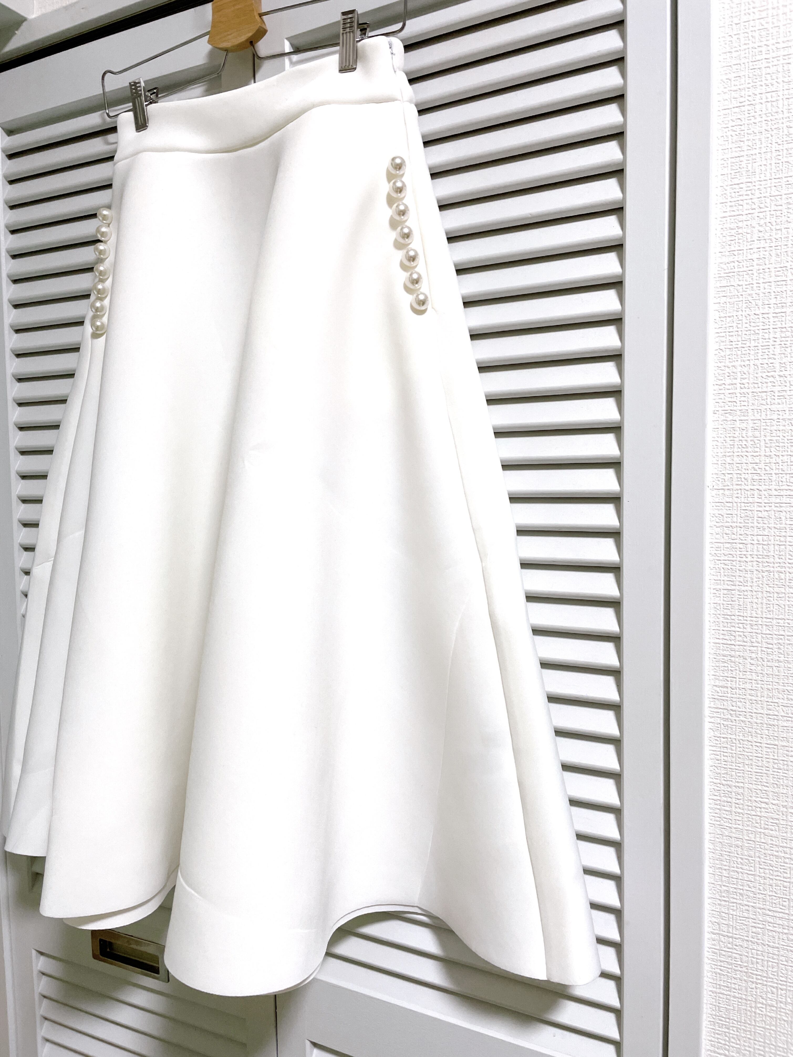 再入荷★パールポケットのミモレ丈ボンディングスカート ホワイト