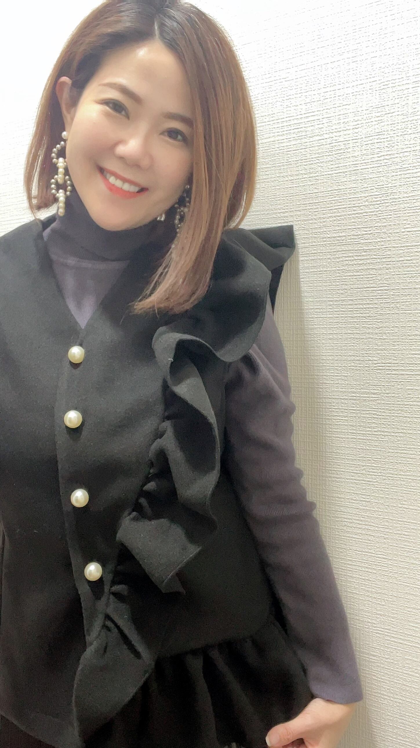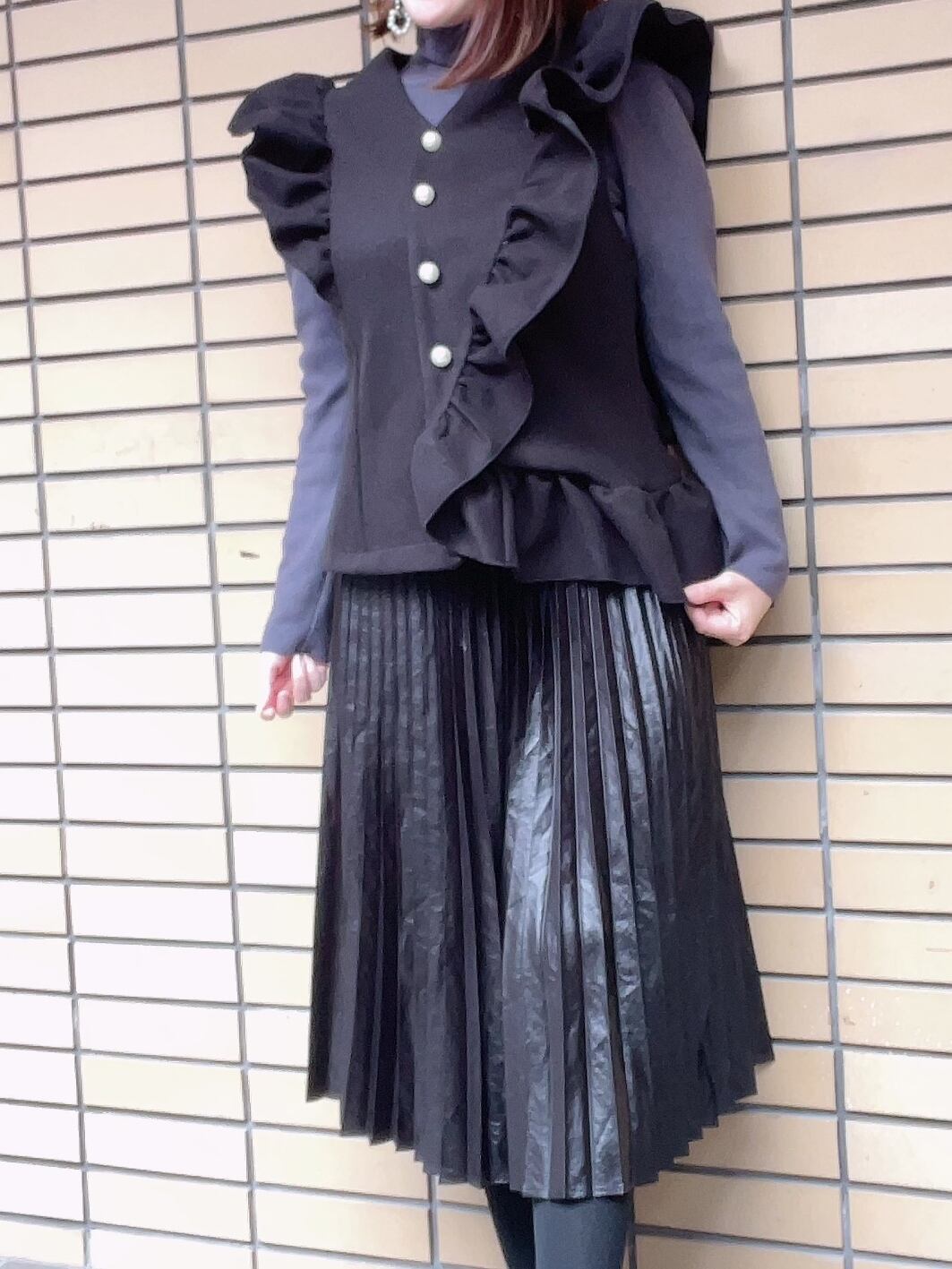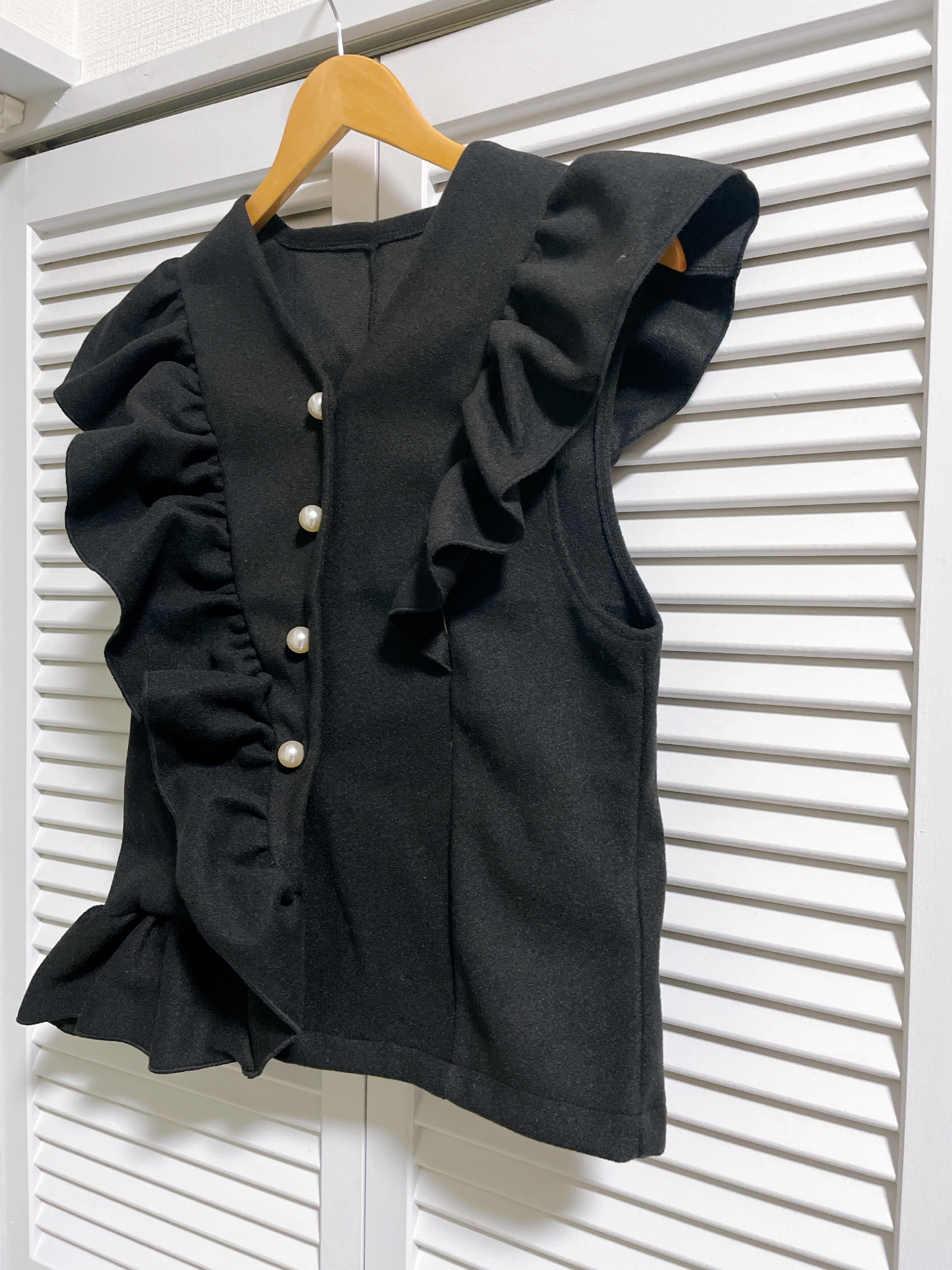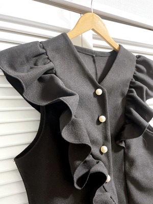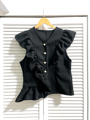 アシンメトリーのフリルがお洒落なパールボタンのベスト♡