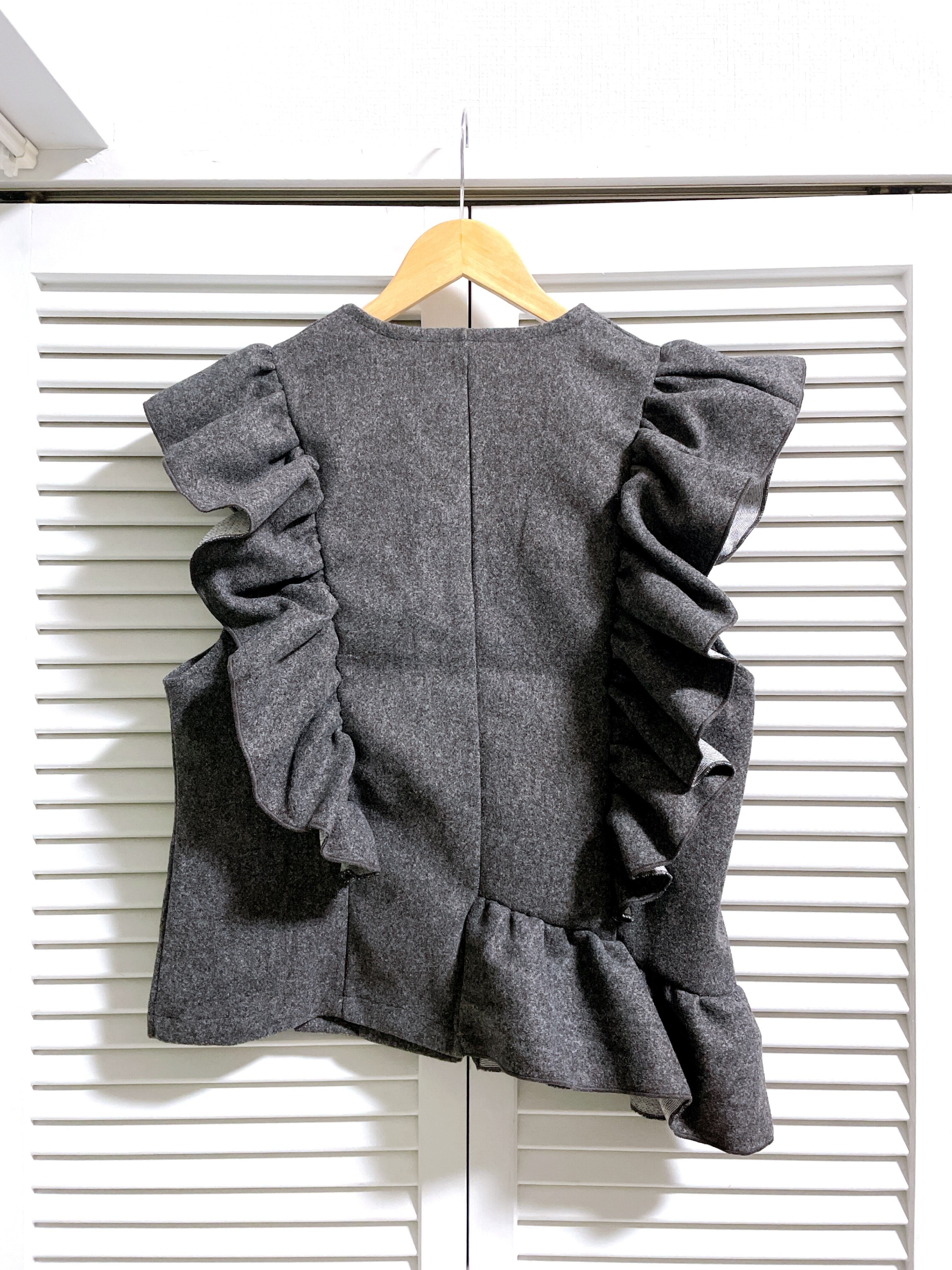 再入荷★アシンメトリーフリルのパールボタンベスト グレー