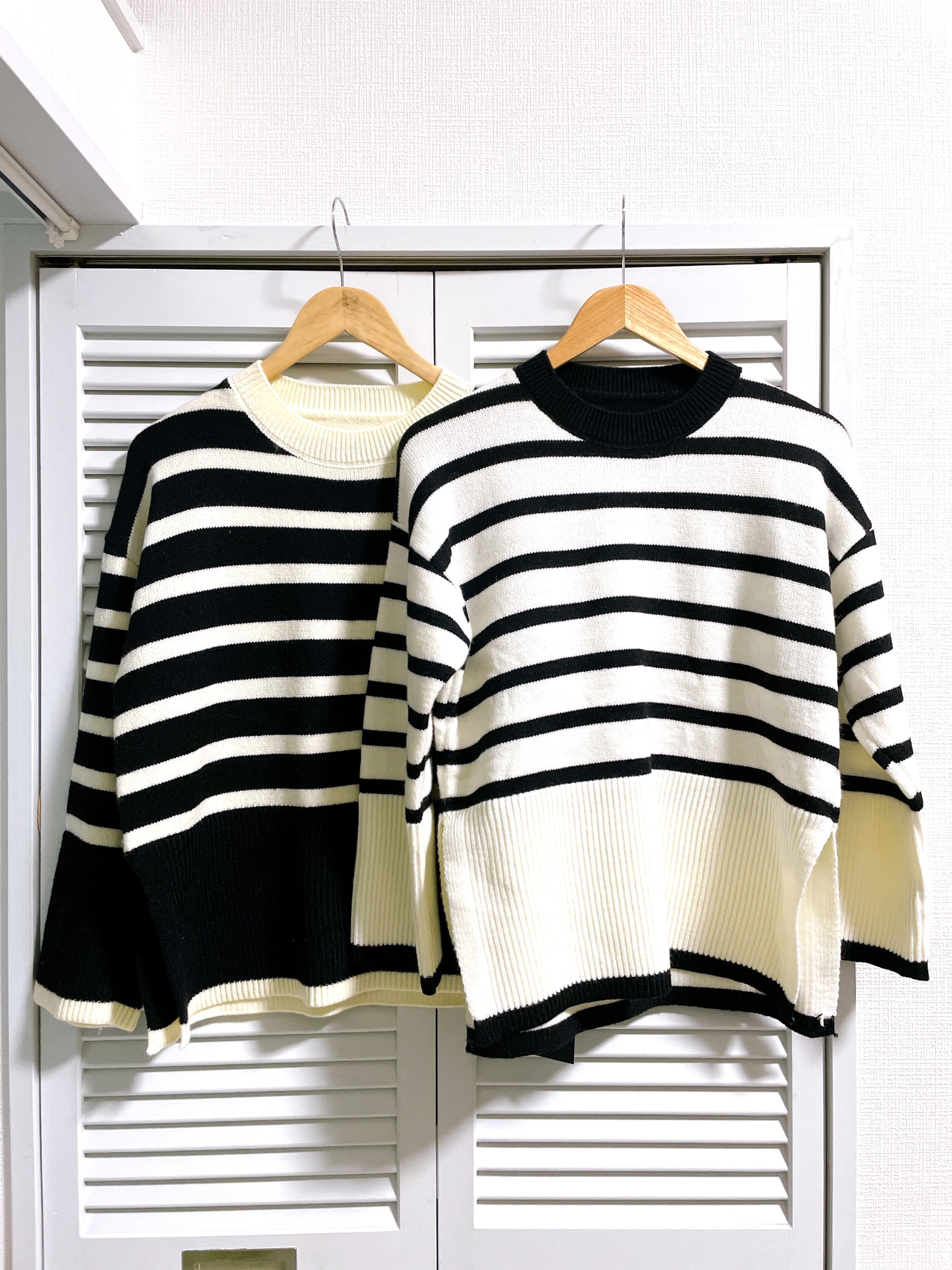 ブラックとアイボリーのお洒落なバイカラーボーダーニット♡