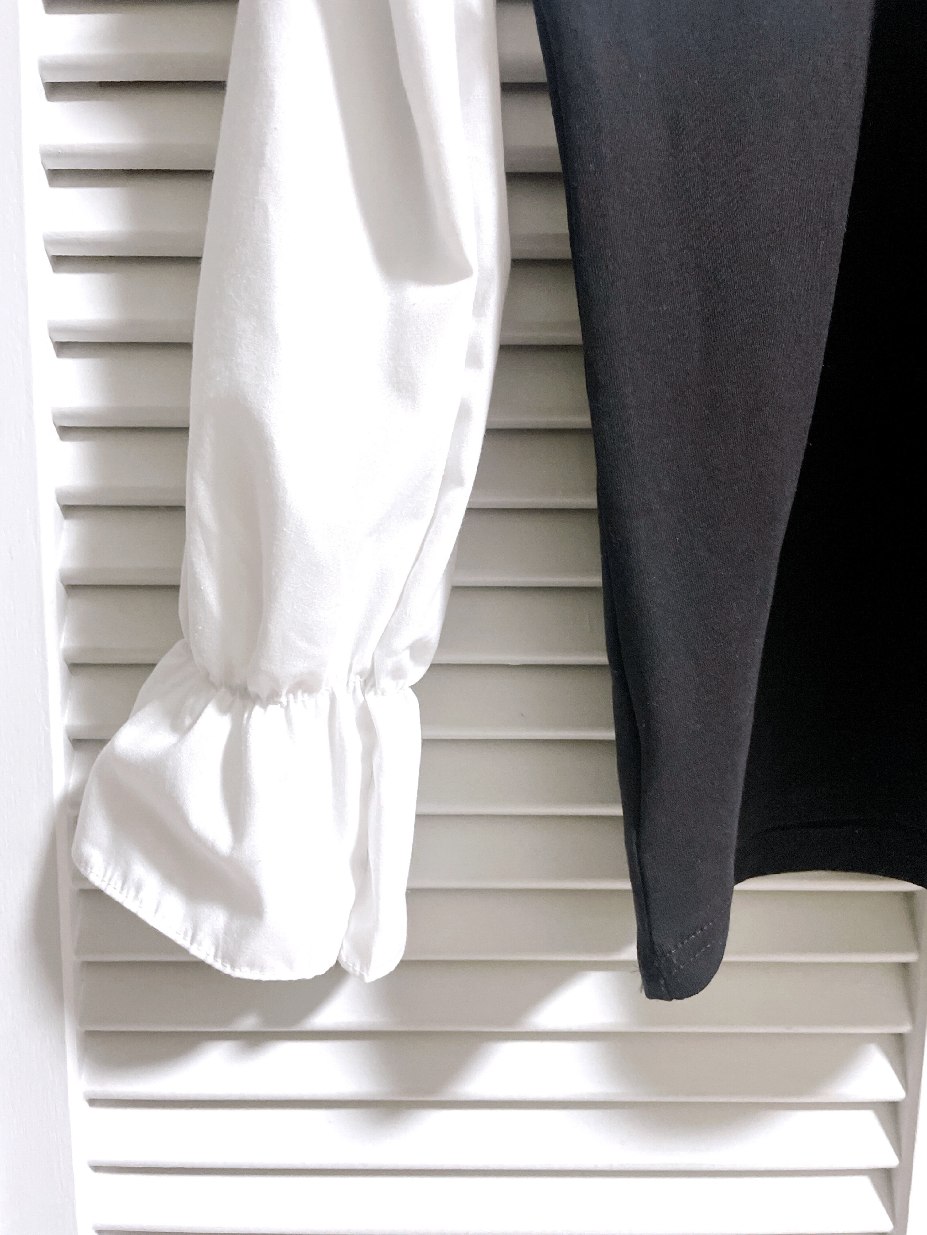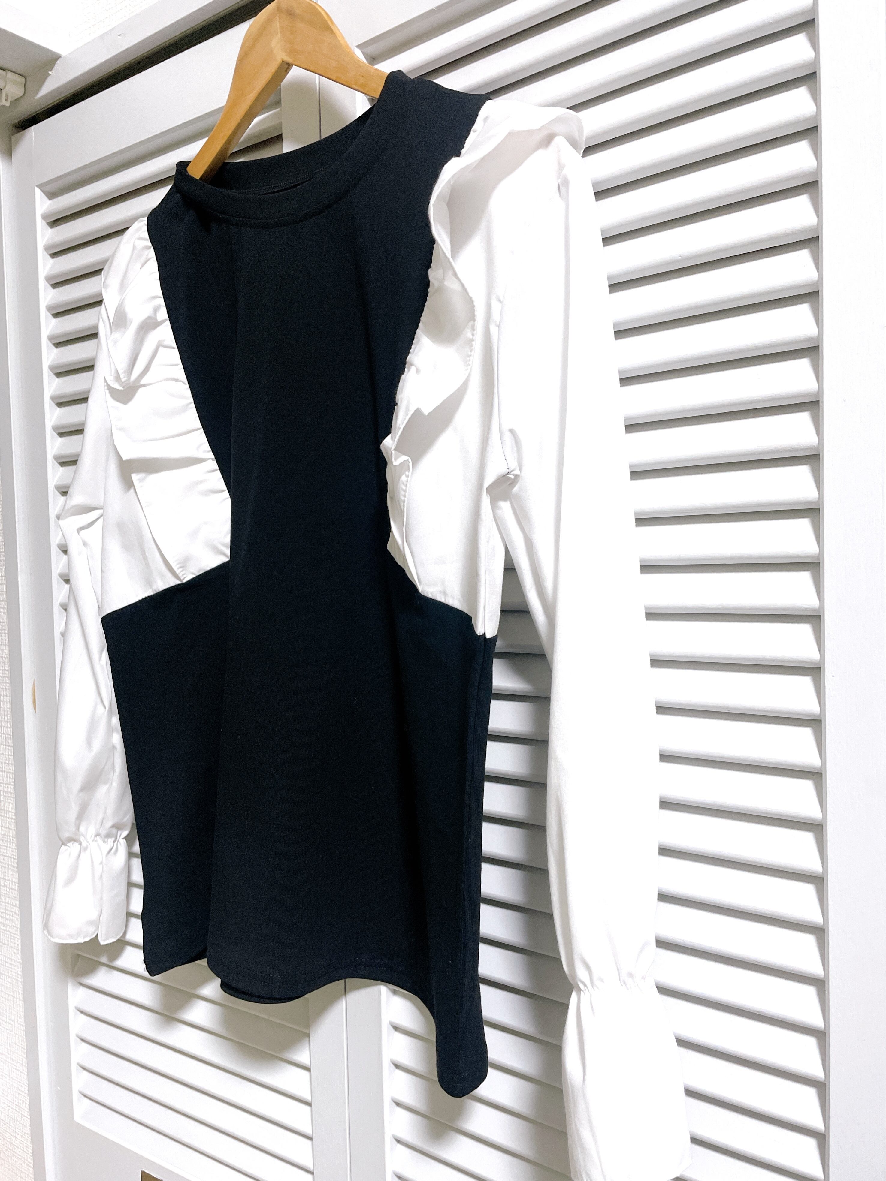 フリルが可愛いモノトーンのドッキングトップス