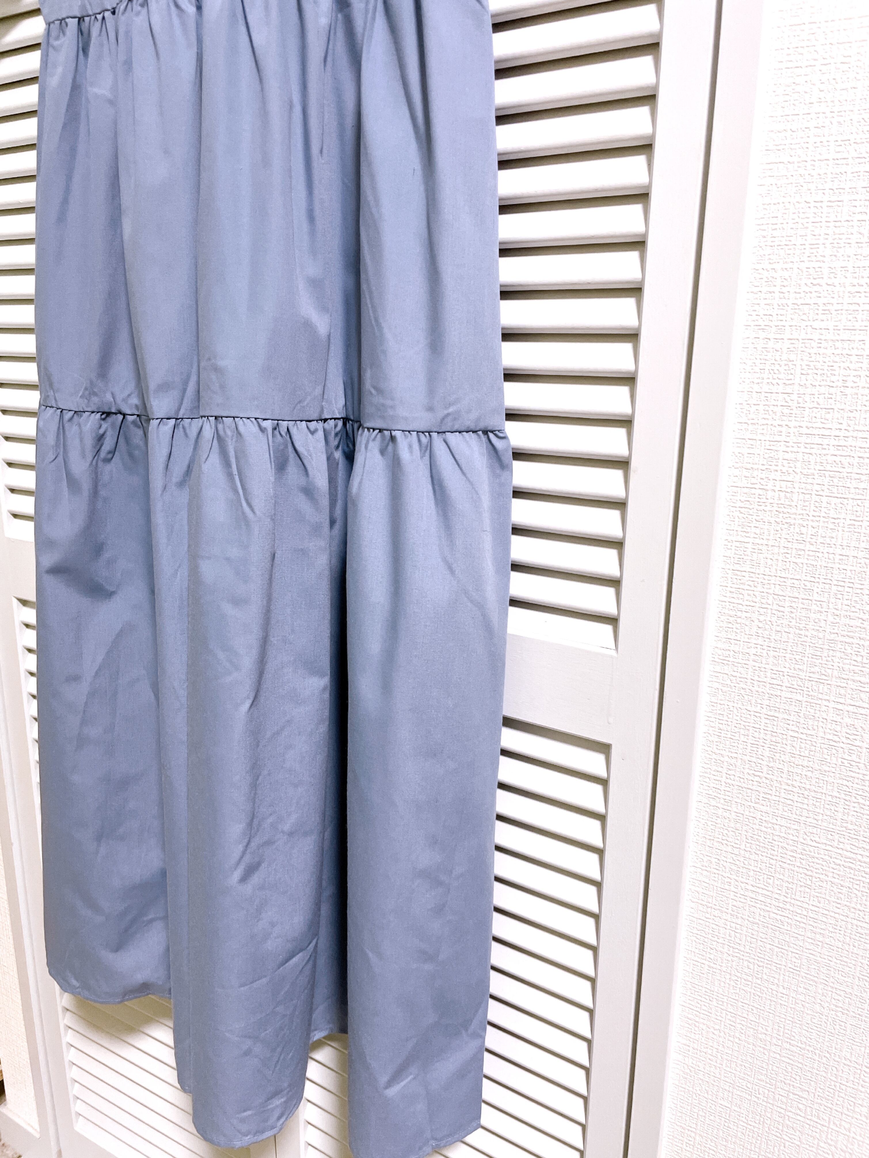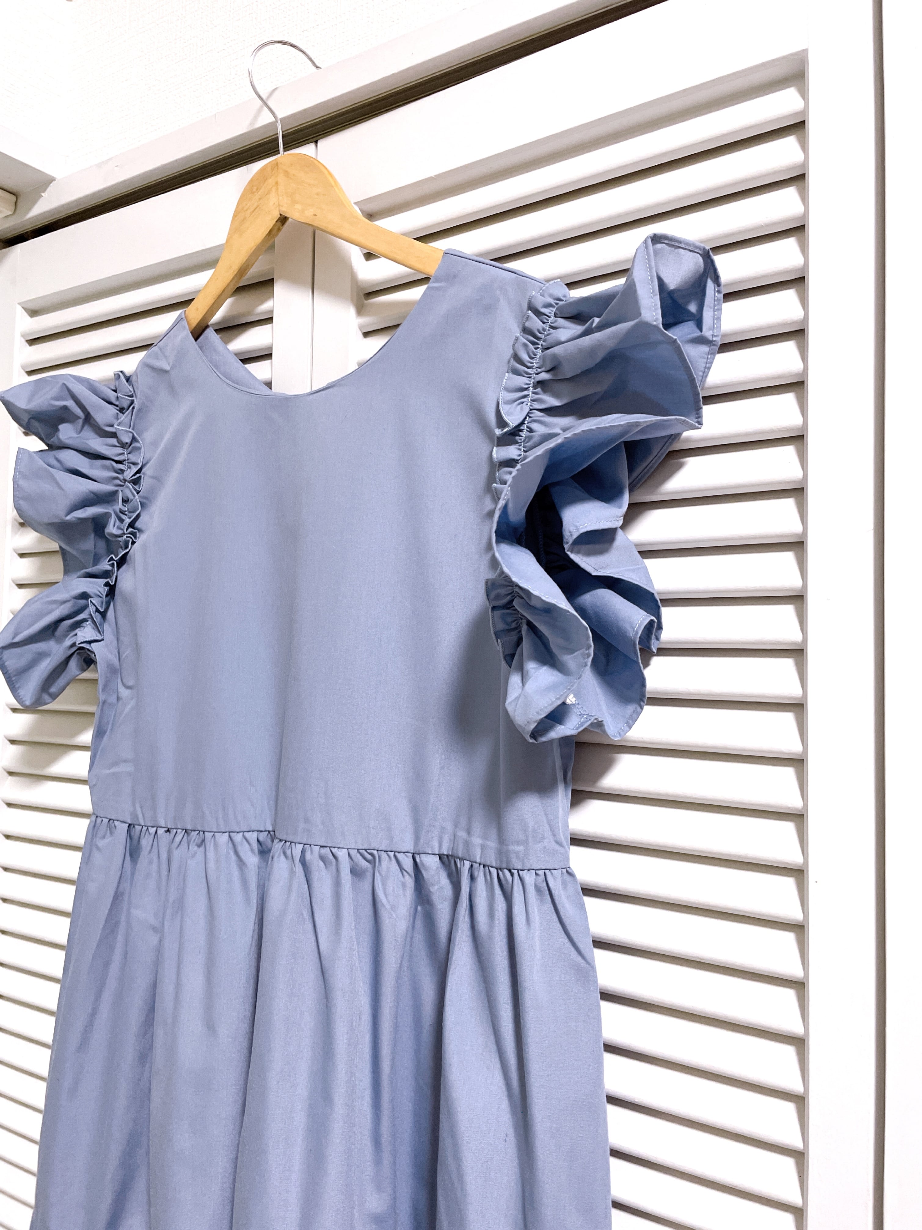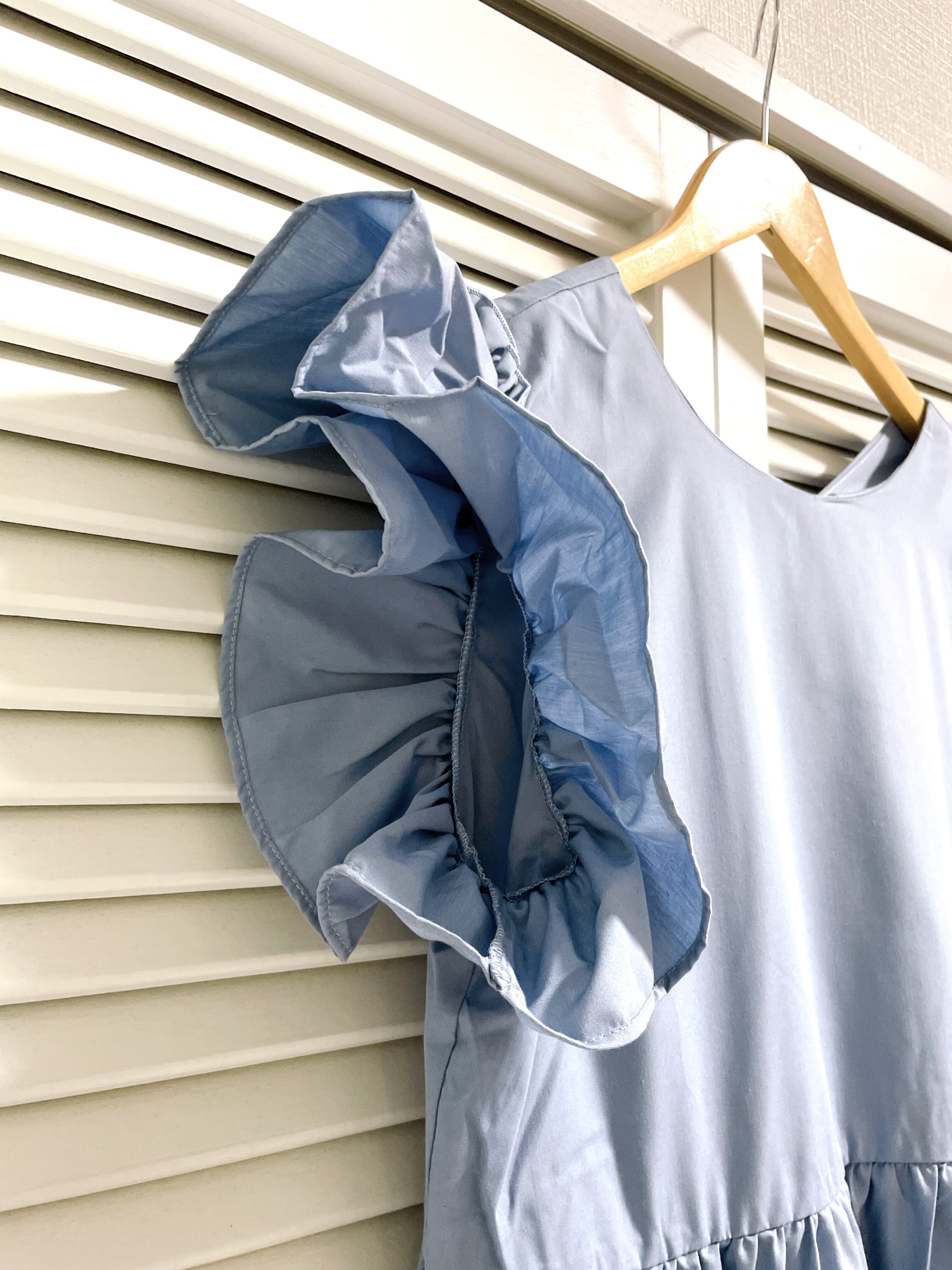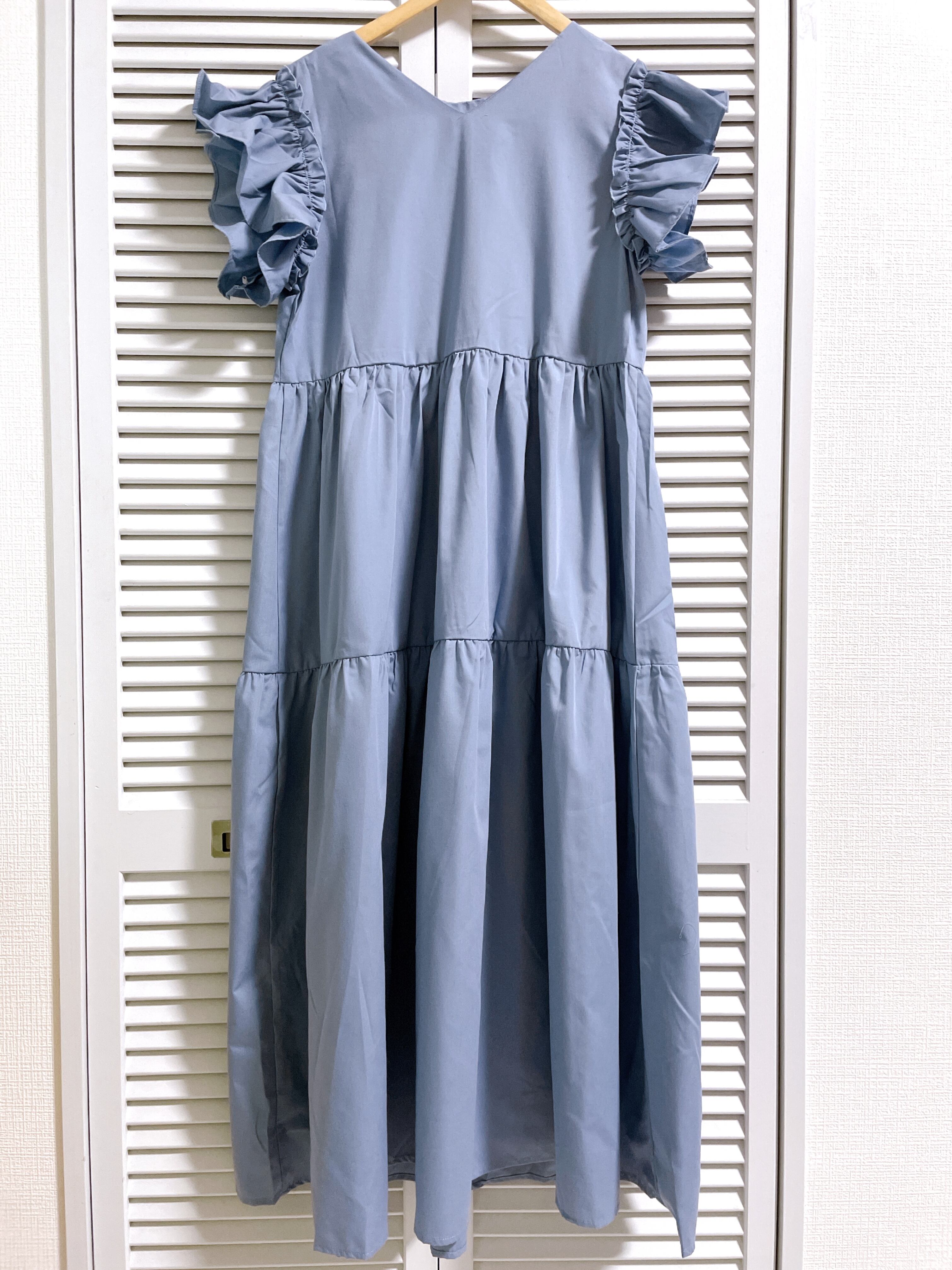 ラッフルスリーブのロングティアードワンピース ライトブルー