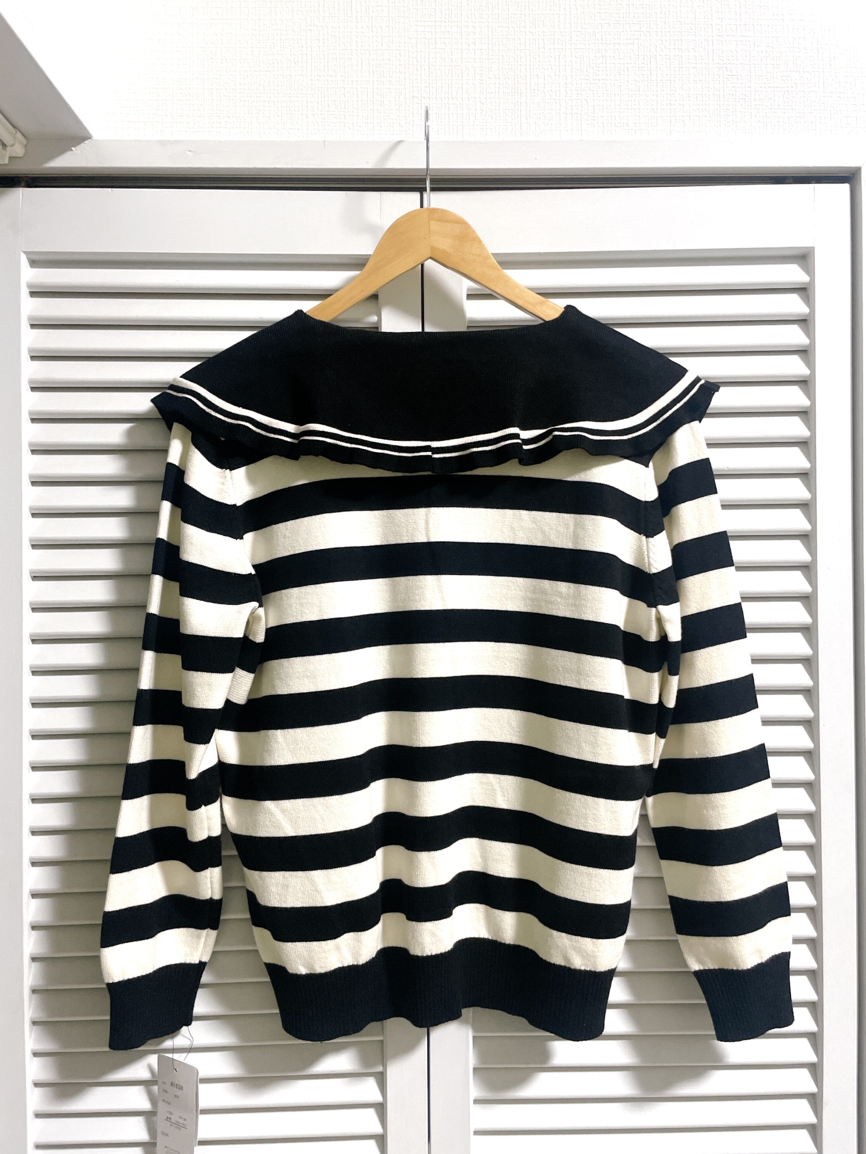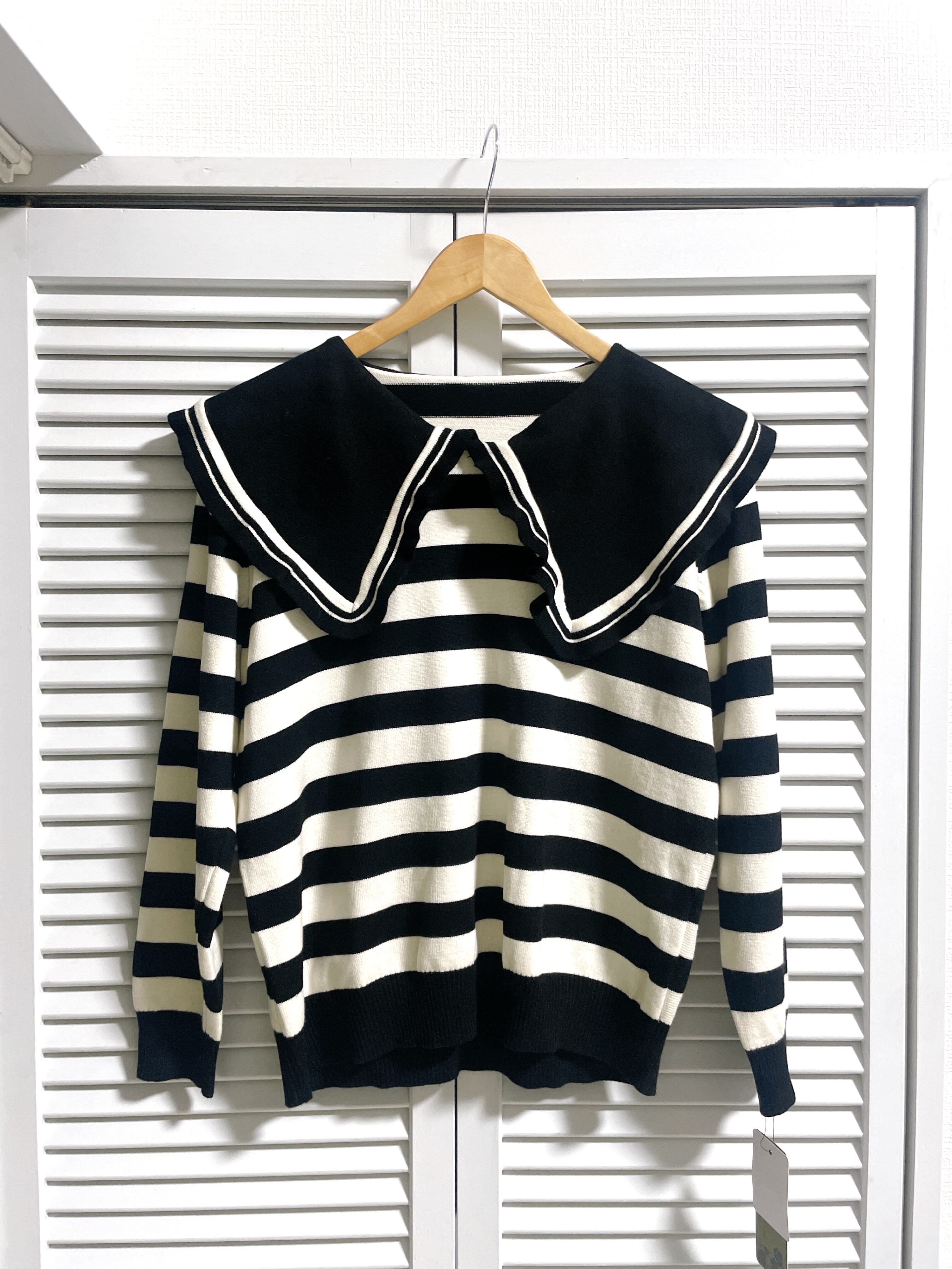 大きな襟が可愛いボーダーのニット♡
