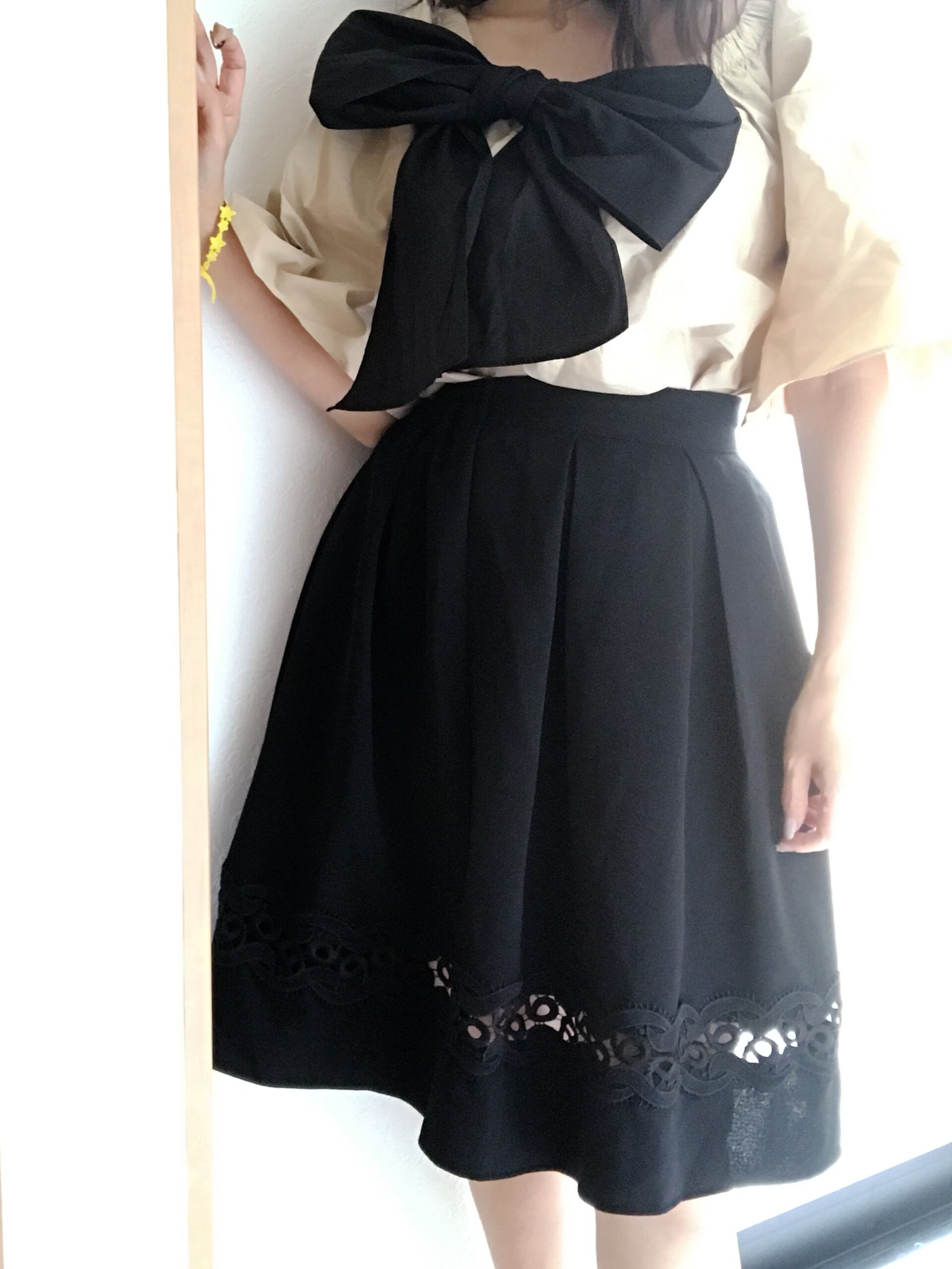 襟元がゴムになっているので、オフショルとしても着られます♡