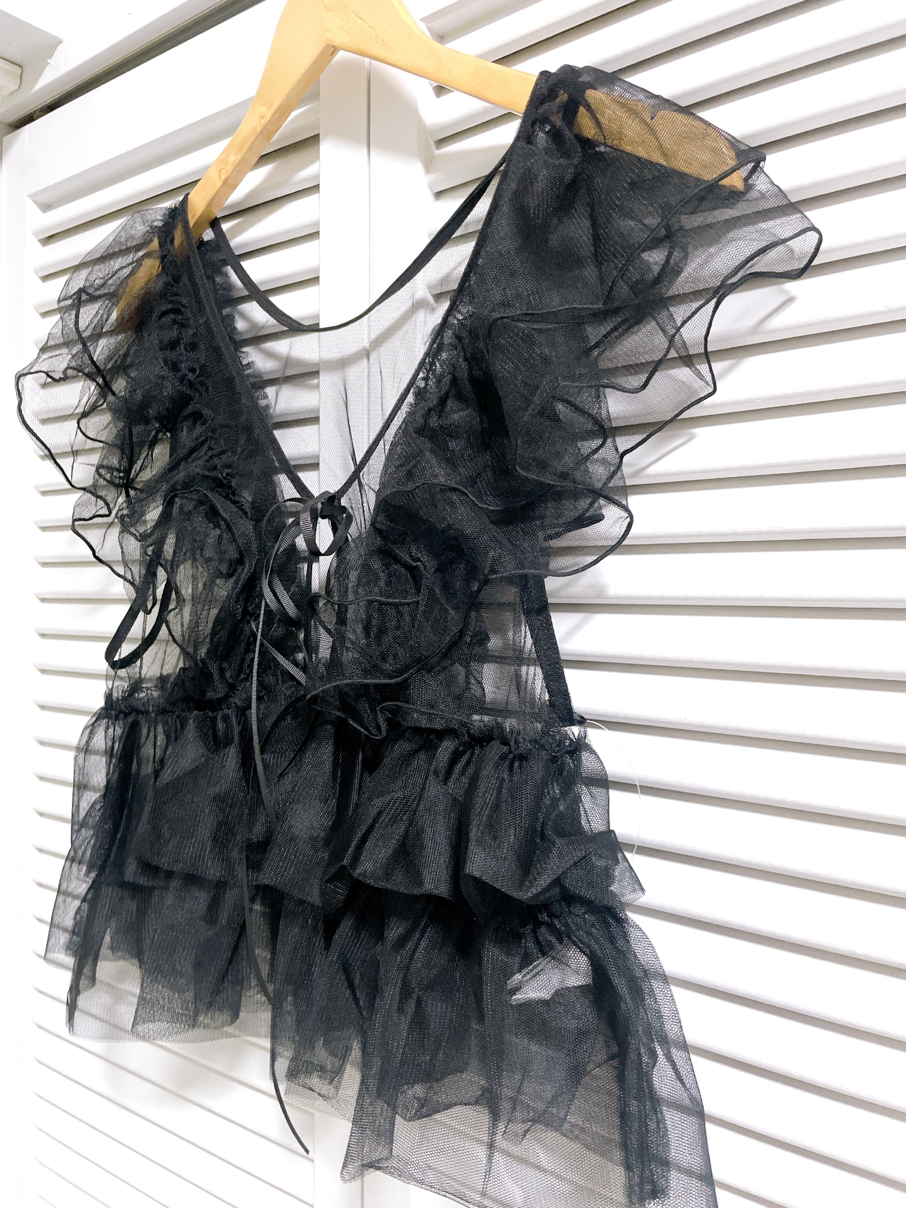 • 袖フリルのカジュアルトップス グレー 袖フリルのカジュアルトップス グレー ¥3,980