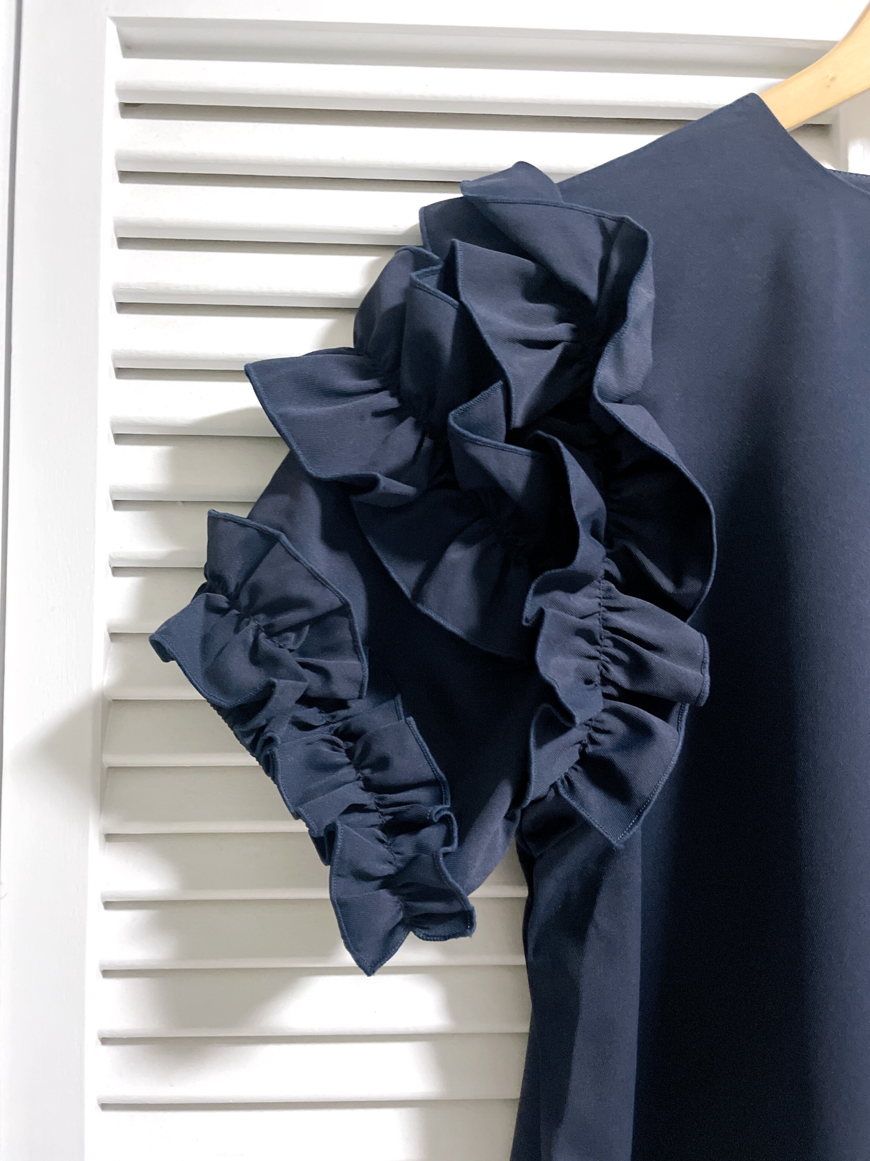 ゴージャスフリル袖の半袖トップス ネイビー