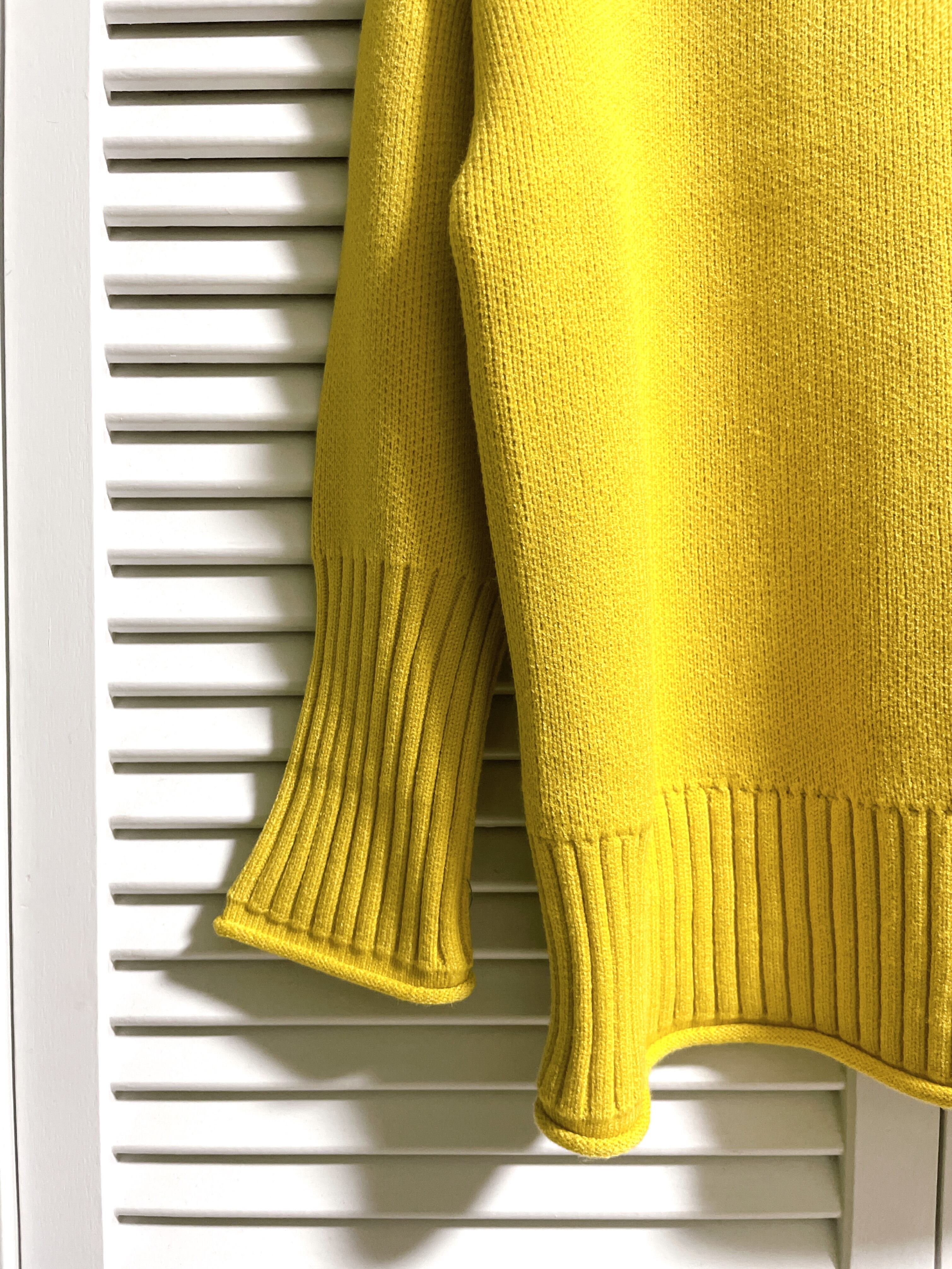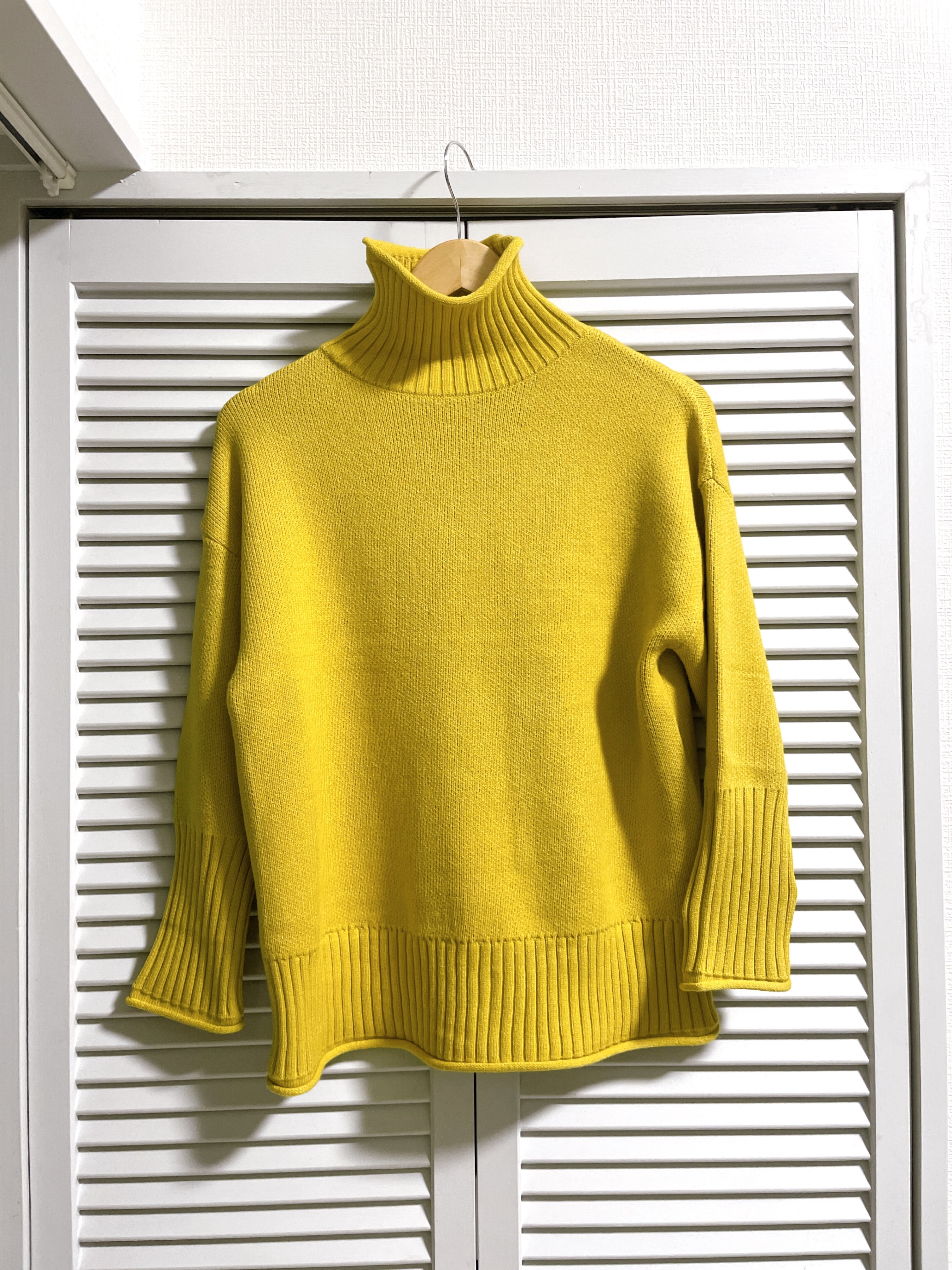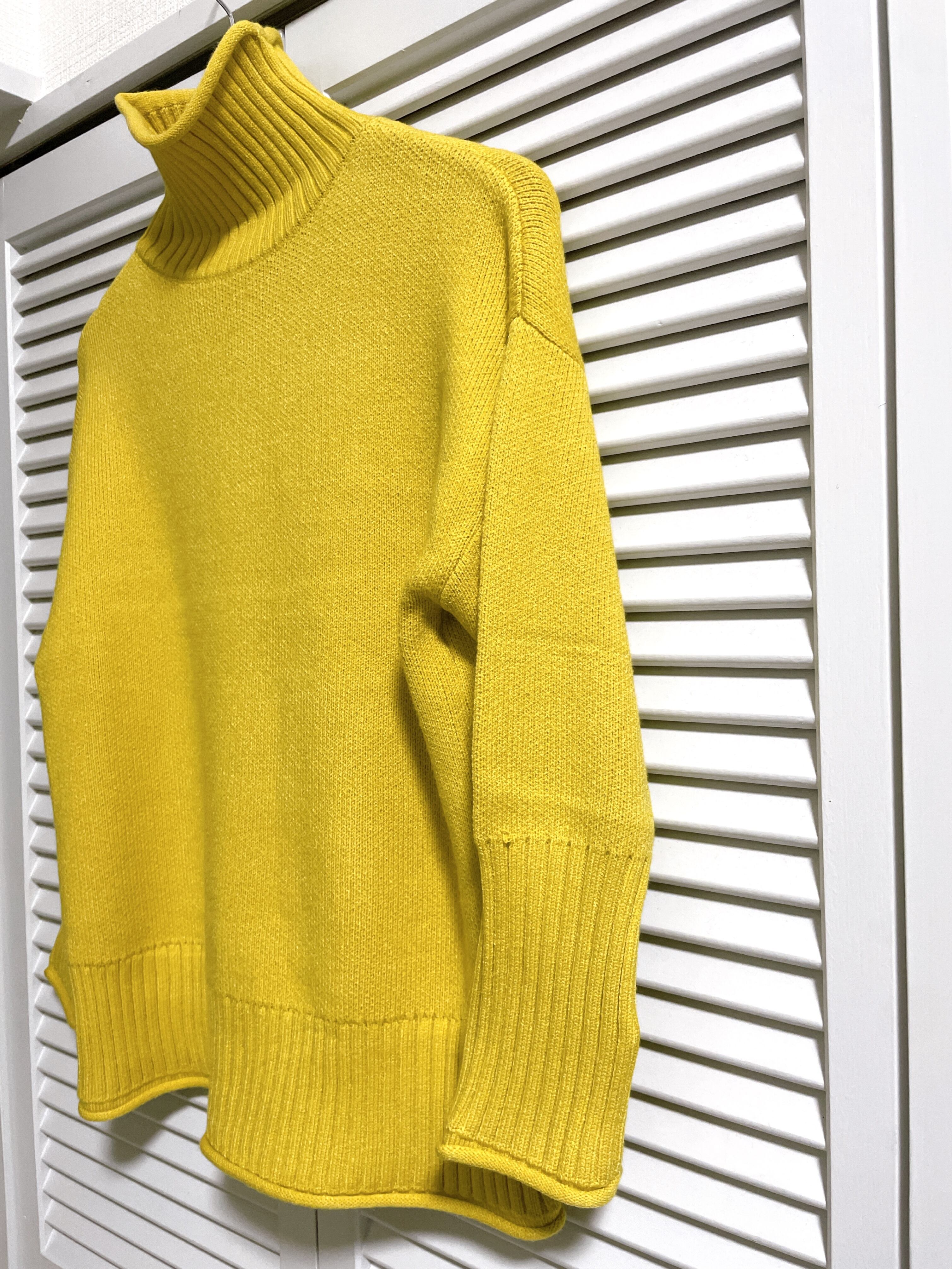 再入荷★柔らか素材のハイゲージハイネックニット マスタード
