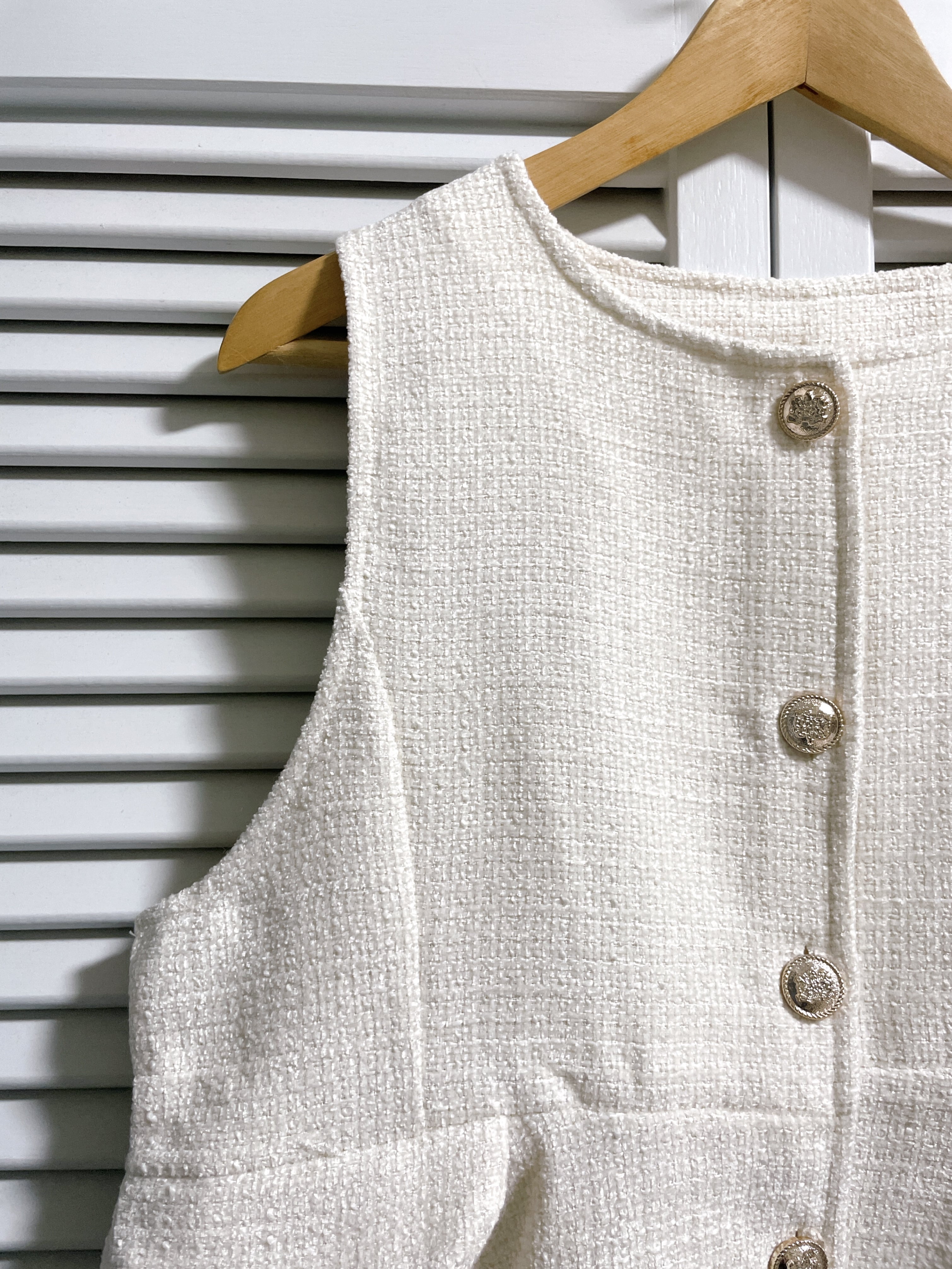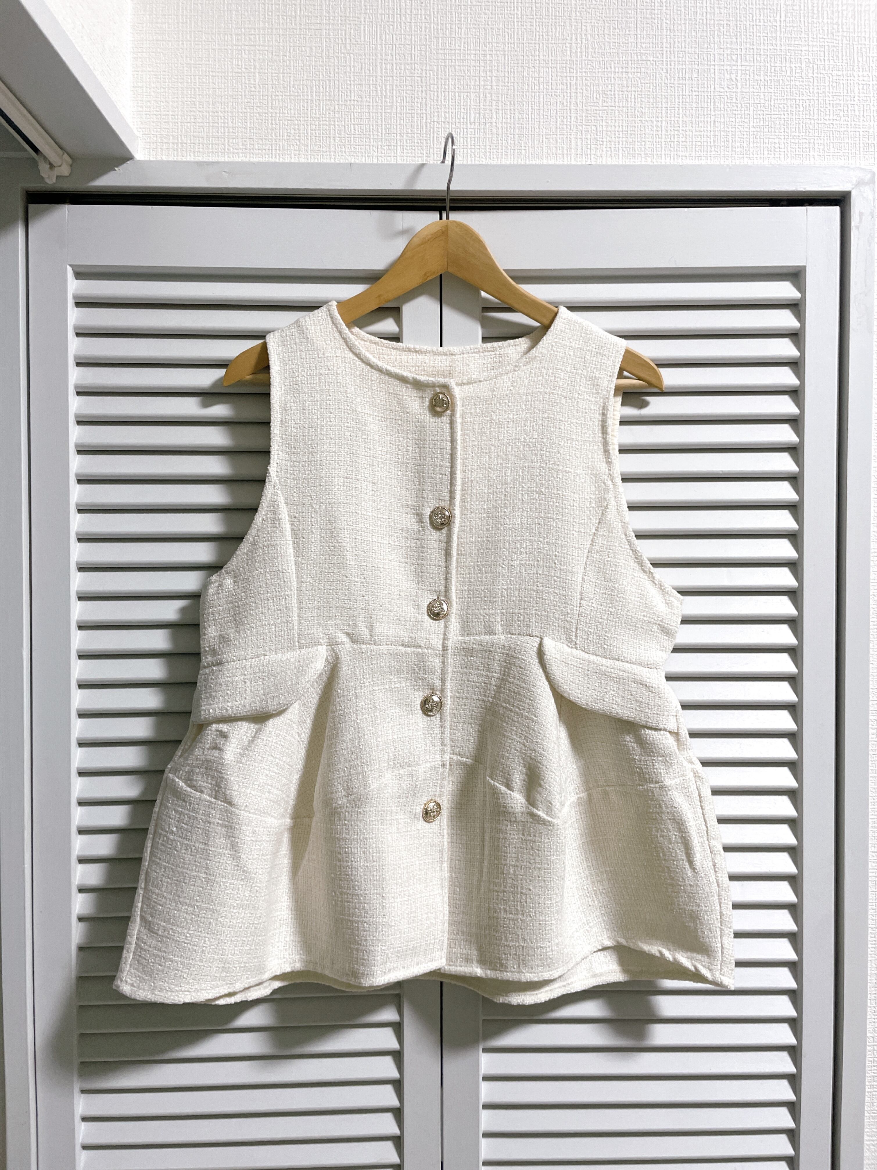 • パールいっぱいのざっくりニットボレロカーディガン クリーム パールいっぱいのざっくりニットボレロカーディガン クリーム ¥4,980